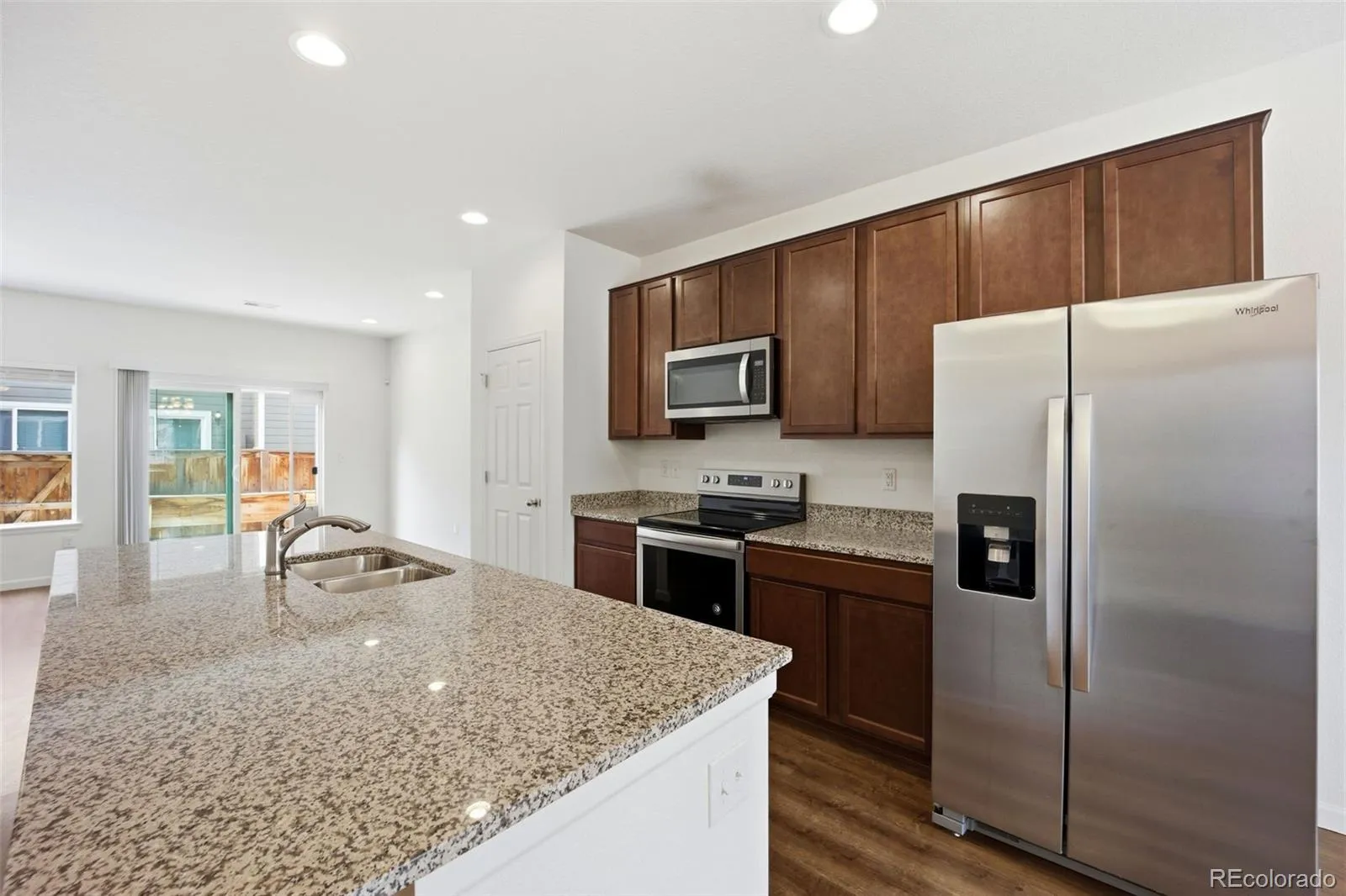 Contemporary style meets everyday ease in this modern townhome located in the desirable Aspen Hills community. An open-concept floor plan creates a bright, welcoming atmosphere, anchored by a kitchen featuring granite countertops and a spacious center island that flows seamlessly into the main living area. Upstairs, the primary bedroom offers a peaceful retreat with vaulted ceilings, a walk-in closet, and a private ensuite bathroom designed for comfort and convenience. Step outside to enjoy a fenced patio, perfect for morning coffee, pets, or quiet evenings under the sky. Ideally situated near a variety of shopping and dining options, this home offers the perfect blend of low-maintenance living and modern style in a well-connected location.
