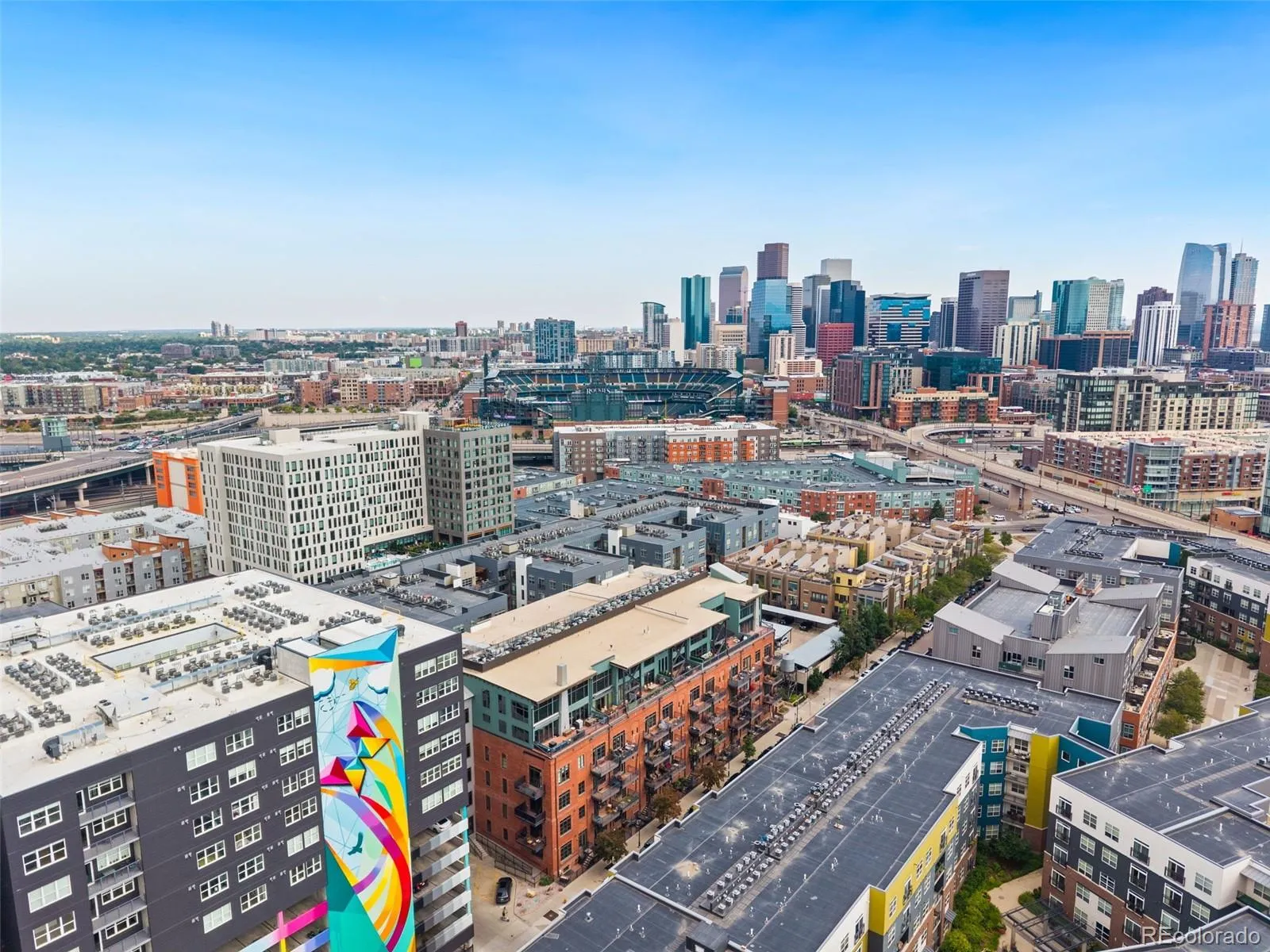 Located in Denver’s iconic Water Tower Lofts, this gorgeous home is one of the largest 1 bedroom, 2-bathroom lofts in the building. It is ideally located just steps from Coors Field, shopping, top-rated restaurants, and vibrant nightlife. Set in a beautifully restored brick-and-timber warehouse, this bright and airy loft features 13-foot ceilings, exposed brick walls, huge wood beams, and an expansive wall of industrial windows that flood the space with natural light. The open-concept floor plan is ideal for entertaining, highlighted by a gourmet kitchen with a granite island, maple cabinetry, and newer stainless steel appliances. The huge primary suite features an en-suite bathroom and walk-in closets, with plenty of space for an office area or reading nook. Unique to this unit are two private entrances: a convenient street-level entry and a secure interior building entrance with ramp access. Also featured are contemporary lighting, gleaming hardwood floors, forced air heating and cooling, and abundant character throughout. The home includes a secure, gated covered parking space and a large private storage unit. Residents of the Water Tower Lofts enjoy a secure building, welcoming front entry, and access to a fully equipped fitness center. With its unbeatable location, historic detail, and stylish updates, this is truly a one-of-a-kind loft in the heart of downtown Denver.