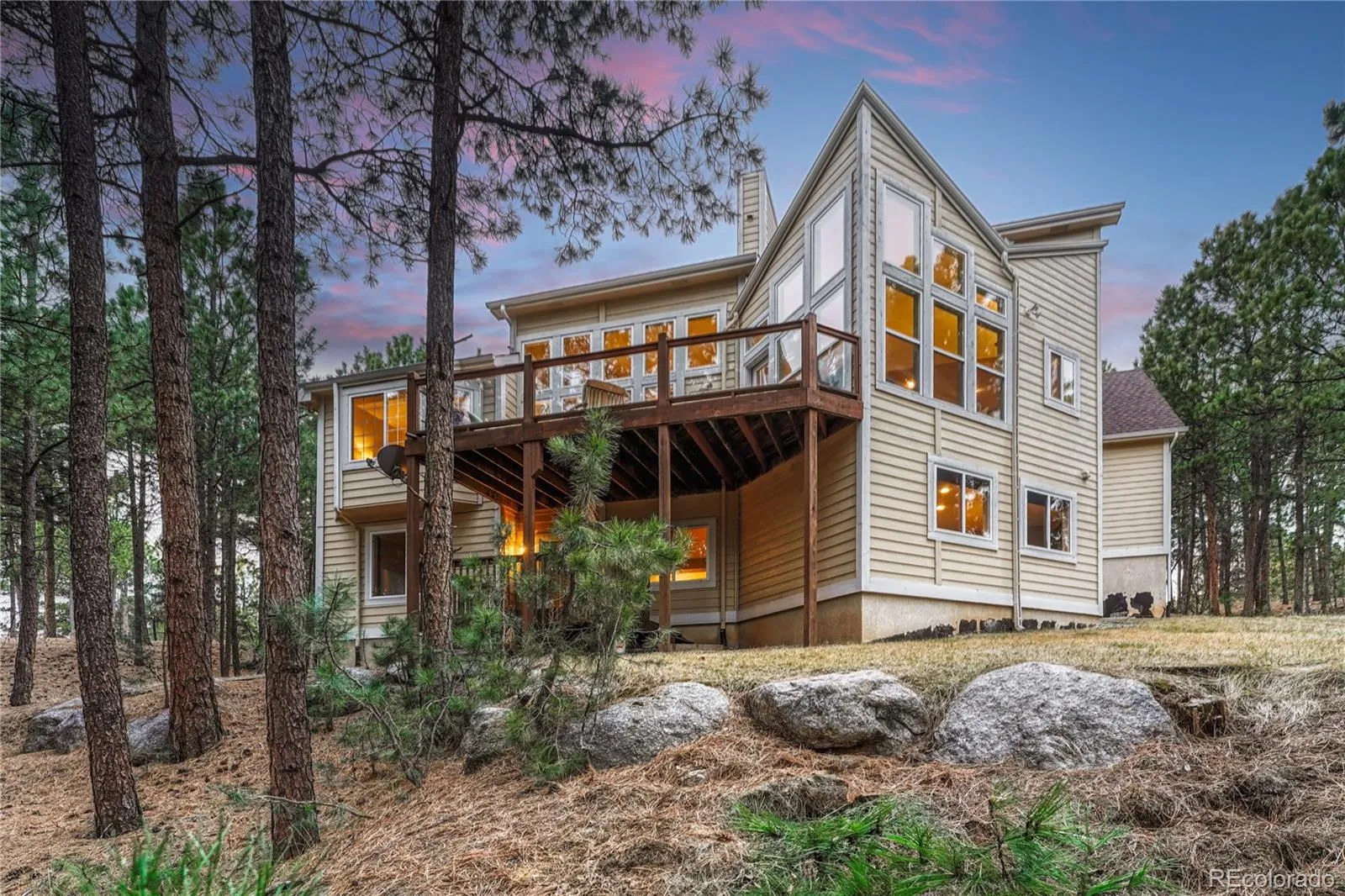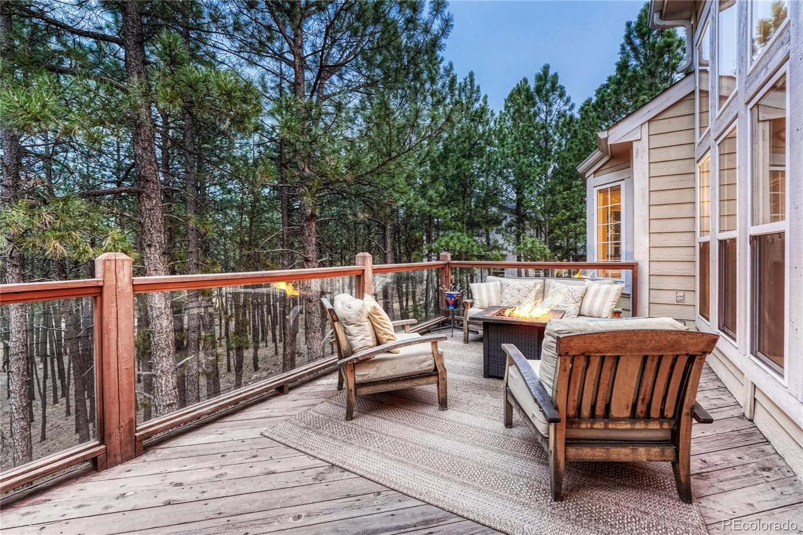 Welcome to your sanctuary in the prestigious Ridge at Fox Run — where timeless elegance meets serene Colorado living. Perfectly positioned on a private, treed cul-de-sac lot just moments from Fox Run Regional Park, this exquisite 4-bedroom residence offers refined comfort and exceptional design throughout. The main-level primary suite is a true retreat, featuring its own cozy fireplace and a luxurious bathroom designed for relaxation, complete with dual vanities expansive shower and large walk in closet. Thoughtfully designed for both everyday living and entertaining, the gourmet kitchen showcases a dramatic double-sided fireplace that creates a warm ambiance shared with the adjoining living space — the perfect backdrop for intimate evenings or lively gatherings. Off the kitchen area, is a wonderful backyard deck to enjoy cocktails or coffee in the morning. Do not miss the incredible office with built in bookshelves and wonderful lighting for work or school. Additional highlights include a spacious three-car garage, generous secondary bedrooms, and beautifully appointed living spaces that blend sophistication with comfort. The basement includes a flex room that could be a work out area, craft room or a non conforming bedroom. Ample storage in the basement allows the new homeowner to build out another bedroom or bathroom. Experience elevated living in one of the area’s most desirable neighborhoods — privacy, luxury, and nature all at your doorstep. Close to I-25, shopping, trails and so much more. Looking for a great school district? Look no further than Lewis-Palmer D38. Experience elevated living in one of the area’s most desirable neighborhoods — privacy, luxury, and nature all at your doorstep.