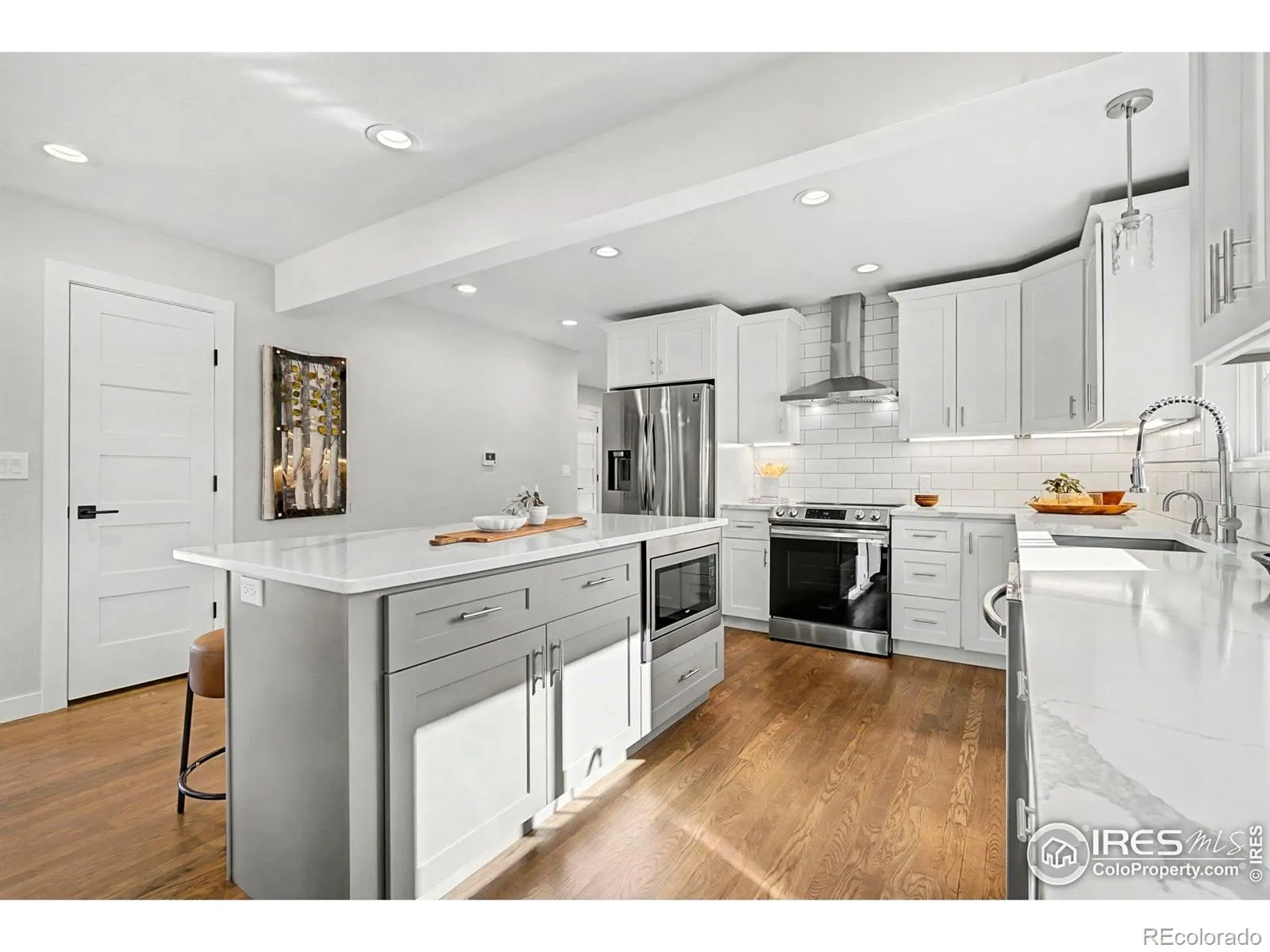 Nearly net-zero and thoughtfully reimagined, this beautifully updated Old Town ranch offers a rare blend of elevated design and forward-thinking efficiency, just minutes from the heart of it all. Designed with the eco-conscious buyer in mind, the home features owned solar, a new roof, advanced heat pump system, upgraded insulation, and a tankless water heater, delivering exceptional energy performance and long-term savings without compromising comfort or style. Inside, a bright open floorplan welcomes you with warm hardwood floors throughout. The inviting living room showcases a gas fireplace with new insert, custom built-in shelving, and newly added solar tubes for additional natural lighting. The stunning kitchen is a true chef’s dream, complete with a generous island, quartz countertops, custom J&K shaker cabinetry, and stainless steel appliances including a new induction range. The spacious primary suite serves as a private retreat, offering a walk-in closet, a beautifully appointed ensuite bath with marbled floors and a custom tiled walk-in shower, and direct access to the newly constructed back deck. Two generously sized secondary bedrooms, a full bath with a double vanity, and a laundry room complete the home. Step outside to a fully fenced xeriscaped backyard featuring thoughtfully designed garden beds, a new irrigation system, and a low maintenance composite deck, ideal for entertaining or enjoying quiet evenings under the Colorado sky. With no HOA and a wide driveway accommodating an RV or boat, this home offers flexibility to match its efficiency. Enjoy living near Fort Collins’ most sought-after restaurants, shops, parks, and extensive trail system. Pre-Inspected for added peace of mind. Sustainable living, modern updates, and unbeatable charm all in one exceptional property.