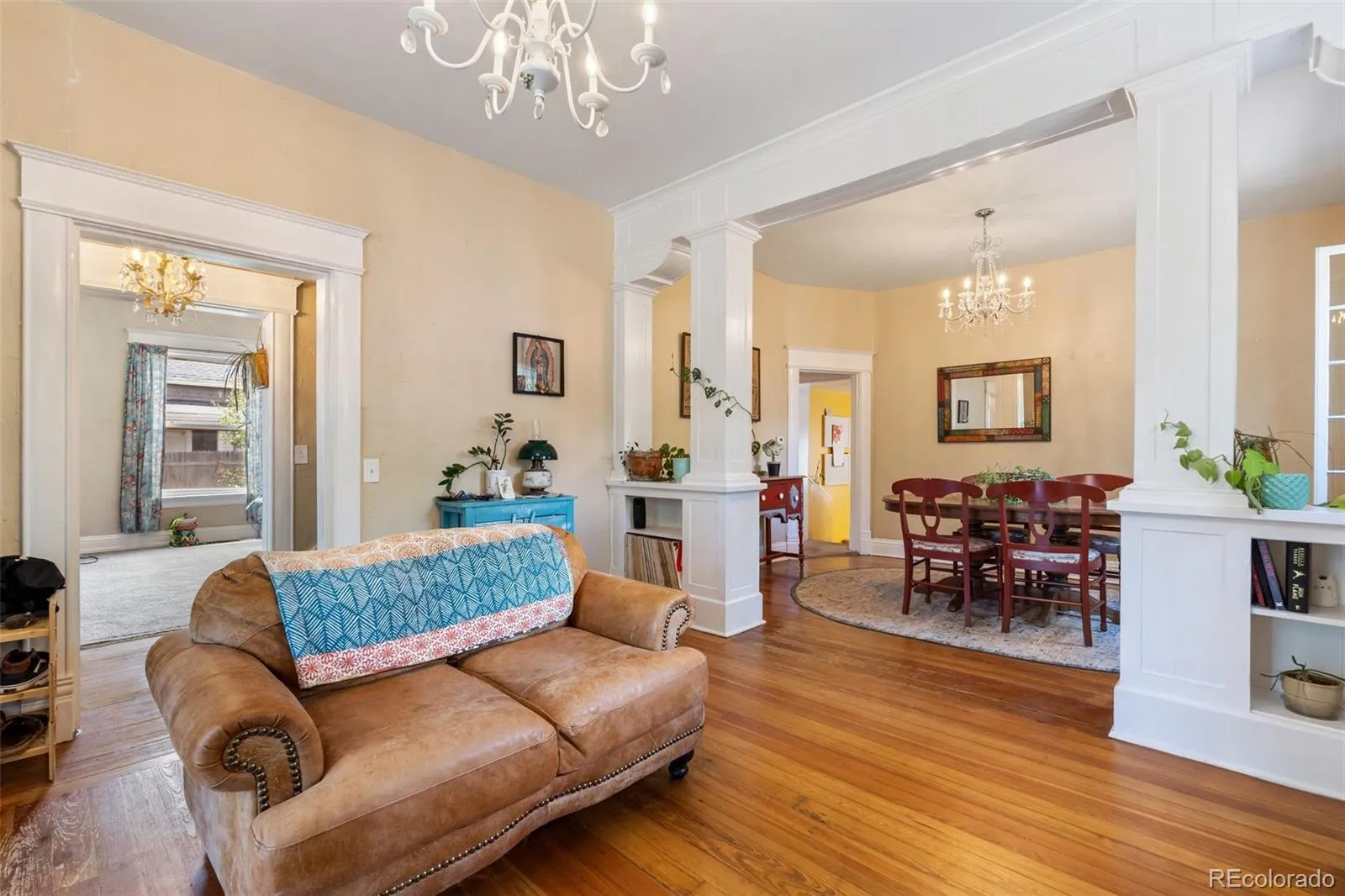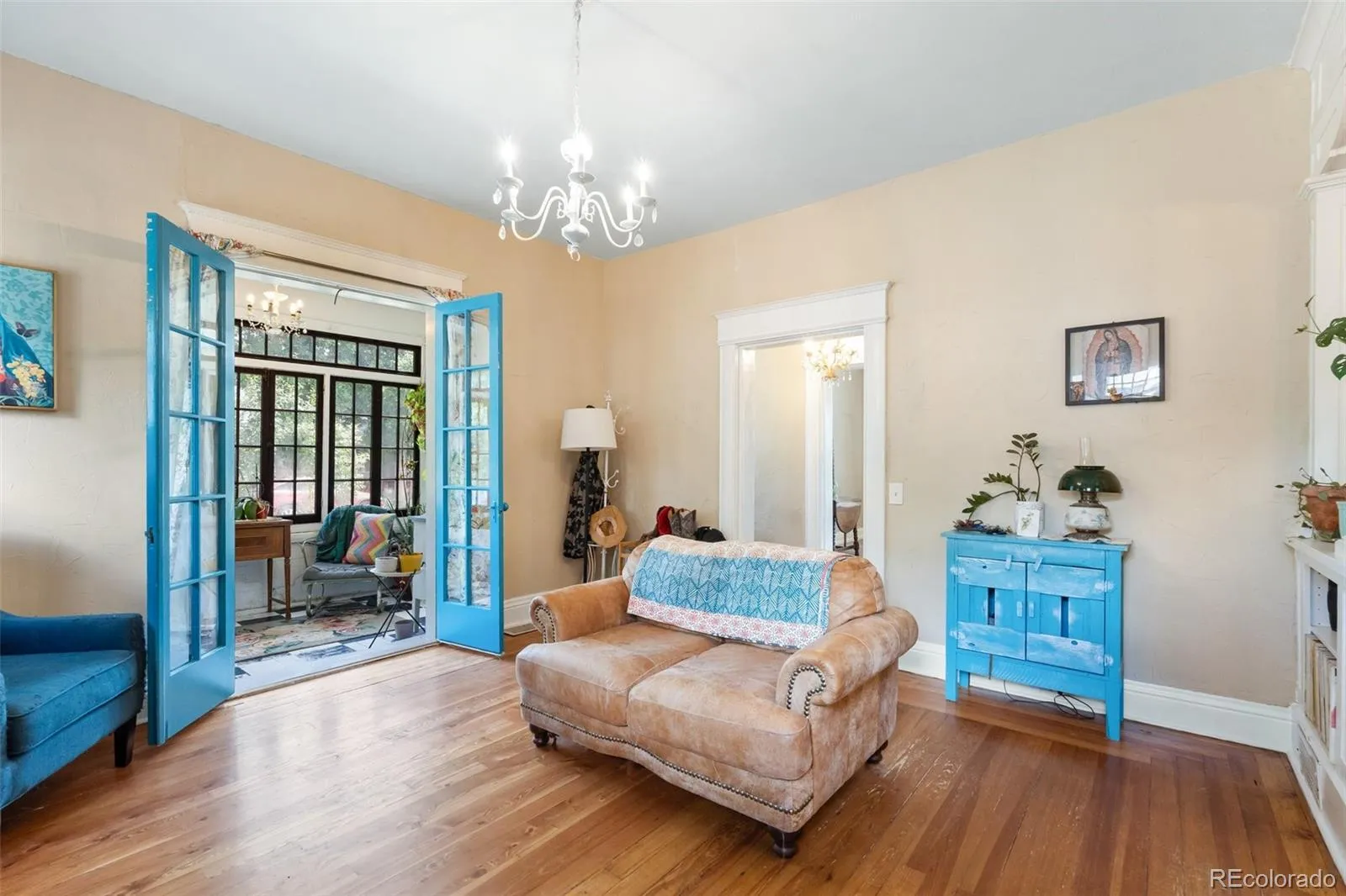 living room with original fireplace, the sweetest all window sunroom/sitting porch, formal sitting room with 2nd