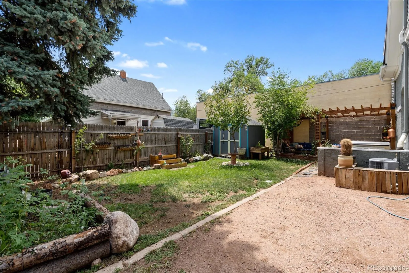 plants, grass, an outdoor cooking area and large gate that opens for car access. There is a bonus basement theater room