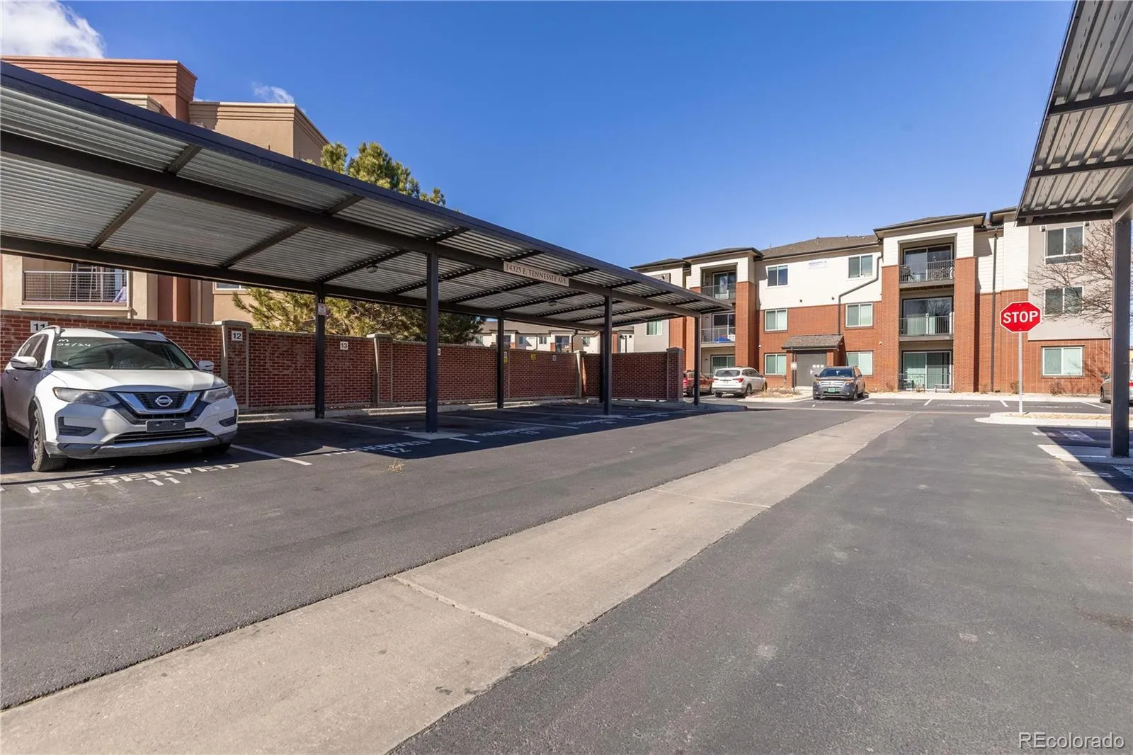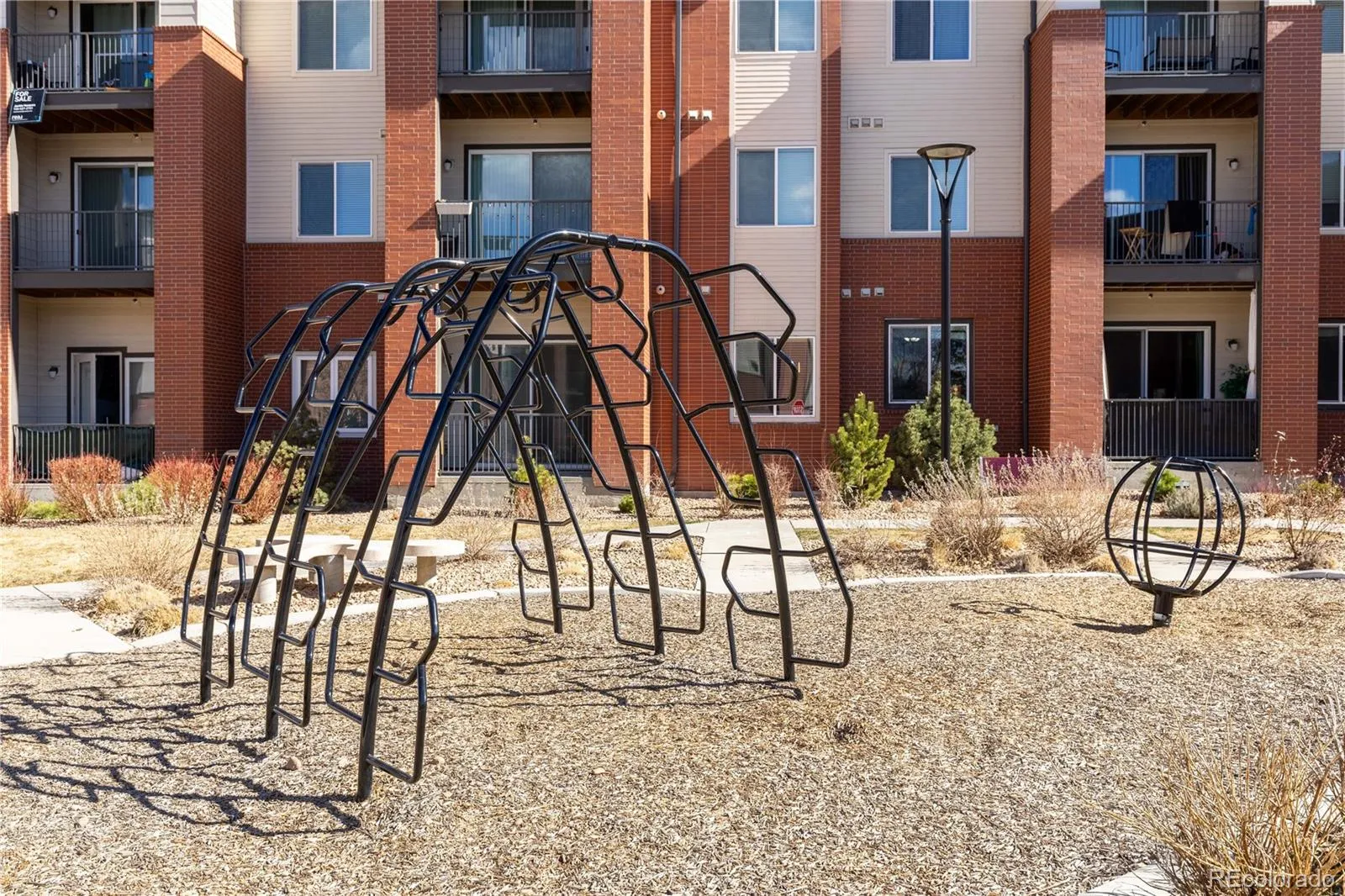 Bright, cheery, and move-in ready, this fantastic 2-bedroom, 2-bathroom ground-floor condo offers comfort and convenience in an unbeatable location. This first-floor ADA unit features tall ceilings and a spacious open layout that creates an airy, welcoming feel throughout. The chef’s kitchen is beautifully appointed with granite countertops, ample warm wood cabinetry, black appliances, and a large center eat-in island that flows seamlessly into the living and dining areas—perfect for everyday living and entertaining. Step outside to the large covered patio overlooking the community playground, offering an open feel with no neighbors directly in front. The thoughtfully designed floor plan places the two spacious bedrooms on opposite sides of the unit for added privacy. The primary suite includes an en-suite bath and a generous walk-in closet. Convenient in-unit laundry and new ceiling fans installed in November 2025 add to the home’s appeal. A deeded parking space is also included. Ideally located close to public transportation, grocery stores, Home Depot, Aurora Mall, Aurora Library, Anschutz Medical Center, and DIA, this move-in-ready gem offers easy, low-maintenance living in a prime location.