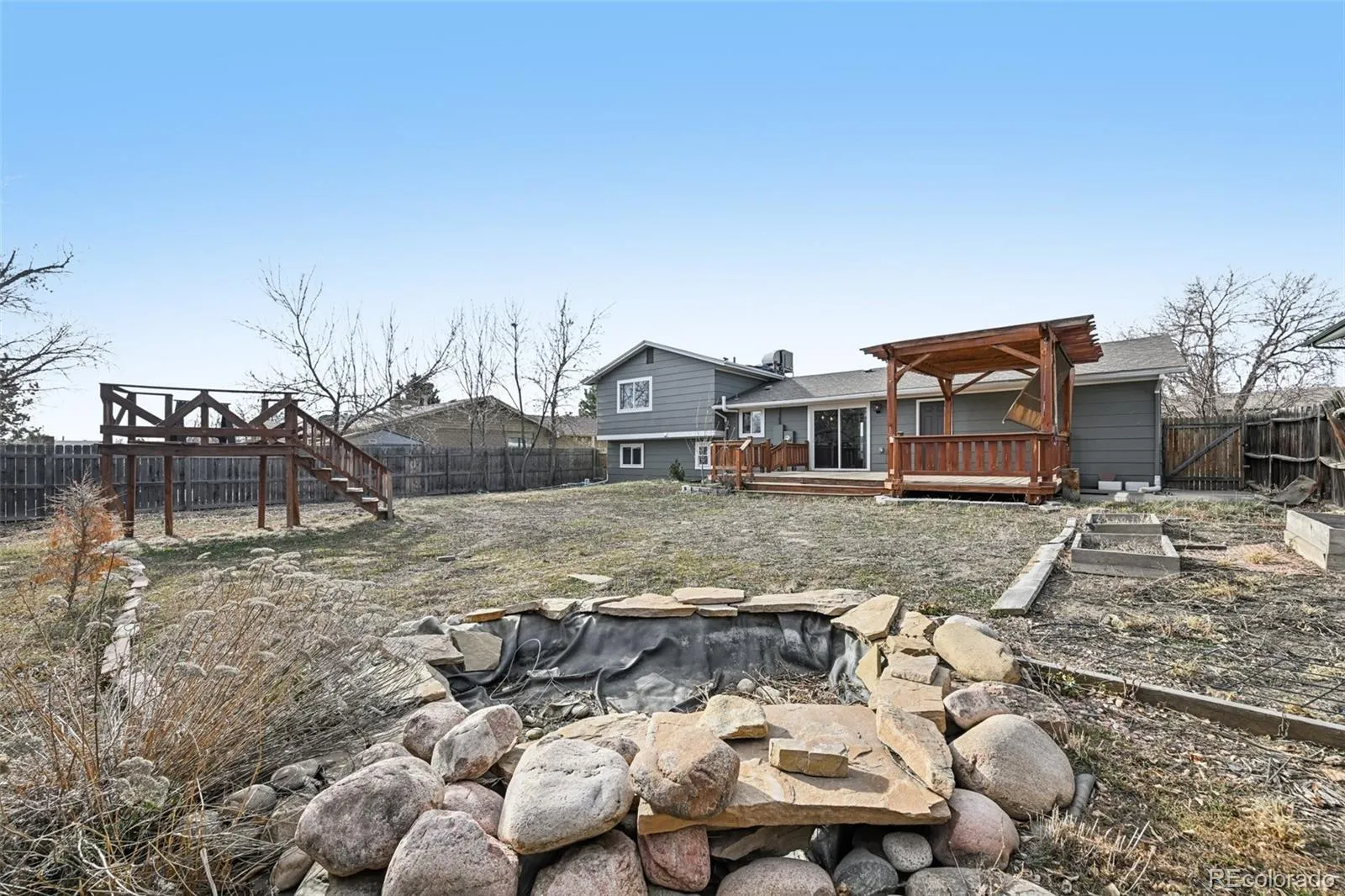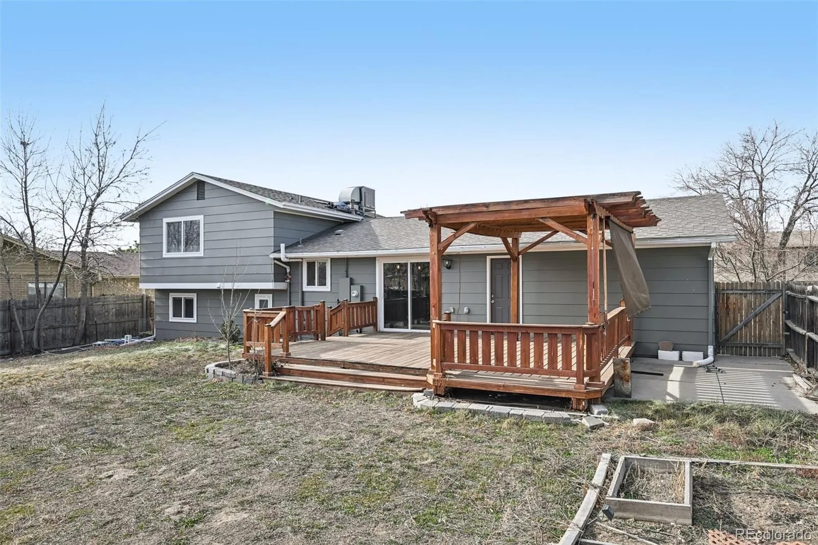 The lower level provides a warm and inviting family room anchored by a wood-burning fireplace, perfect for relaxing or entertaining. A remodeled bathroom on this level serves the third and fourth bedrooms as well as the family room. Step through the sliding doors on the main level to your backyard oasis, complete with a pergola and plenty of space for outdoor living and dining. The expansive yard offers room for recreation and enjoyment.