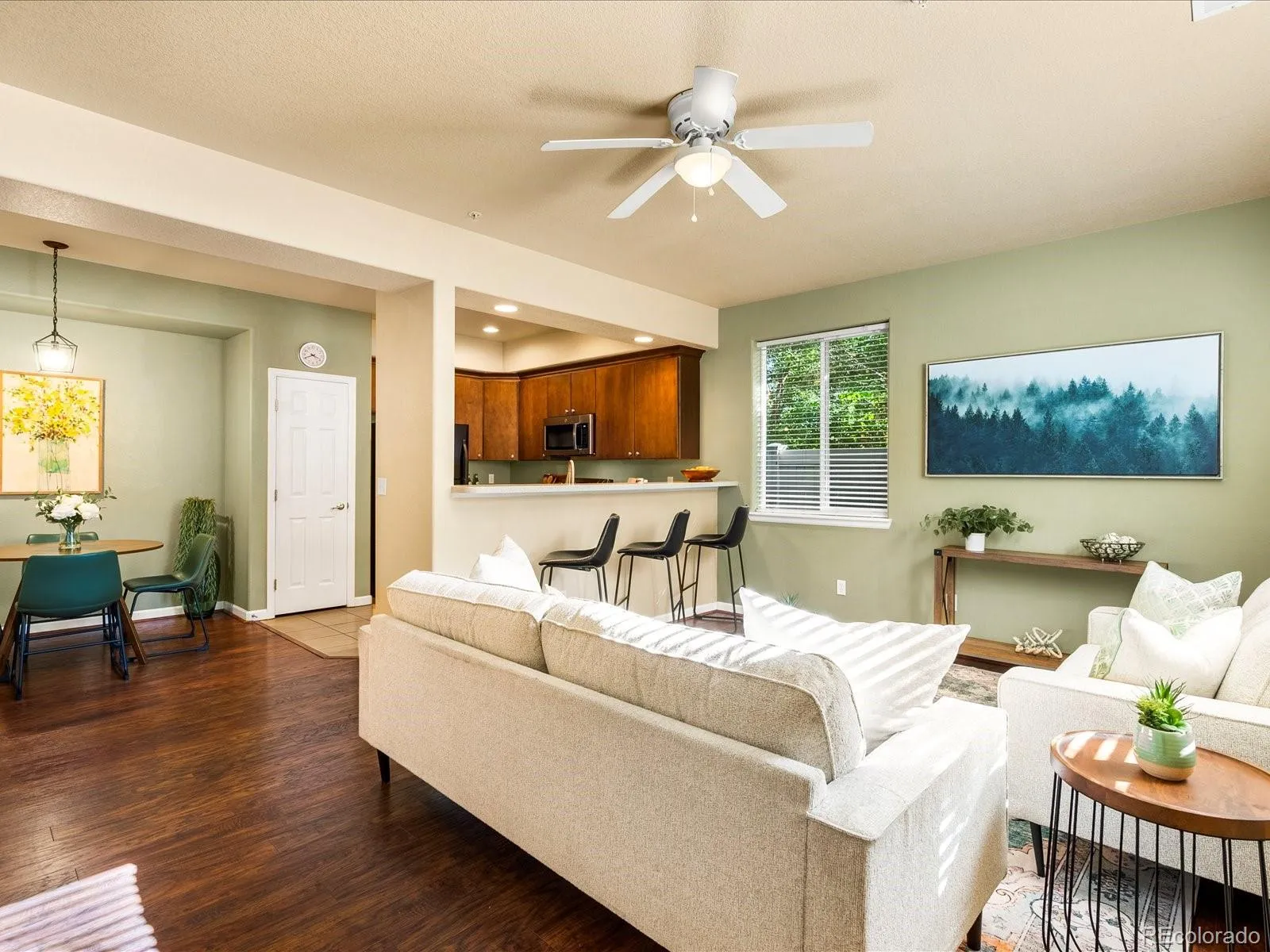 Discover this rare ground-level corner condo that perfectly blends comfort, convenience, and location. With 2 bedrooms and 2 bathrooms all on one level, this light-filled home is designed for effortless Colorado living. The open floor plan flows seamlessly from the living room to the dining area and updated kitchen, while large windows flood the space with natural light, creating a warm and welcoming vibe from the moment you walk in. The spacious primary suite features a walk-in closet and private bath, while the versatile second bedroom—with charming double doors—functions beautifully as a guest room, office, or den. Enjoy updated flooring throughout, in-unit laundry, and the convenience of a detached oversized garage plus private storage closet—a rare find in this area. Step outside and you’ll fall in love with the quiet, private setting in a peaceful neighborhood right across from the lake—ideal for morning walks, sunset strolls, or weekend picnics. When it’s time to head out, you’re just a short stroll (or scenic 35-minute walk) to Olde Town Arvada, where vibrant shops, restaurants, and Light Rail offer direct access to downtown Denver and beyond. It’s the perfect balance of serenity and accessibility.*LENDER INCENTIVES* Money towards closing costs or a rate buy-down! Please reach out to listing agent for more information!