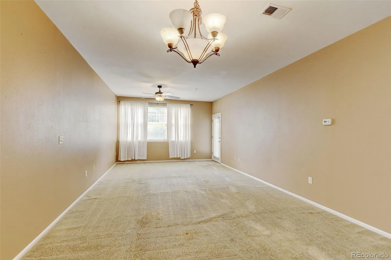 This spacious 1-bedroom, 1-bathroom condo features a superb location near the shopping and entertainment district at Lowry Town Center. The condo offers an open-concept floor plan with high ceilings, brand new carpeting, large kitchen with an island providing ample counter space. Additional highlights include spacious closets, in-unit laundry and a southeast facing patio with a storage locker. This property also includes an attached oversized 1-car garage. Quick and easy access to parks and trails.