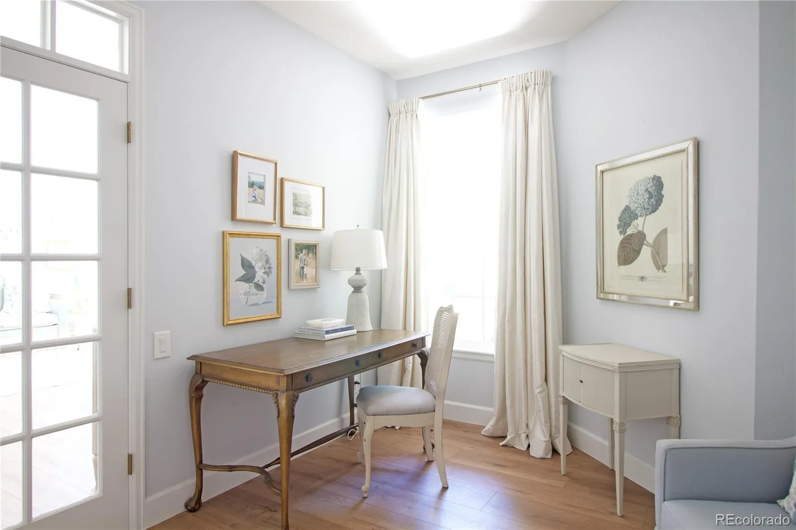 The main level also includes a dining room/flex room, a private office with built-in cabinetry, a newly remodeled powder bath, and a laundry room/mudroom boasting of storage. Upstairs, the primary suite features stunning bay window views, a spacious closet, and an updated bathroom with new hardware, lighting, mirrors, and spa-like bathtub. Three additional bedrooms include a custom built-in bunk room, vaulted ceilings, and detailed moldings making each room stand apart with personality.