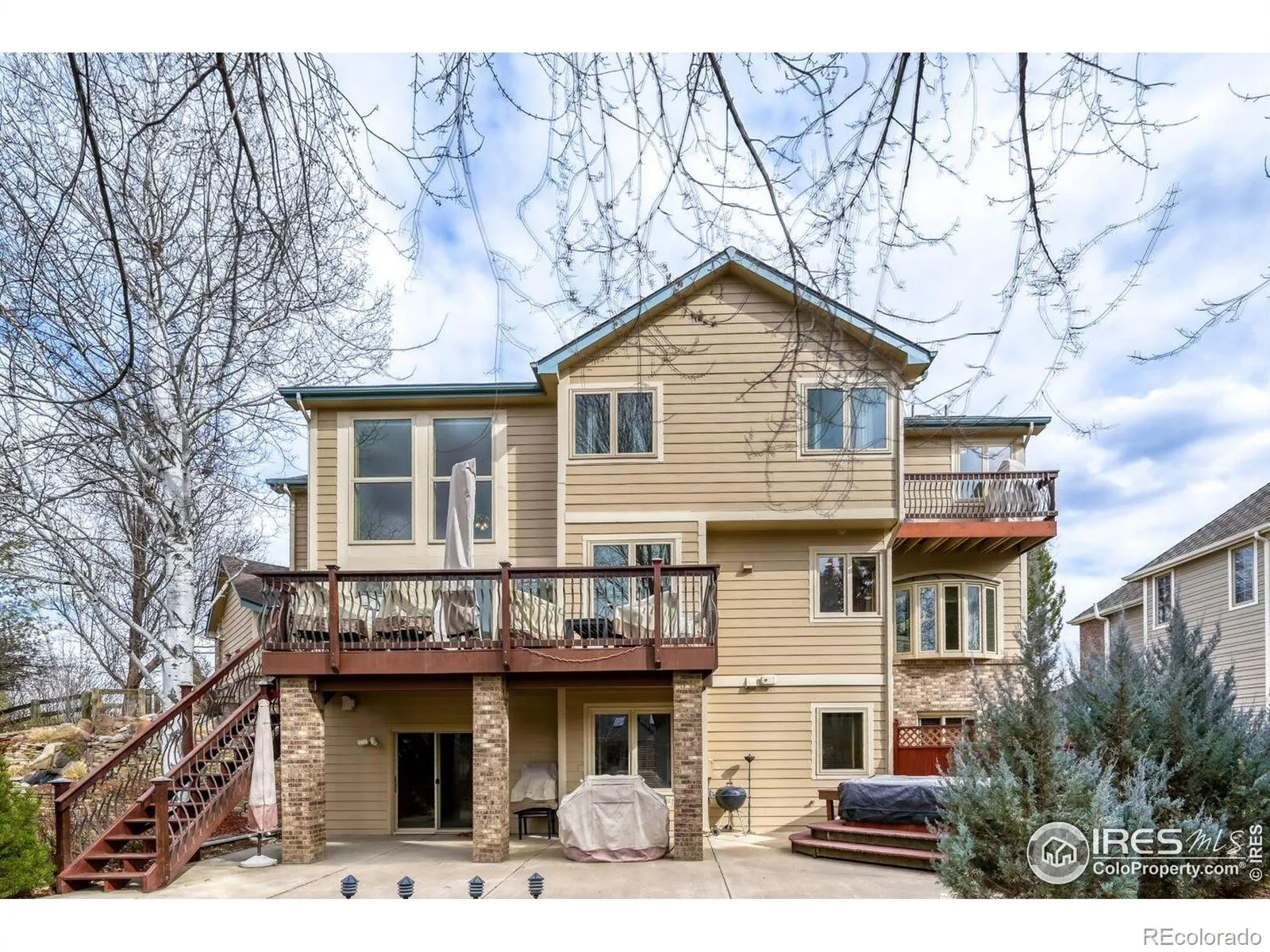 Spacious and updated home on an oversized lot in sought after SW Longmont Creekside neighborhood! Updated island kitchen with stainless appliances including gas cooktop, updated primary bath with spa-like stall shower and separate tub, some new carpet and fresh paint. High efficiency furnace and A/C plus tankless hot water heater in the last few years, new Marvin windows around 2015. Wonderful floorplan with large rooms and high ceilings, large deck off of family room, huge finished walk-out basement with rec room and home theater area plus conforming bedroom and 3/4 bath. Primary suite has nice balcony overlooking private back yard including water feature and hot tub, three other upper level bedrooms one of which has its own bath. Great location close to paths, open space, and Lefthand Creek; close to charming downtown Longmont.