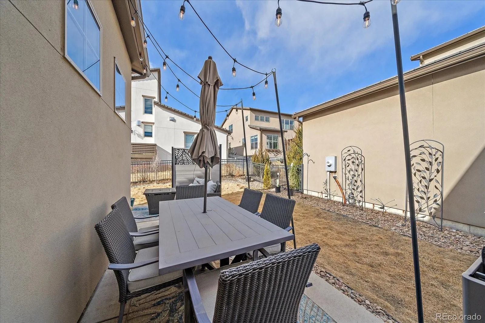 Outside finds an extended patio showcasing mountain views—perfect for entertaining—along with a charming covered front porch. Additional highlights include new carpet, a tankless water heater, radon mitigation system, surround sound, and a durable concrete tile roof. Just minutes from the Solterra clubhouse & neighborhood dog park, this home offers exceptional value, thoughtful upgrades, & an unbeatable Colorado lifestyle.