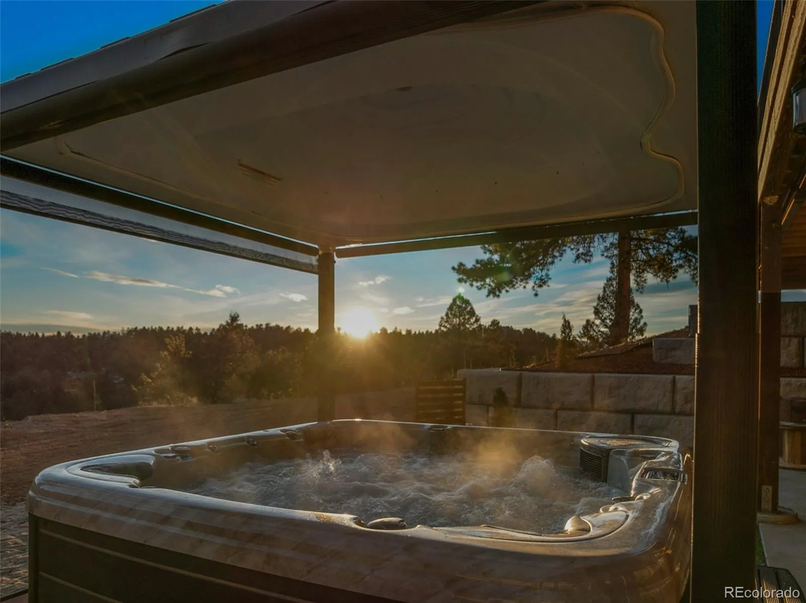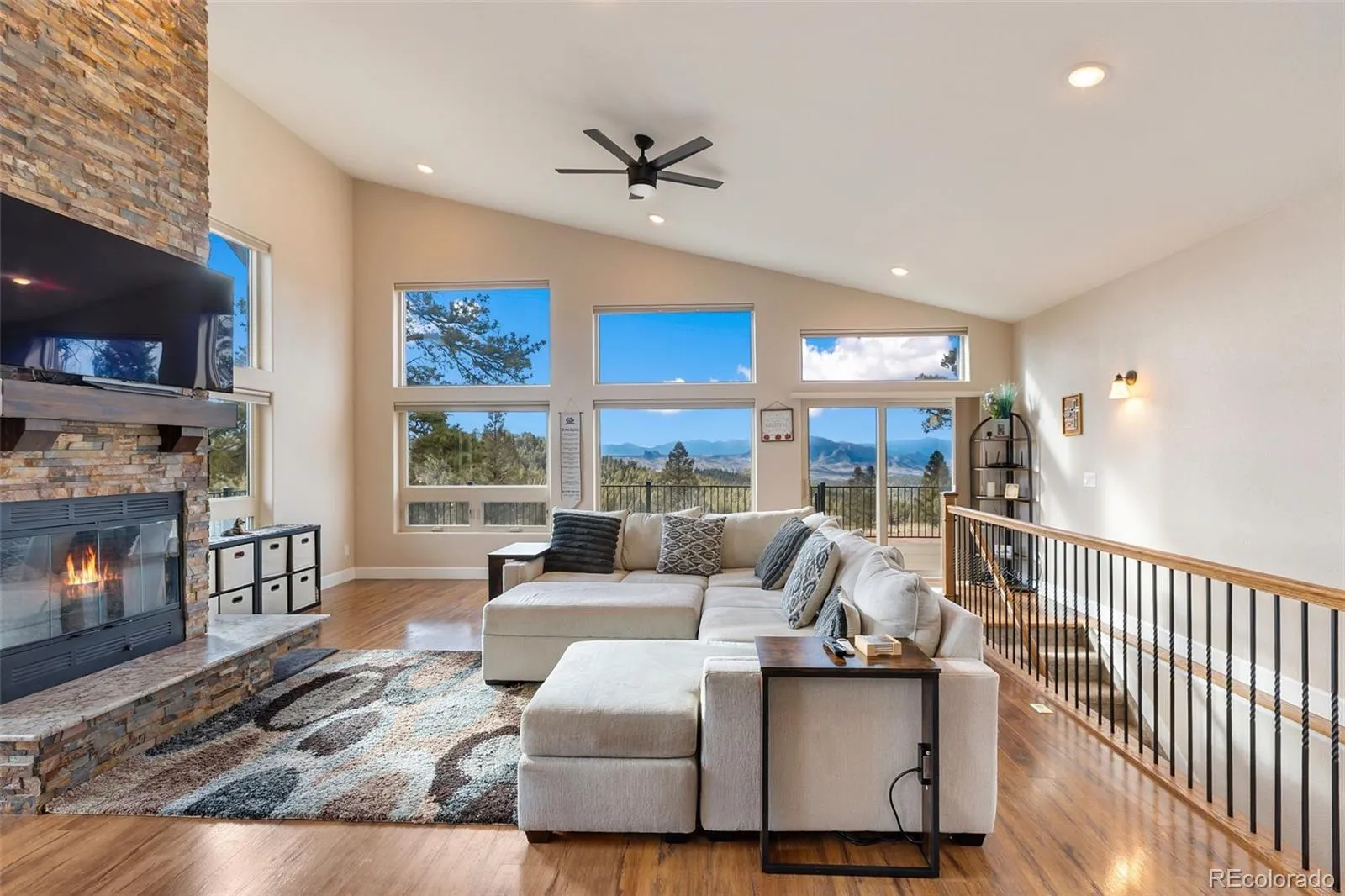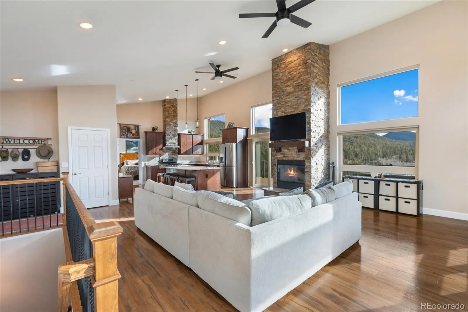 Welcome to an exceptional Colorado mountain retreat offering privacy on 35 acres of land, panoramic views, and direct access to adventure. Built in 2021 and bordering National Forest, this property provides trail access right outside the front gate connecting directly to the Rainbow Falls trail system—perfect for hiking, exploring, and enjoying the outdoors from your own driveway. Located just 20 minutes from Woodland Park, this 2,500-square-foot home features 4 bedrooms and 3 bathrooms within a thoughtfully designed open floor plan. Expansive windows showcase breathtaking 270-degree mountain views while providing radiant solar heat gain, complemented by upgraded spray foam insulation for outstanding year-round energy efficiency and comfort. True main-level living includes a spacious primary suite complete with its own private washer and dryer for added convenience. The inviting living area is anchored by a wood fireplace, creating a warm and welcoming mountain ambiance. Durable composite decking extends the living space outdoors—ideal for entertaining, relaxing, or taking in the surrounding scenery. The fully finished walkout basement features high ceilings, a secondary primary suite, and direct outdoor access from every bedroom, offering flexibility for guests or extended stays. A wood stove enhances the lower level with additional warmth and charm. Additional highlights include a heated two-car garage, gated driveway, beautifully landscaped grounds, and a hot tub perfect for soaking under Colorado’s star-filled skies. A large barn with power and nearby water provides versatile space for storage, hobbies, or recreational equipment. With 270-degree views, National Forest boundary, energy-efficient construction, and private trail access, this newer mountain home offers a rare opportunity to experience the best of Colorado mountain living while remaining conveniently close to local amenities.