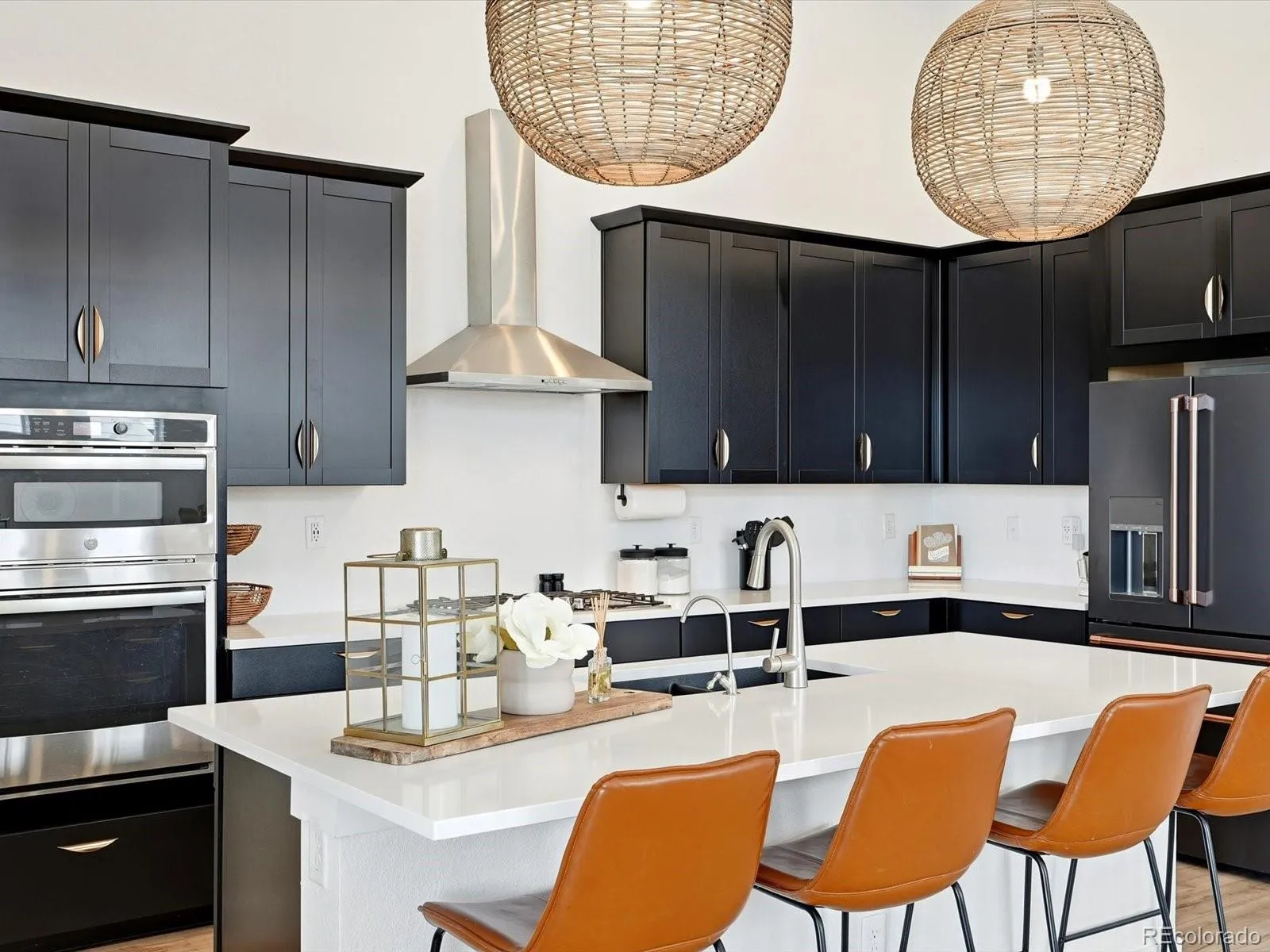 Designer finishes are showcased throughout, including sleek black cabinetry, a gourmet kitchen with roll-out trays, and extended luxury vinyl plank flooring for a modern, cohesive look.