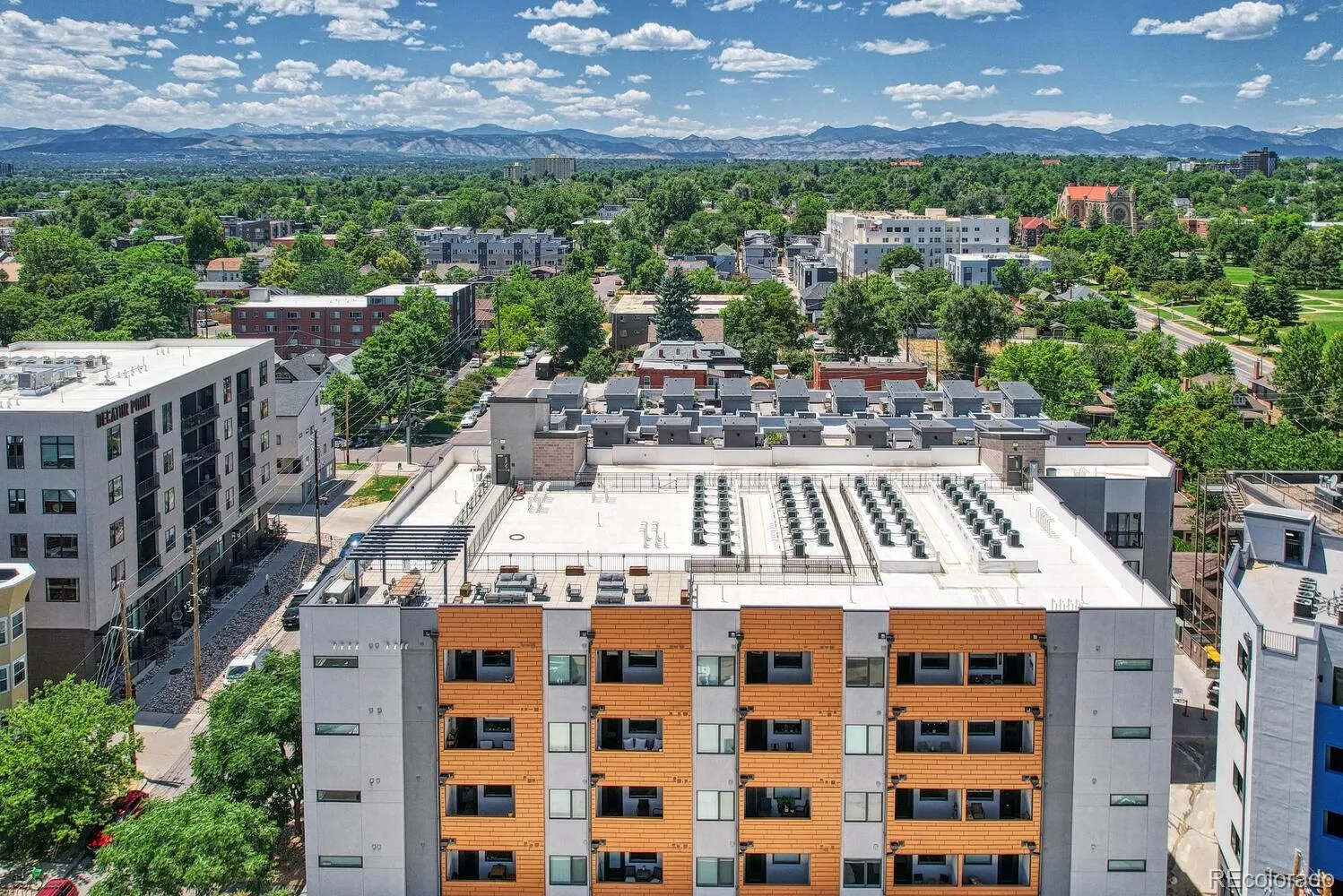 Experience modern urban living at its finest in this stylish condominium at Jeff Park Flats. This sleek end unit features an open floor plan, high ceilings, gourmet kitchen, lots of natural light and a private balcony. The rooftop terrace offers gorgeous views of both the mountains and city. Covered garage designated space and storage unit. Purchase to live or as a lucrative rental. With easy access to Jefferson Park, LoHi, Downtown Denver dining, shopping, and recreation, this is contemporary city living at its best.