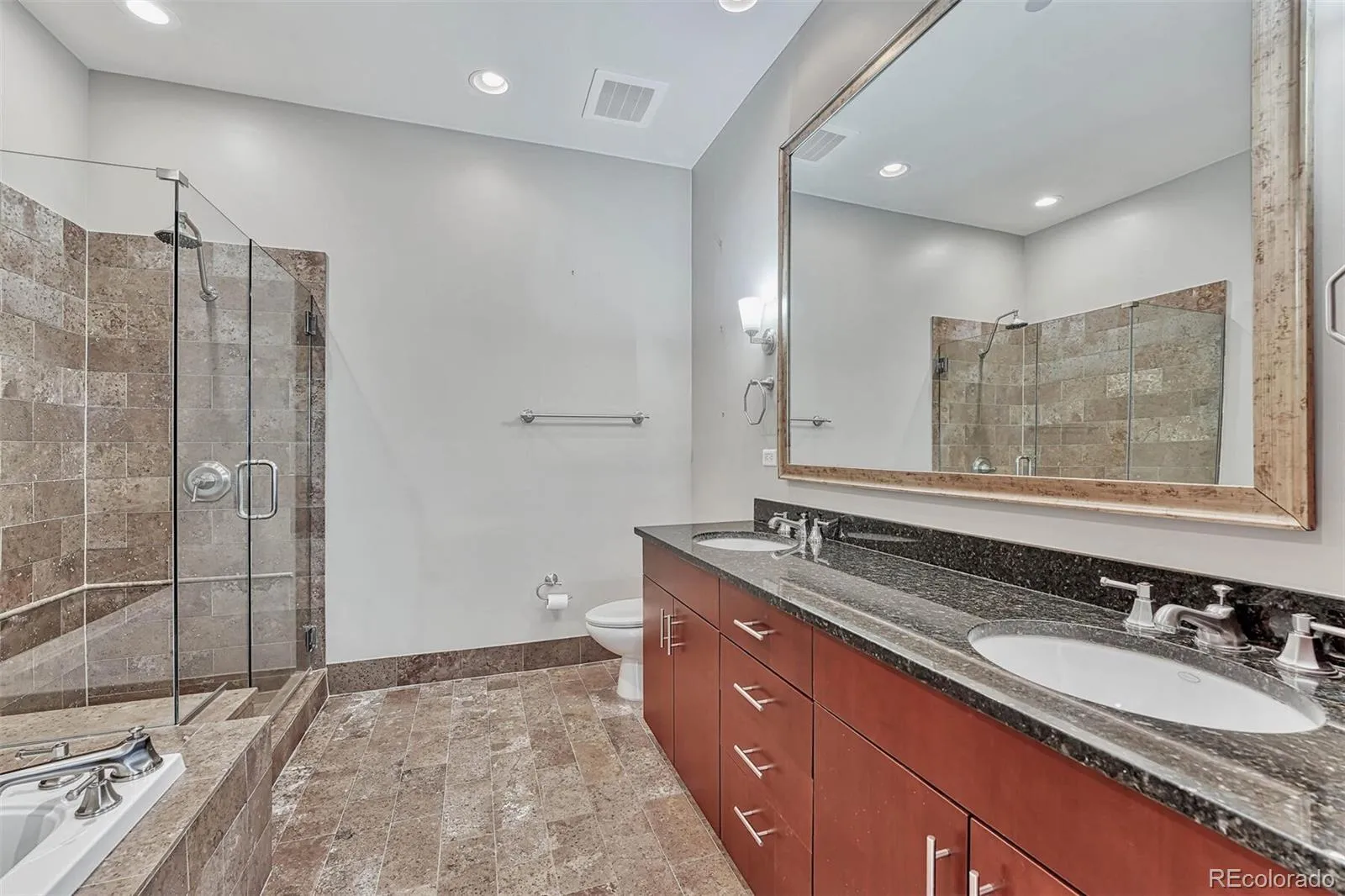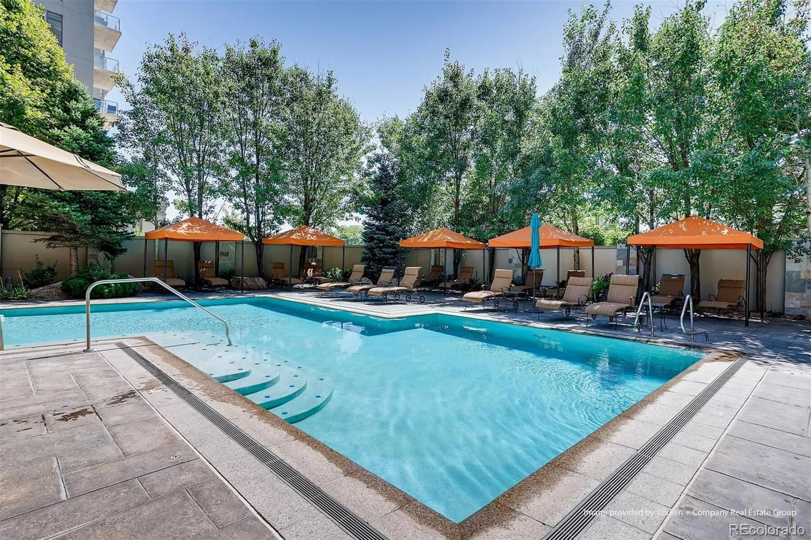 Live the luxury lifestyle from this stunning 2br/2ba condominium in The Landmark. Dining and entertainment are steps from this impressive Greenwood Village, dog and cat friendly high rise community. With 2 assigned parking spaces in the underground, secure parking lot, driving to and from downtown and DIA is easy, or take the nearby light rail. Located in the heart of the Denver Tech Center and serviced by an attentive, professional 24-hour concierge staff, residents enjoy time saving services and leveraged local resources. While offering a variety of social opportunities, The Landmark also respects the privacy of residents. Amenities include 2 pools, gym, business center, library, theatre, wine storage, and more. Inside the unit, rich cherry cabinets with under cabinet lighting, soft close doors and pull-out shelves pamper the chef in the kitchen. An oversized granite island doubles as a breakfast bar or buffet area while entertaining. The open concept layout incorporates the living, dining and kitchen into a single beautiful, light-filled room. Gorgeous high-end appliances include stainless steel built-in ovens, gas stovetop, dishwasher, and fridge. Two balconies offer birds eye views from this 7th floor gem. The master bedroom is spacious and has a large, attached bathroom with jetted tub, frameless glass shower and dual vanity. A professionally designed custom walk-in closet offers optimized clothing storage. The laundry room includes a stackable washer/dryer, folding counter and additional storage. The second bedroom is useful as an office or guest room with nearby private bathroom. High ceilings with ambient lighting sets the mood and adds to the luxe feeling of this unit. The Landmark offers an incredible luxury living experience surrounded by many amazing Denver attractions–from gorgeous meandering parks to Fiddlers Green Amphitheatre to endless recreation trails to some of the best dining in the country. Come home to The Landmark and have it all!