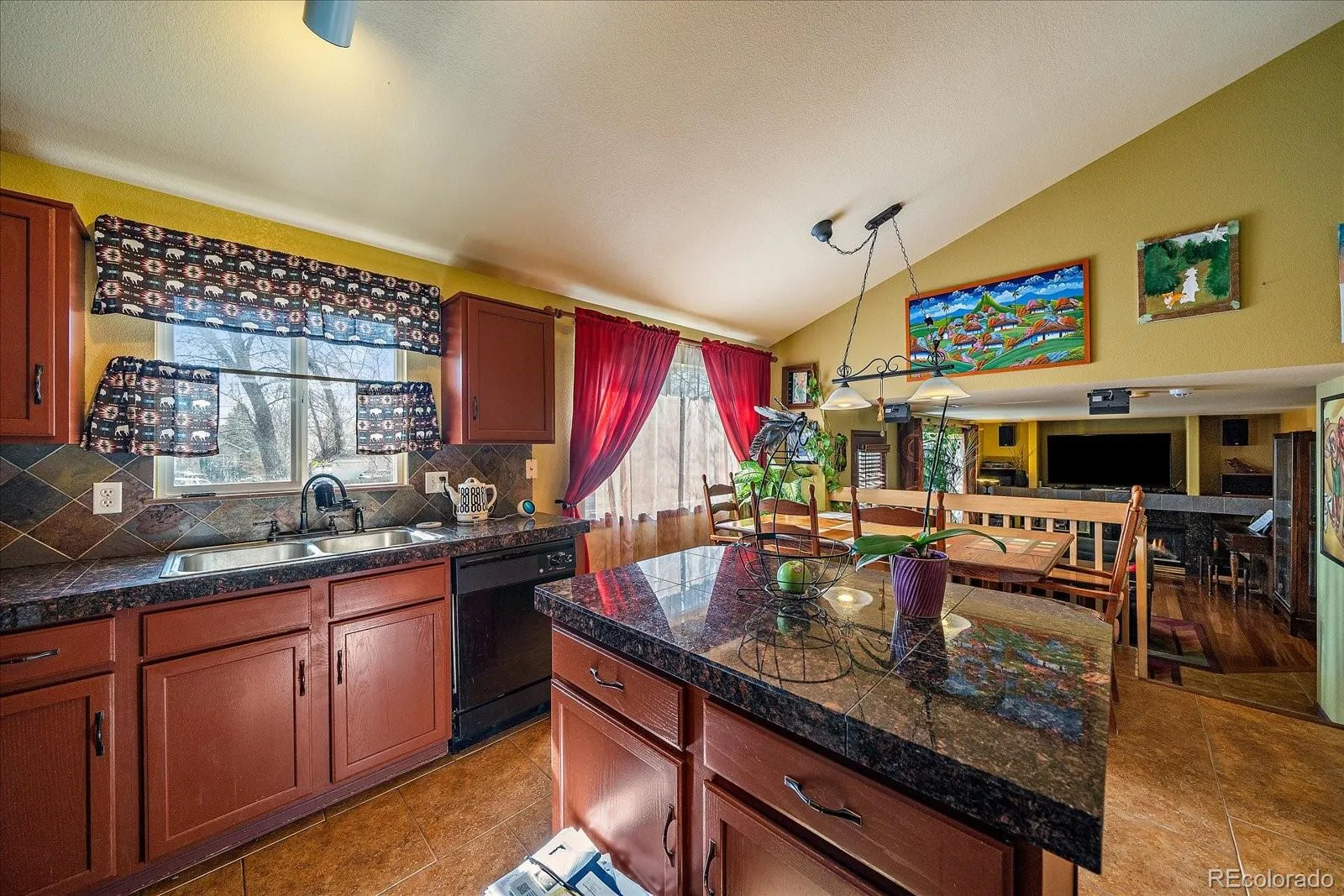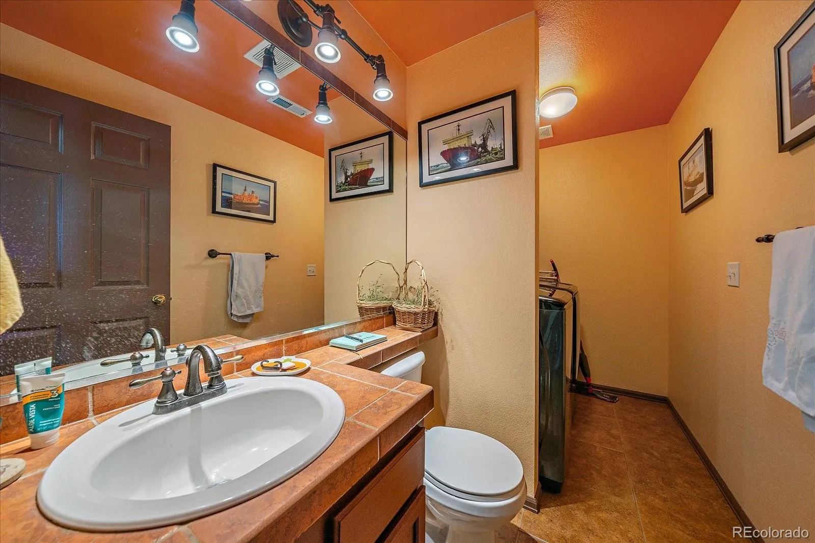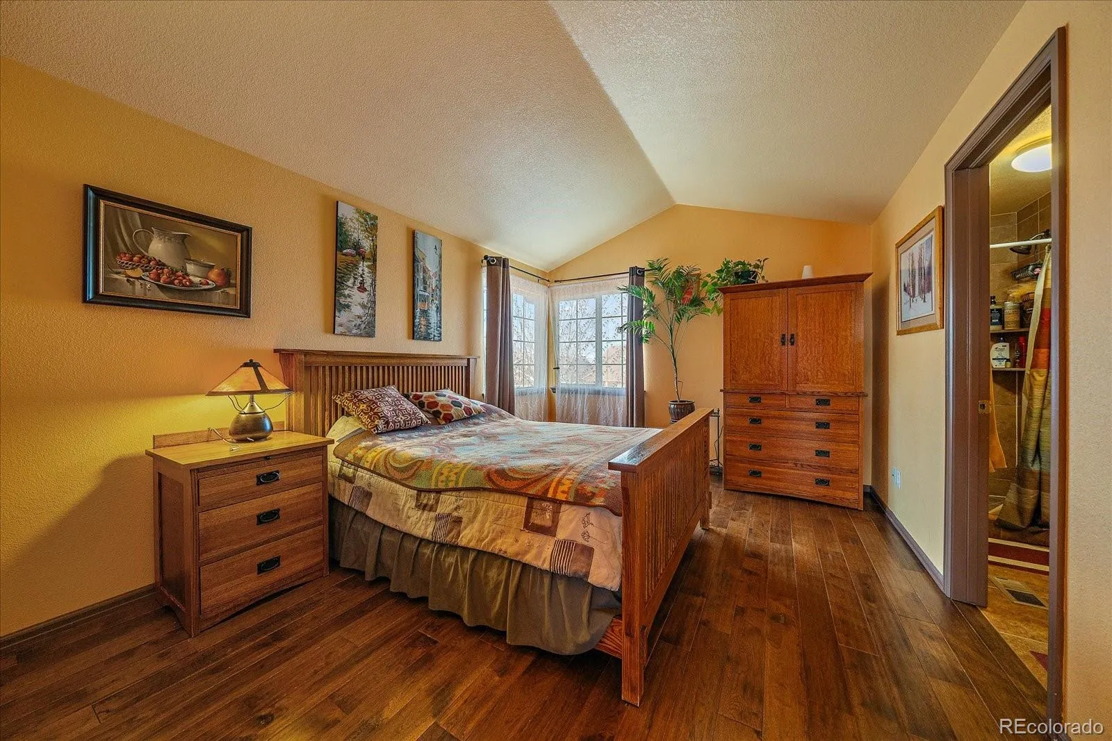 The main level features a formal living room and a spacious dining area with a stunning vaulted ceiling. The kitchen has been freshly painted and showcases granite tile countertops, a matching island, and granite tile backsplash. The remodeled family room combines tile and rich cherry hardwood flooring, creating a warm and inviting space. You’ll also find a convenient laundry room with a newer washer and dryer, along with a half bath on the main level.