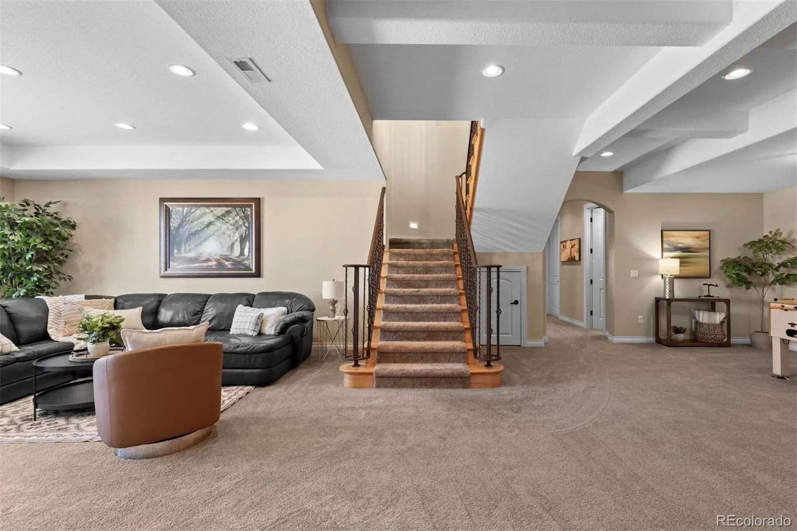 Situated on over 1.5 private acres at the end of a quiet cul-de-sac in the prestigious Spirit Ridge subdivision, this stately custom walkout ranch with a tile roof and five-car garage backs to 30+ acres of protected open space, meadow, and walking trails — offering rare privacy and refined main-level living in one of Parker’s most desirable locations. A breathtaking grand entry welcomes you into a light-filled interior with soaring ceilings, a dramatic wall of windows, and a cozy fireplace anchoring the magnificent great room. The expansive formal dining room showcases elegant wainscoting and incredible mountain views, while an executive-style private office and piano room that doubles as a den area provide versatile living spaces. The kitchen features granite countertops, rich cherry cabinetry, gleaming oak hardwood floors, and a sunlit breakfast nook overlooking open space beyond. Natural light fills the home through energy-efficient Low-E windows designed for year-round comfort. The kitchen flows into an enormous mudroom/laundry room with a convenient half bath for everyday ease. Outdoor living shines on the expansive covered Trex deck — perfect for grilling or enjoying morning coffee while watching spectacular sunrises over the serene landscape. The primary suite offers a tray ceiling, five-piece bath with jetted tub, and large walk-in closet. The beautifully finished walkout lower level extends the home with three additional bedrooms — including two private en-suites — a refined wet bar, expansive game room, secondary living area, and inviting fireplace, all with seamless backyard access. Perfectly positioned minutes from top-rated schools and vibrant downtown Parker, this exceptional residence offers outstanding livability and desirability. 9298 Spirit Court is more than a home — it’s where your next chapter begins!