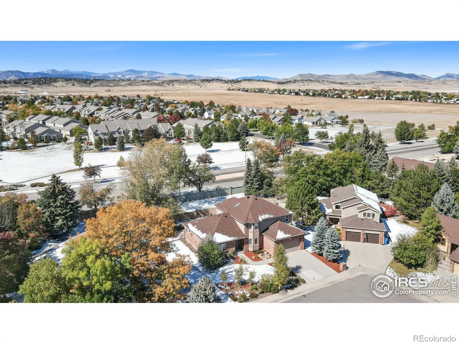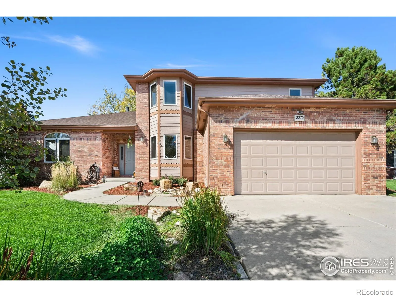 All-brick charmer on a cul-de-sac! This gorgeous home in the Fairway West neighborhood impresses with timeless curb appeal featuring a recently updated roof, and a professionally landscaped front yard that welcomes you as you arrive. The main floor was designed for entertaining, offering an open-concept layout with high ceilings, large windows that flood the space with natural light, and seamless flow between the living areas. The kitchen comes complete with stainless steel appliances, generous prep space, and abundant storage to keep everything organized and within reach. Choose a casual breakfast nook with a bay window overlooking the backyard, or enjoy the formal dining area with its own bay window facing the front. A spacious office with French doors adds flexibility to the space and can easily double as an additional bedroom. Upstairs, the home continues to impress with three generously-sized bedrooms, each featuring walk-in closets. The primary suite stands out with its vaulted ceilings, direct access to a private balcony with mountain views, and a luxurious 5-piece ensuite bathroom. Plus, a sunny, window-wrapped alcove is the perfect spot to relax with a good book or your morning coffee. The huge unfinished basement provides extensive space for expansion or additional storage, offering the potential to customize this area to suit your lifestyle needs. The fenced backyard is ready for gatherings with a raised deck and concrete patio. The large 3-car tandem garage offers ample space for vehicles, storage, or even a workshop. Located with convenient access to Loveland’s numerous amenities and hotspots, this home is just minutes away from downtown, The Olde Course, and Lake Loveland, providing easy access to recreational activities, shopping, and dining. No HOA or Metro District!