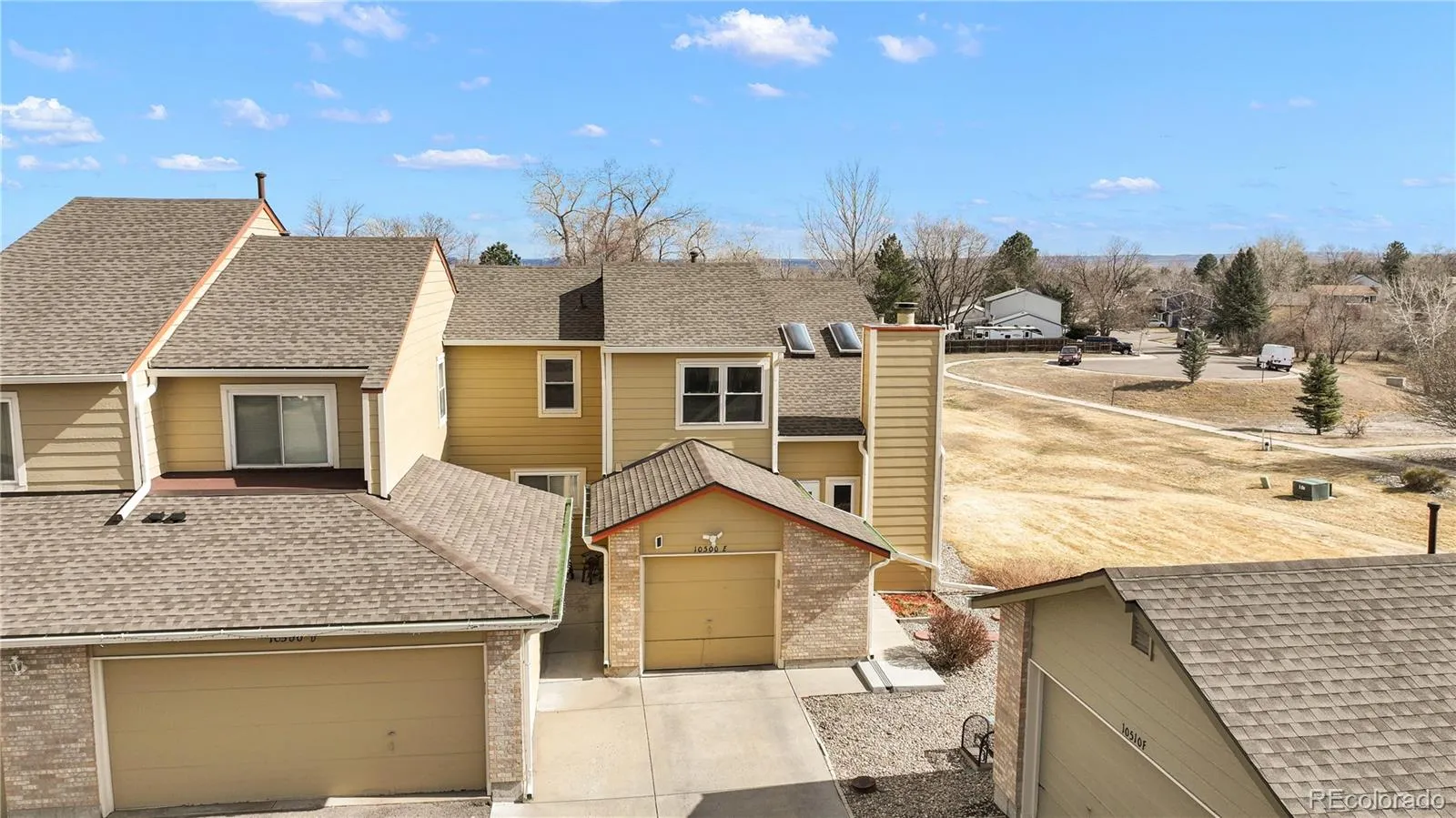 Welcome to 10500 W Fair Ave Unit E, Littleton, CO 80127! This exceptional end-unit townhome is nestled in a tranquil community adjacent to open space and a bike path. Boasting updates throughout, revel in newer flooring, an upgraded AC unit, modern appliances, and enhanced lighting. The spacious two-level living area features 2 bedrooms and 2 bathrooms, complemented by a partially finished basement with a versatile rubber-floored gym area, egress window and ample storage. Enjoy the serenity of the private, super-quiet back patio—perfect for outdoor relaxation. A Columbine & Strawberry patch awaits you… Offering the best location in the complex, this gem is not to be missed! Schedule your viewing today!