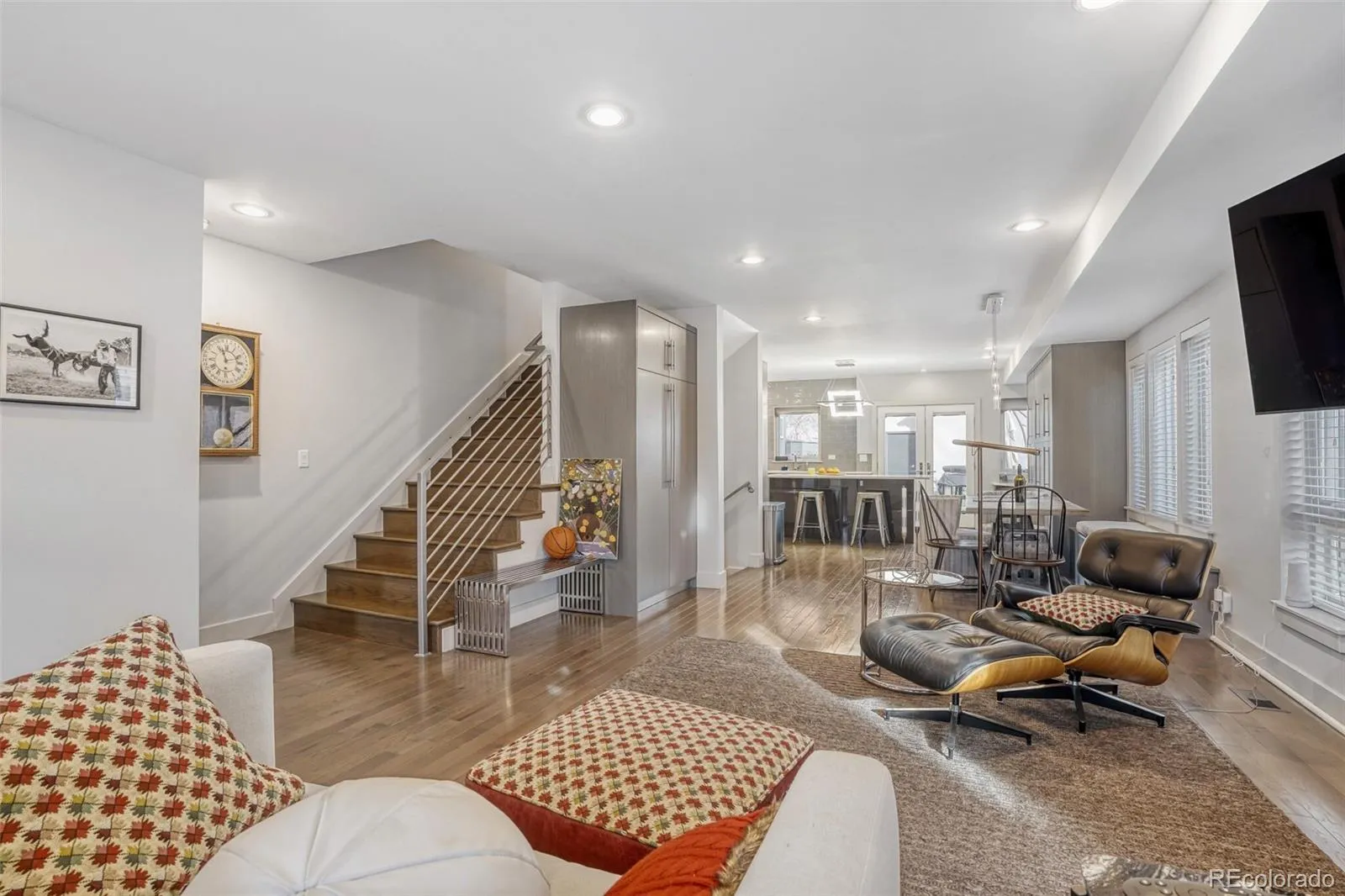 Ultra modern, open design, custom built 1/2 duplex located on “Old” South Pearl St in Platt Park. This flexible design features 3 stories of hardwood floors with 9′ ceilings, 2 custom fireplaces, stunning kitchen with stainless steel appliances: French door refrigerator, chef style 5 burner gas stove w electric oven, in-drawer microwave, and dishwasher. Quartz counter tops with 7 foot island will seat 4 guests comfortably. Loaded with custom cabinets to meet demanding storage needs. Primary bedroom is ensuite, with custom tiling, 2 sinks, extra-large tub with rain shower and sliding glass door. Walk-in closet with lots of built-in shelving. Second bedroom has a walk-in closet and a sliding glass door that leads to a spacious west-facing balcony. Second bathroom is custom tiled with shower. Also conveniently located on the 2nd floor are a washer and dryer. Up one more floor to a small office or sitting area leading to the full length exclusive rooftop deck with unbelievable views of the city and the Rocky Mountains! Third bedroom, in carpeted basement, has a walk-in closet. Great room and basement living area have custom stone tiled gas fireplaces. The exclusive fenced courtyard is equipped with automated drip system and a gas hook-up for a grill. Custom designed concrete courtyard leads to an oversized 2 car garage that will accommodate a large pickup truck, and has an electric vehicle charging outlet. Everything you need in this vibrant neighborhood is in walking distance: shopping, dining, entertainment, light rail and much more. This amazing home is a MUST SEE!