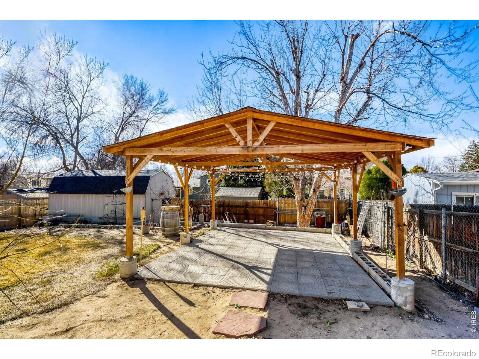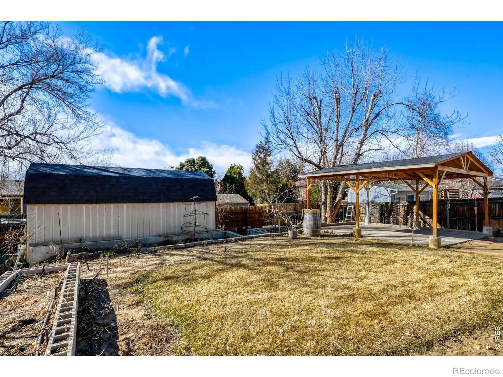 New price!! on this great home on a large lot: 4 bdrms plus a 9×11 office in basement. Basement suite has a jet tub, shower and walk in closet. All appliances stay including almost new clothes washing machine. Newer pergola patio boasts a 20×15 patio area in the large backyard. 20×10 shed stays-bring all the projects and activities to your new home! No HOA, no Metro District in this established neighborhood.