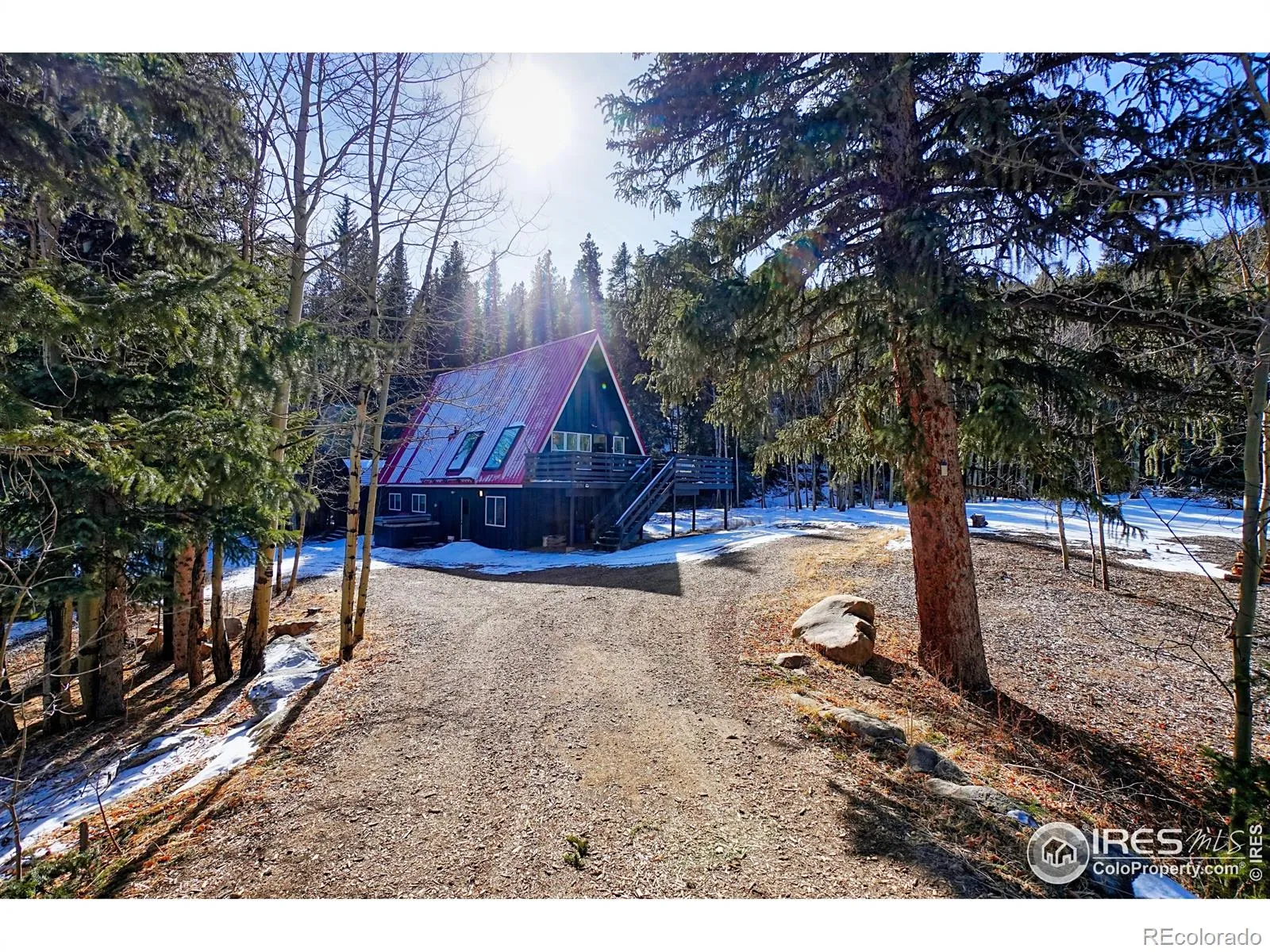 Welcome to this beautifully updated, creek-front A-frame! Offered as a fully turnkey opportunity, this 3-bedroom, 2-bath home with spacious loft blends classic mountain charm with modern updates, including fresh interior and exterior paint throughout + tasteful, kitchen & bathroom updates. Fronting Clear Creek and featuring a seasonal fishing pond, the property offers a serene, private setting surrounded by pines & aspens. Listing is for two side by side lots, totaling just under an acre. Property has been a successful STR for 4 yrs. Enjoy as an income property, second home, or full-time residence. Enjoy cozy evenings by the fireplace or relax in the private hot tub. Watch moose graze in the aspen meadow, sit by the creek and enjoy the fresh mountain air. Offered fully furnished for a seamless investment or move-in-ready mountain retreat, this home has Prime location- 5 minutes to Downtown Black Hawk & Central City, 15 minutes to I-70, 30 minutes to Eldora Ski Resort and 55 minutes to downtown Denver. Enjoy low Gilpin County taxes and endless hiking and biking trails nearby- this home is a true mountain gem! Lot lines shown in photos are for illustrative purposes only. Please check out our fly through video tour! https://youtu.be/1xv2TVCw1B0