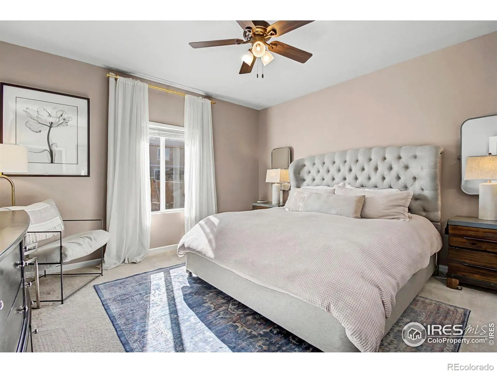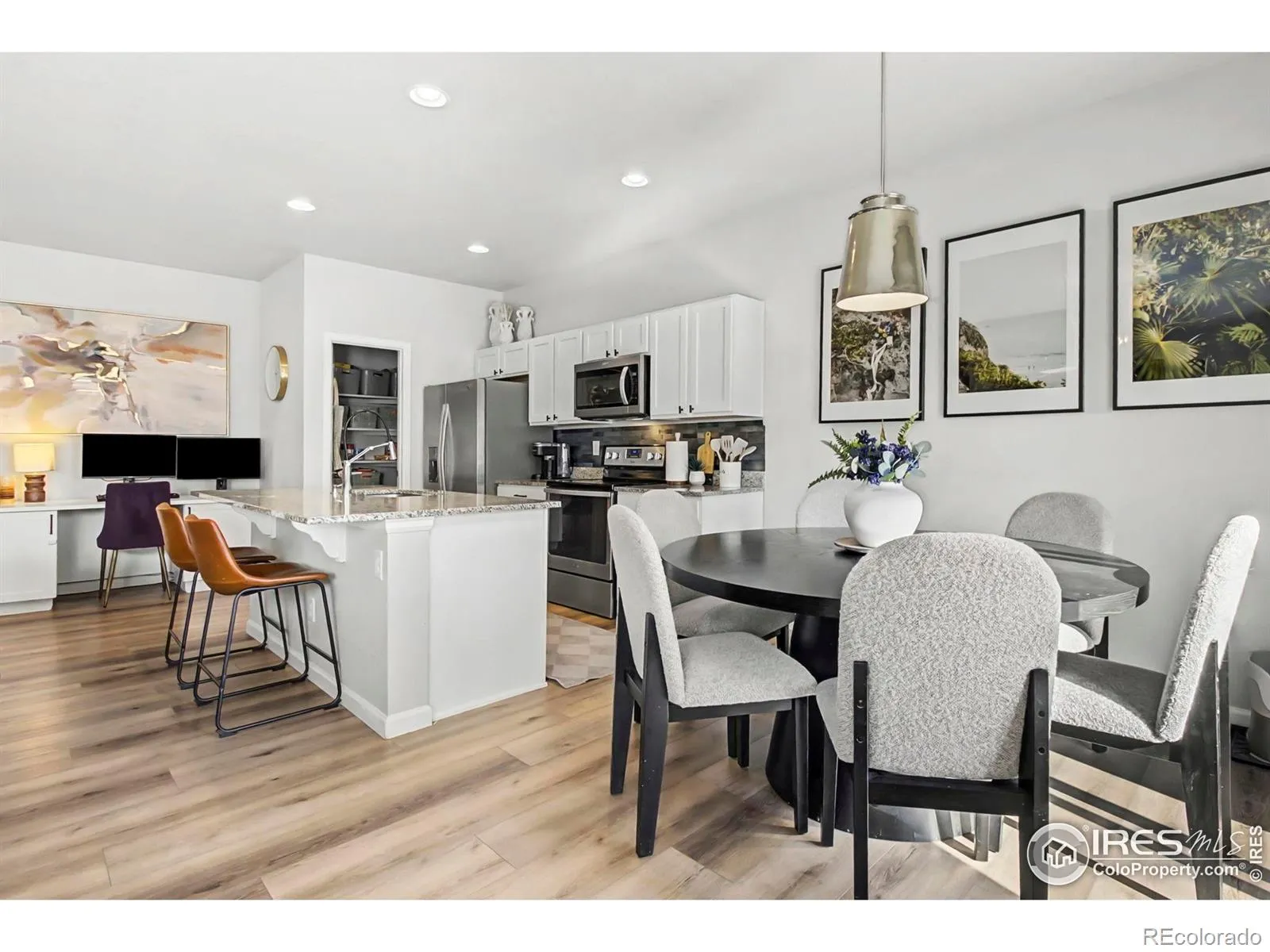 Discover this beautifully designed ranch-style home on a desirable corner lot, featuring an inviting open floor plan with 9-foot ceilings. This residence boasts three spacious bedrooms and two well-appointed baths, offering a perfect balance of comfort and style. The heart of the home is the stunning kitchen, showcasing sleek granite countertops, stainless steel appliances, and modern light fixtures. Enjoy culinary delights with ease, thanks to the large walk-in pantry and an impressive kitchen island that doubles as a breakfast bar-ideal for casual meals and entertaining. Retreat to the large primary suite, which features an expansive primary bedroom, a generous walk-in closet, and a spacious bathroom designed for relaxation. Enjoy the fully landscaped front and backyards, complete with a sprinkler system and drip irrigation for easy maintenance, along with a two-car garage for ample storage. Conveniently located just minutes from I-25, you’re only a short 9-minute drive to downtown Loveland and close to Loveland Willowbend Park and the Loveland Sports Park. Families will appreciate the proximity to New Vision Charter School and Mountain View High School. Click on virtual tour above to view a 360 panoramic interactive picture to explore the neighborhood!!! An additional features brochure is attached on the MLS. Bring us an offer!