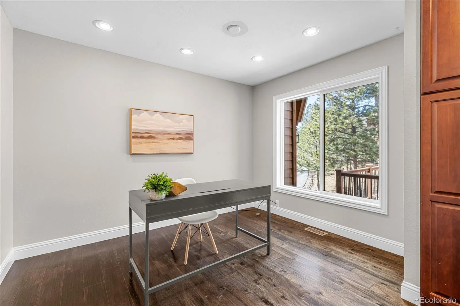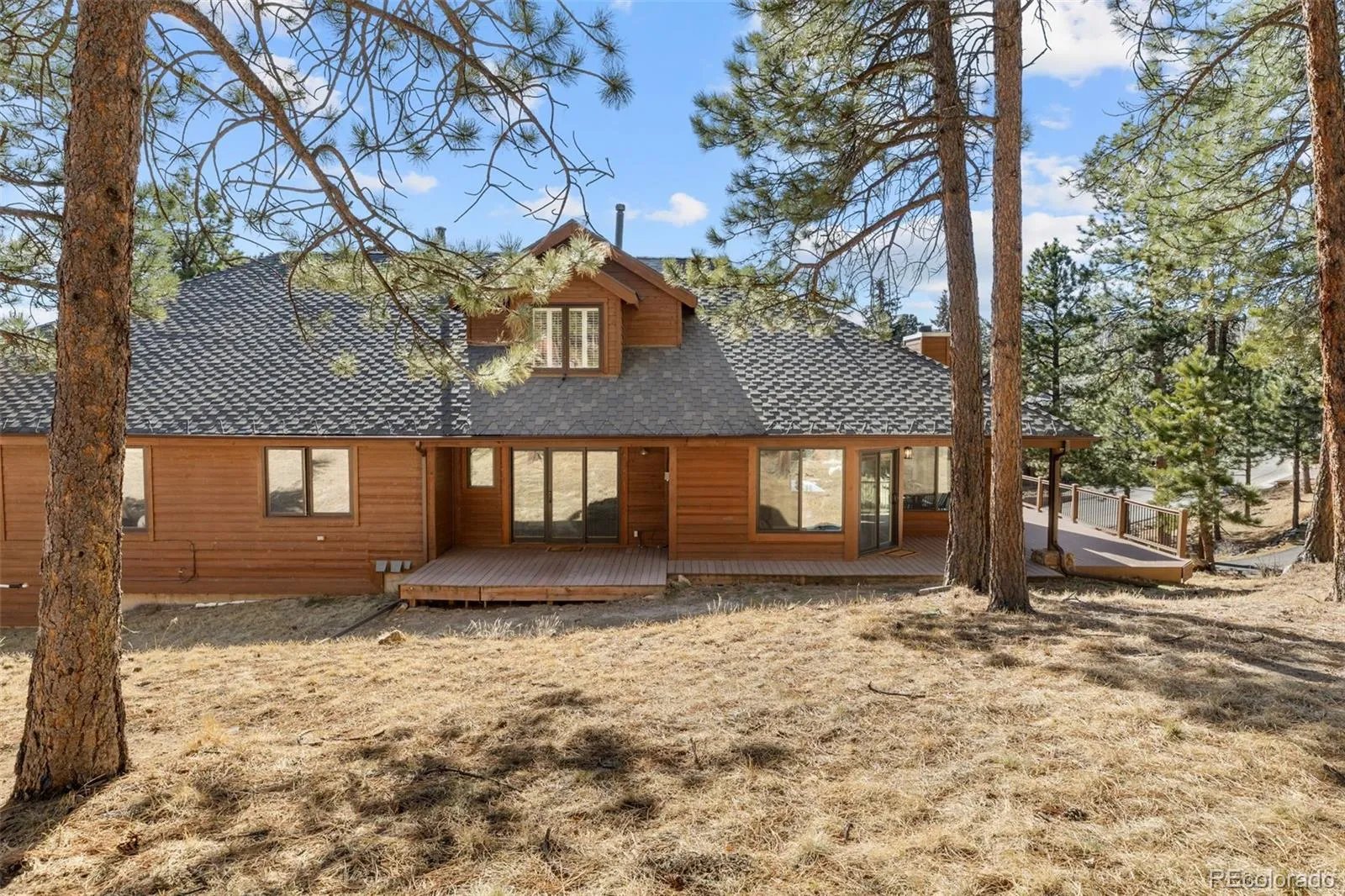 Troutdale Village in North Evergreen is where attached single family living meets miles of trails out your door connecting directly to Dedisse Park and Evergreen Lake with easy access to local restaurants and shops in downtown Evergreen, making it one of the most convenient lock-and-leave spots in the mountains. Thoughtful updates elevate both comfort and peace of mind: new roof and skylights (June 2024), new windows (2020), new house humidifier (2020), radon mitigation (2020), updated upstairs bathrooms (2020), new flooring on the stairs with updated railings (2020), refreshed basement flooring (2020) with new carpet added in 2026, reinforced and updated decking (2020), and fresh landscaping completed in 2026. Inside, an open, sunny floor plan features a spacious main-floor primary suite with access to a private, tree-lined back deck, plus a main-floor home office ideal for today’s work-from-home lifestyle. The eat-in kitchen, with its oversized island, stainless steel appliances, and adjacent formal dining area and the light-filled living room, makes entertaining effortless. The lower level offers a generous recreation room that functions beautifully as a family room, media space, or workout area, along with a large bedroom, additional bathroom, and convenient laundry area. Upstairs, two additional bedrooms each enjoy their own private bath, creating comfortable suites for family or guests. A wraparound main-level deck extends the living space outdoors, capturing beautiful mountains nd park views, abundant sunshine, and a true Colorado indoor-outdoor living experience. This pocket is ideal for buyers who want to be close to Evergreen Lake, trails, and golf without the upkeep of a large mountain property, perfect for second-home owners, right-sizers, and Denver buyers seeking a mountain base. This ready-to-go property can be sold quickly and does not require a post-occupancy agreement, making your move into Evergreen’s trail-side lifestyle that much smoother.