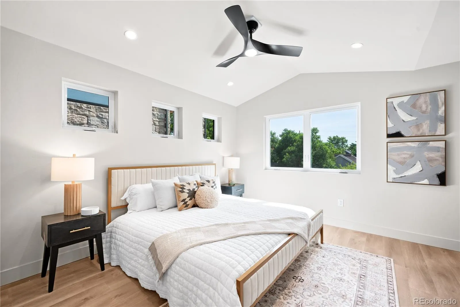 BBQs and pre-wired sound—an ideal setup for entertaining. Upstairs, the vaulted ceilings in the primary suite create an