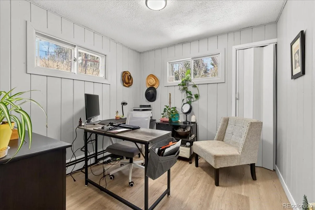 Tucked away on 1.6 tranquil acres with sweeping mountain views, this beautifully updated ranch offers the perfect blend of comfort, charm, and functionality. Brand new updates include a front storm door, keeping the house cooler in summer and warmer in winter, a large modern kitchen sink and faucet and concrete kitchen countertops. Other notable updates include new windows, new luxury vinyl plank flooring, fresh paint, and newer fixtures throughout. The warm, inviting dining room is anchored by a stunning stone wood-burning fireplace. The refreshed primary suite is a true retreat, featuring a stylish double-sink vanity and a walk-in tiled shower. Outside, enjoy the views, wildlife and serenity from your front patio, complete with a fenced garden and dog run. A separate, powered cabin makes an ideal studio, office, or creative hobby space. The oversized 2-car garage offers ample storage, and with a newer septic system, well pump, and reliable year-round road access, this mountain haven is as practical as it is picturesque.