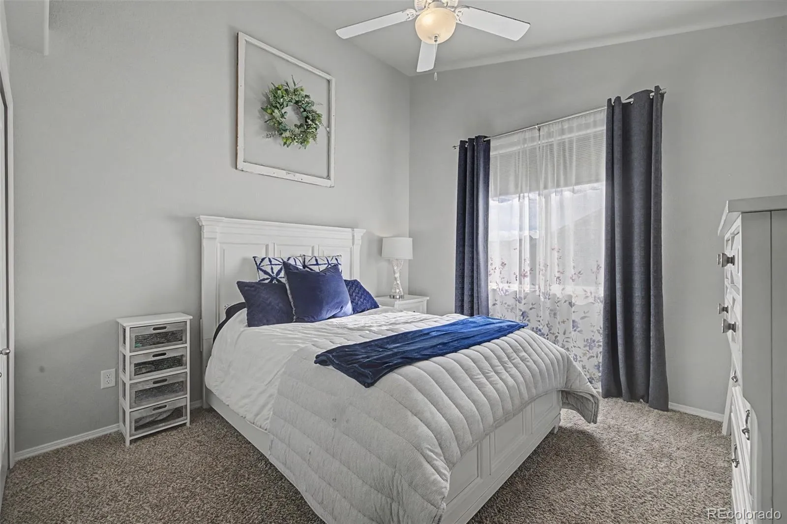 The private office includes built-in bookshelves and dimmable lighting. The primary suite offers a spacious walk-in closet and a barn door entry into the spa-style bath with double vanities.
