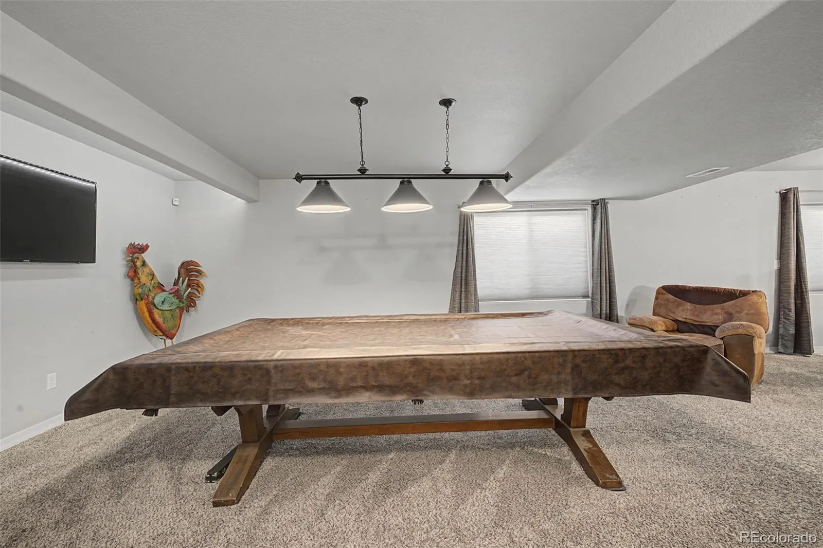 The fully finished basement expands your living space with a large family room, game area, full wet bar, and kitchenette with included mini fridge. The pool table and accessories remain. Builder HRE upgrades include CAT6 wiring throughout, conduit runs in basement areas, added 110v outlets, security system, and central vacuum extending into the garage.