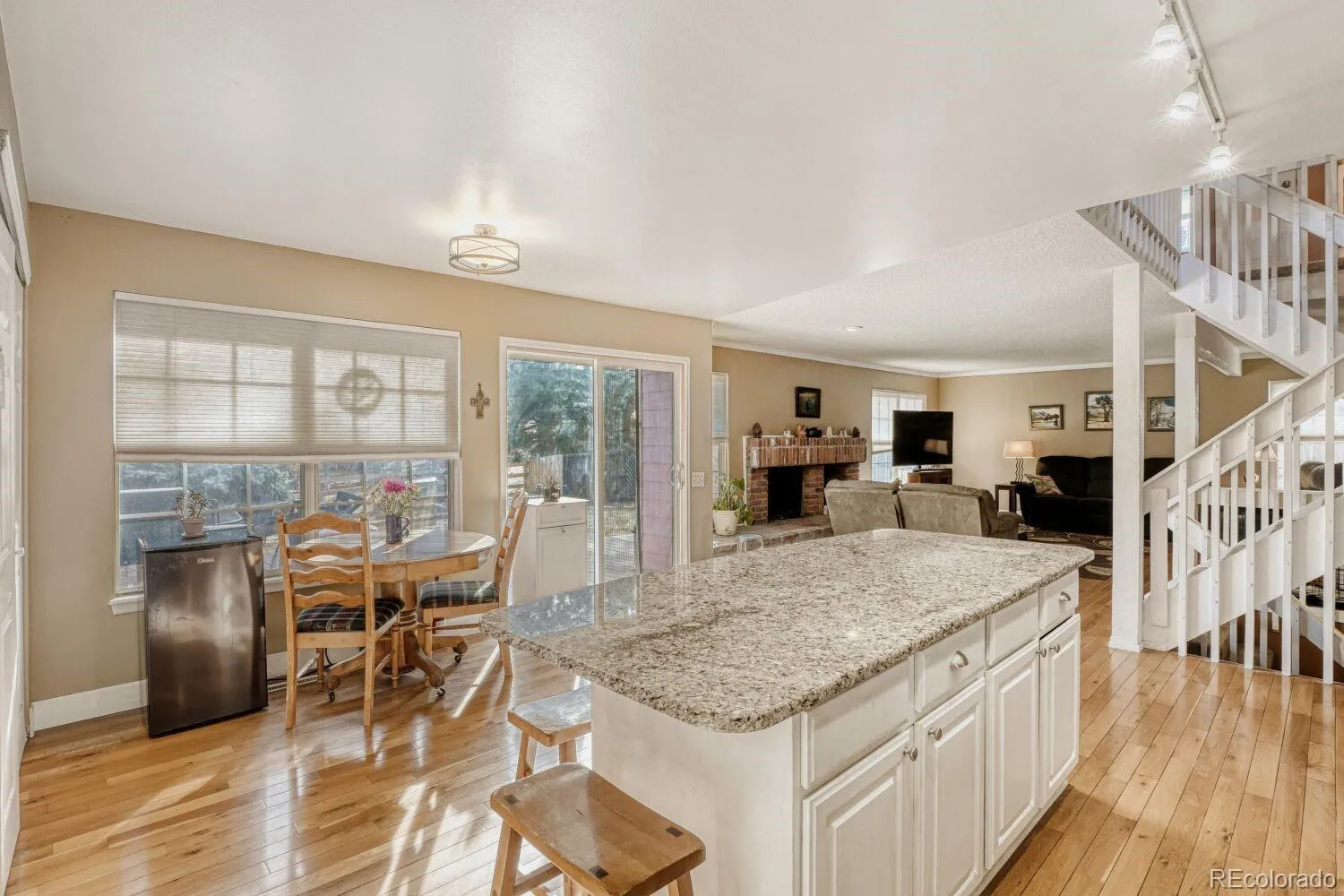 Discover your dream home in the heart of Ken-Caryl Ranch! This stunning contemporary masterpiece bursts with timeless charm, modern upgrades, and unbeatable lifestyle perks—ready to welcome you home in style! Beautiful exterior brick accents, bold gabled roof, and massive windows and skylights to pour sunlight into every corner. The front yard blends manicured grass with a zoned sprinkler system alongside plenty of nearby mature trees and bushes. Enjoy newer storm-rated windows from Renewal by Anderson alongside the convenience of a newer high-impact shingled roof, both of which replaced at the same time!