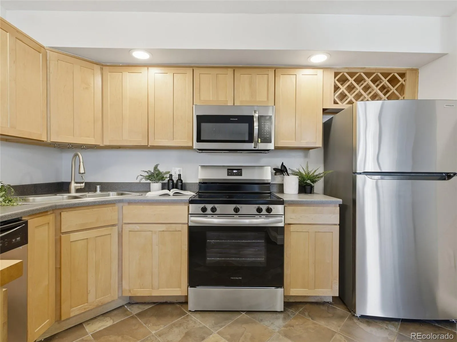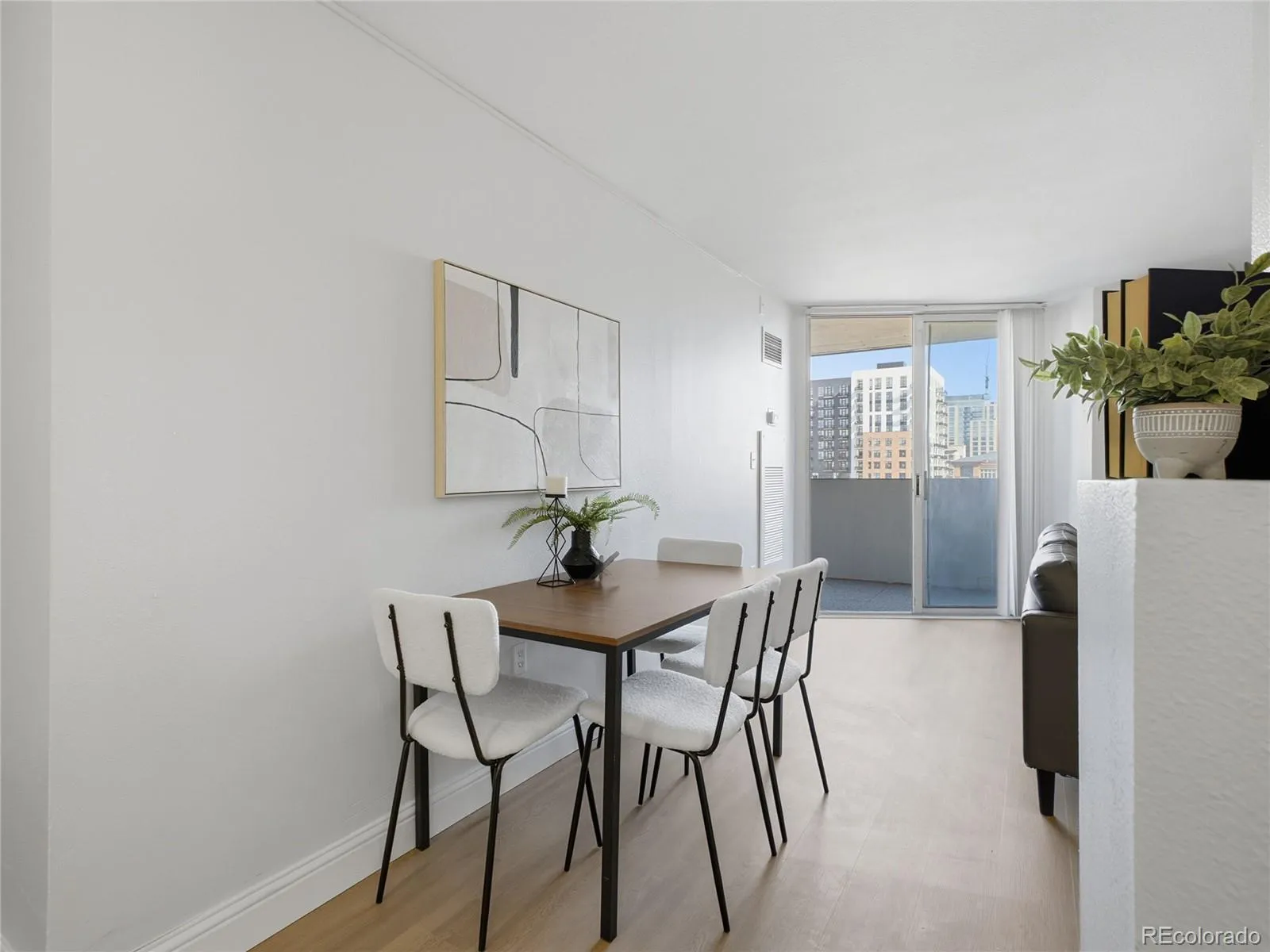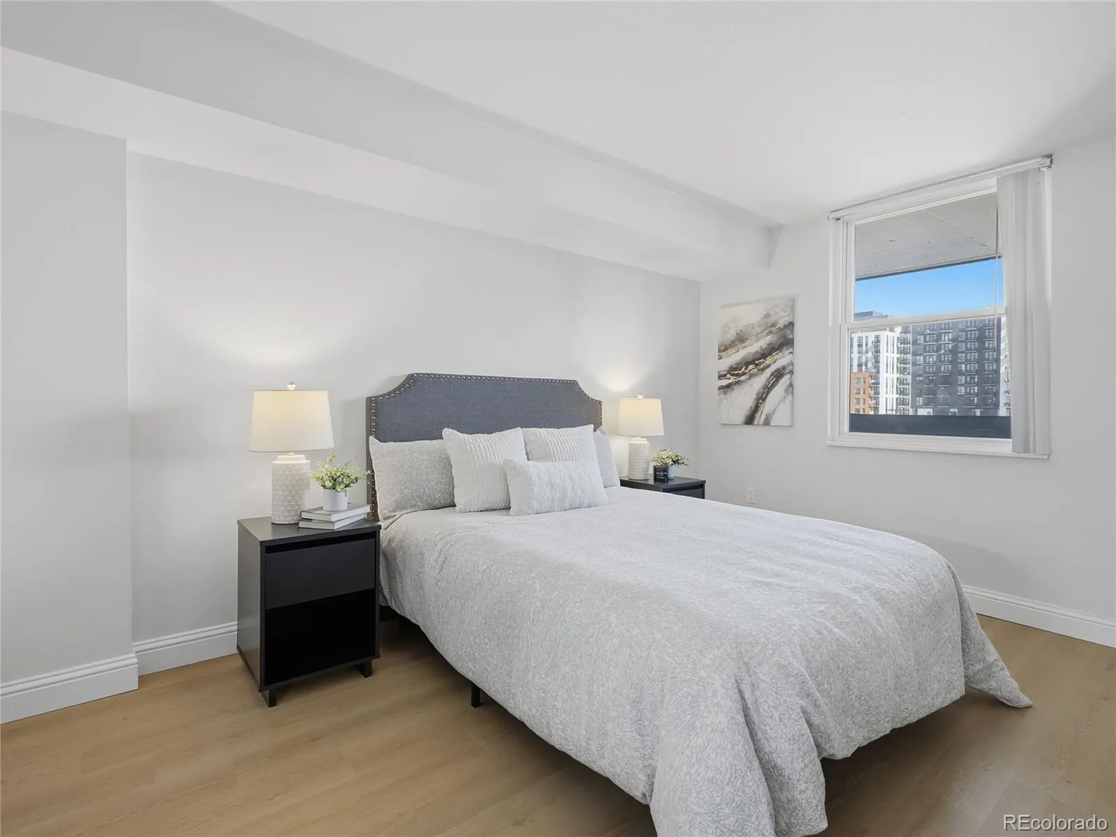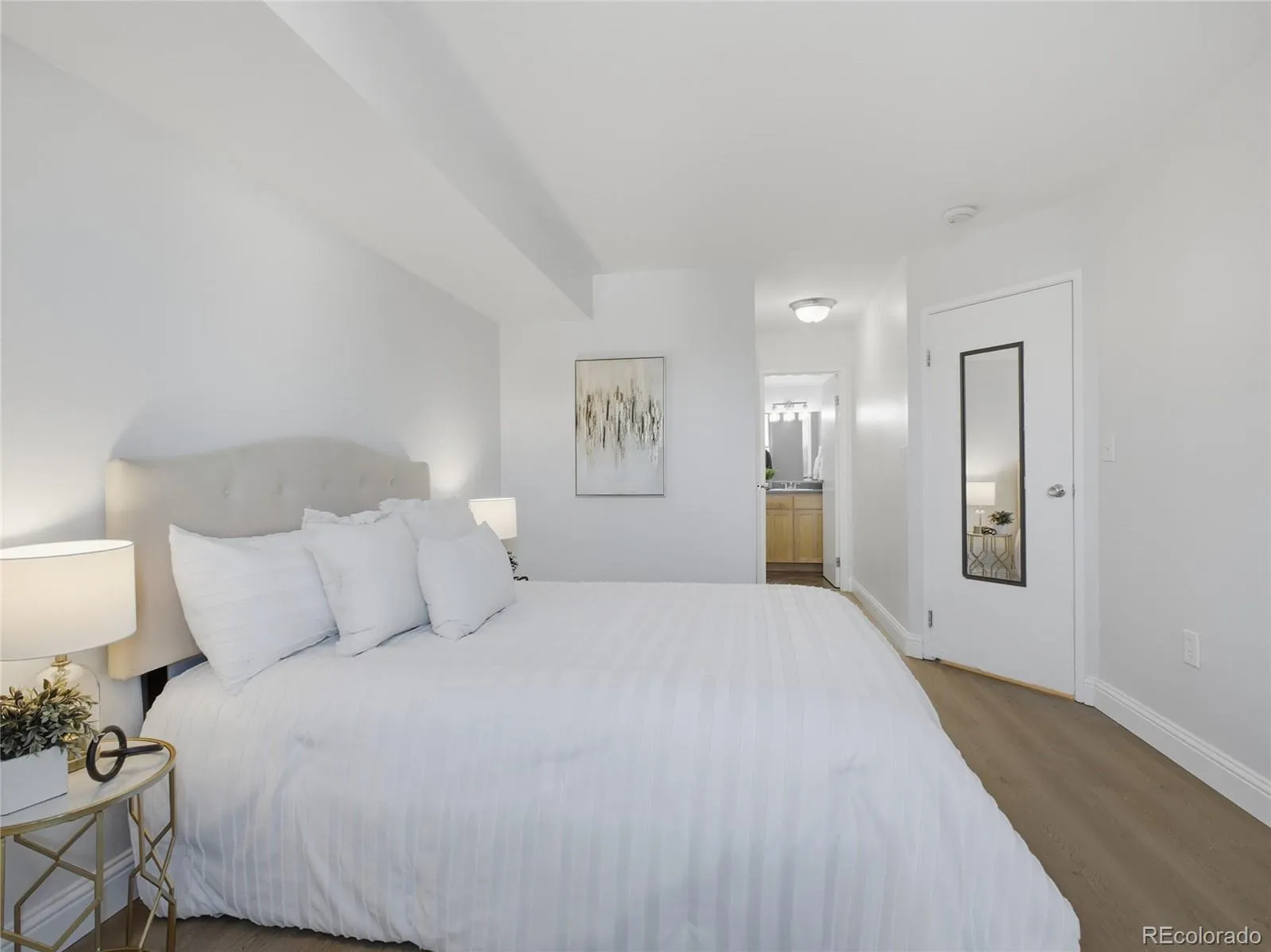 Welcome home to this beautifully updated 2 bedroom, 2 bath condo in the heart of the highly sought after Golden Triangle neighborhood! This light filled residence features an open floor plan designed for modern living with brand new flooring, fresh paint and updated lighting. The stylish kitchen offers a convenient breakfast bar, ample cabinet space and brand new stainless steel appliances, making it perfect for everyday living or entertaining guests! Primary Bedroom with a full ensuite bathroom and a 2nd spacious bedroom with a full bath in the hall, offers comfort, privacy and flexibility for guests or roommates! Enjoy year-round comfort with central air conditioning and unwind on your expansive private patio with stunning downtown views—an ideal spot for morning coffee or evening relaxation! Residents also enjoy access to a 6th-floor community deck with sweeping mountain views, perfect for watching sunsets or hosting gatherings! This well-appointed building offers a welcoming, contemporary lobby, fitness center and meeting room! The sister building next door at 1170 Galapago provides more exceptional amenities including a huge fitness center, swimming pool/hot tub, convenient business center, clubhouse with a full kitchen and a fun movie and sports viewing room! Parking is a breeze with secure garage parking plus one off-street space! With a high walk score, this location is unbeatable! Enjoy the Cherry Creek Trail and bike path, relax at Sunken Gardens Park and take advantage of being just minutes from the bustling Downtown Denver vibe! Cultural attractions like the Denver Art Museum are nearby, along with everyday conveniences such as King Soopers and Trader Joe’s! Explore local favorites including Stoney’s Bar & Grill, plus numerous restaurants, brewpubs and coffee shops! Easy access to Speer Boulevard, I-25 and you’re just a short bike ride to LoHi! This move-in-ready condo offers the perfect blend of comfort, convenience and vibrant city living!