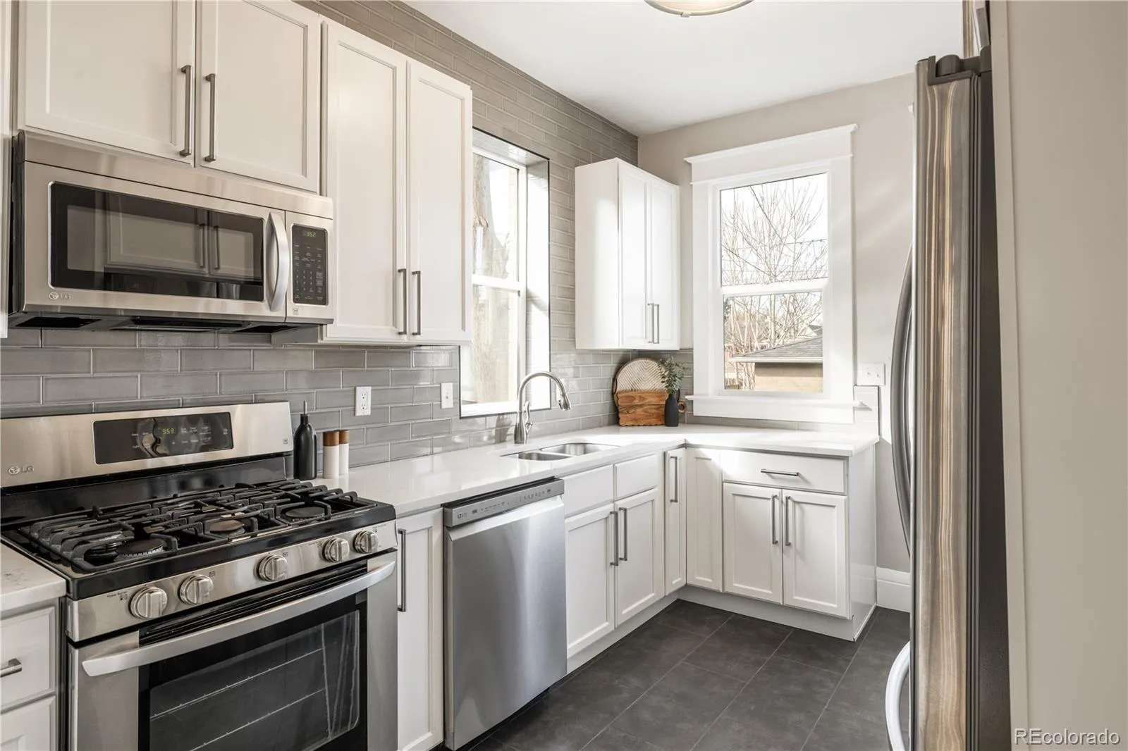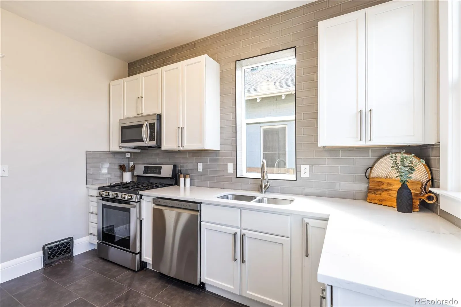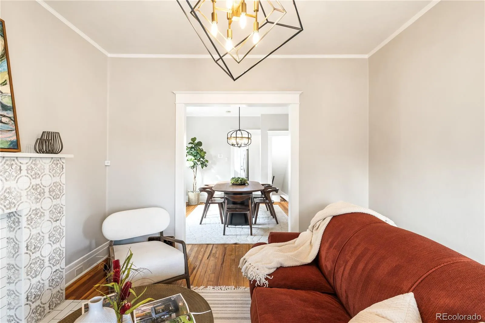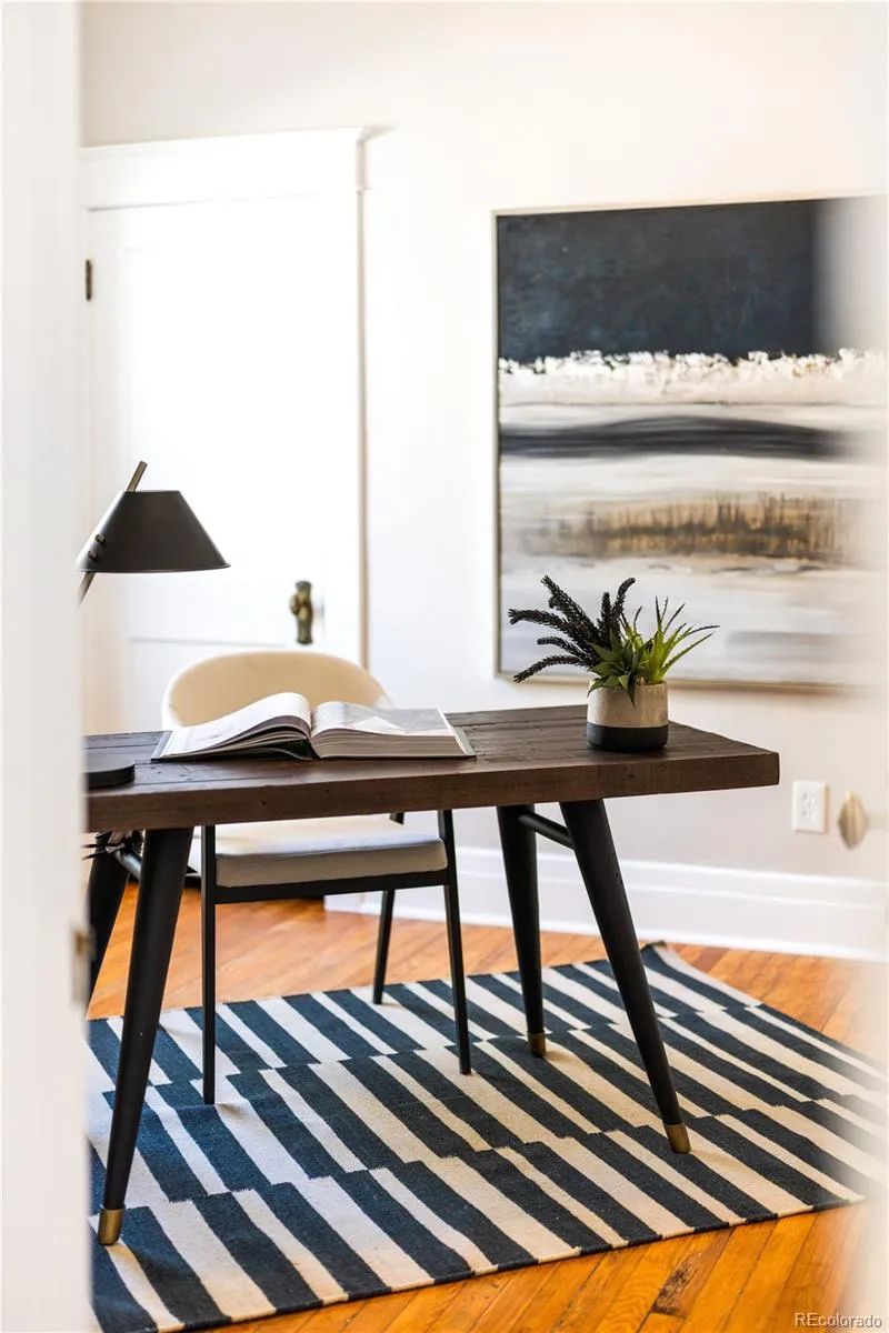Historic charm and curated modern updates converge in this beautifully refreshed West City Park residence. Perfectly positioned near City Park and RiNo, this home beams with abundant natural light from large windows and high ceilings. Inside, original hardwood floors, trim, knobs, vents and a stunning tiled fireplace preserve the home’s architectural integrity, while contemporary light fixtures elevate the living experience. The fully updated kitchen features solid quartz countertops, stainless steel appliances and a striking subway tile backsplash that extends from counter to ceiling. Both bathrooms have been completely remodeled with new vanities, stylish tile surrounds and solid-surface counters. Upstairs, the primary suite offers a private retreat, while the basement showcases exposed brick and generous storage. Enjoy outdoor relaxation in a fenced front yard and backyard with raised garden beds. Upgrades include a new roof, furnace and A/C in 2019 and an included washer and dryer set.