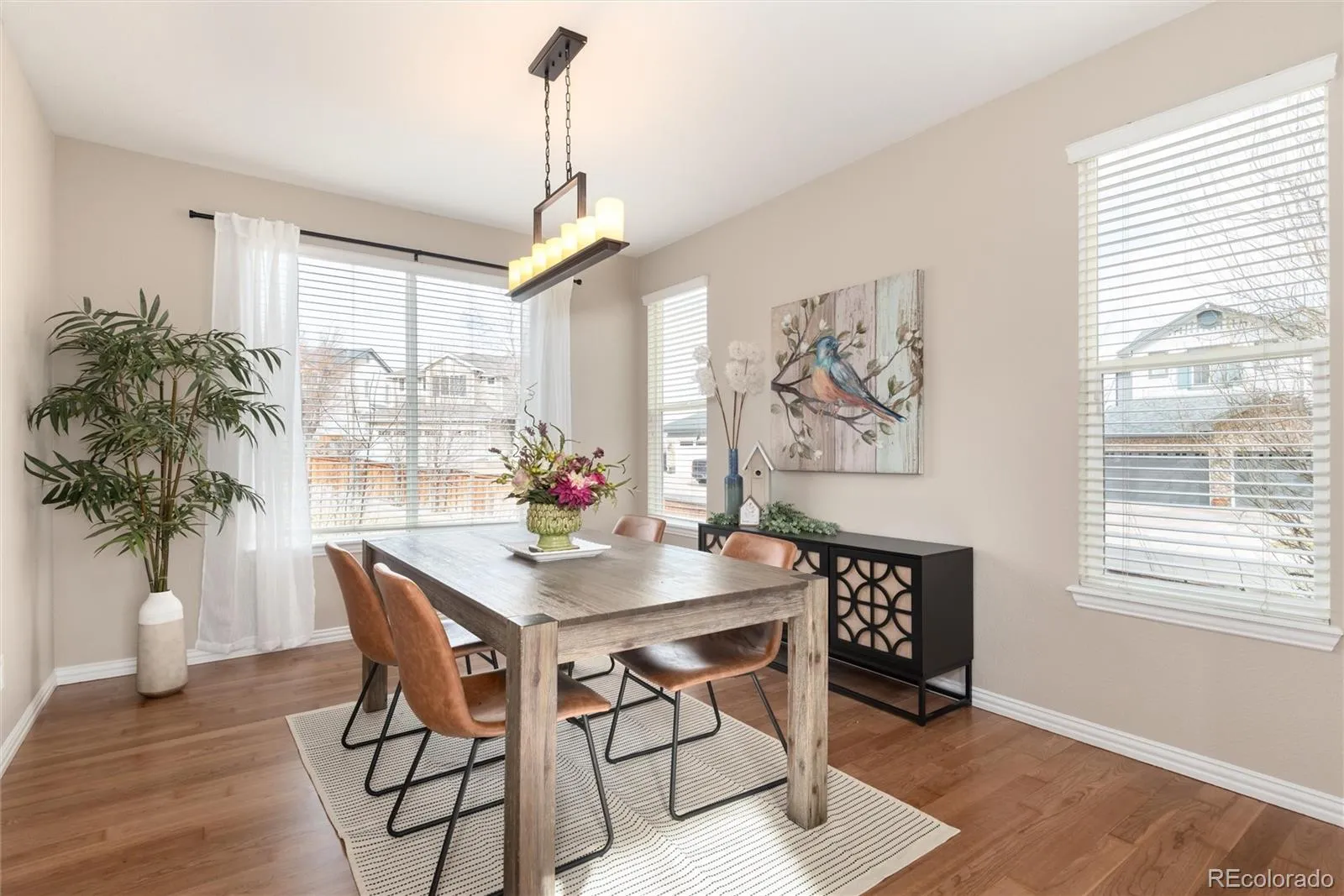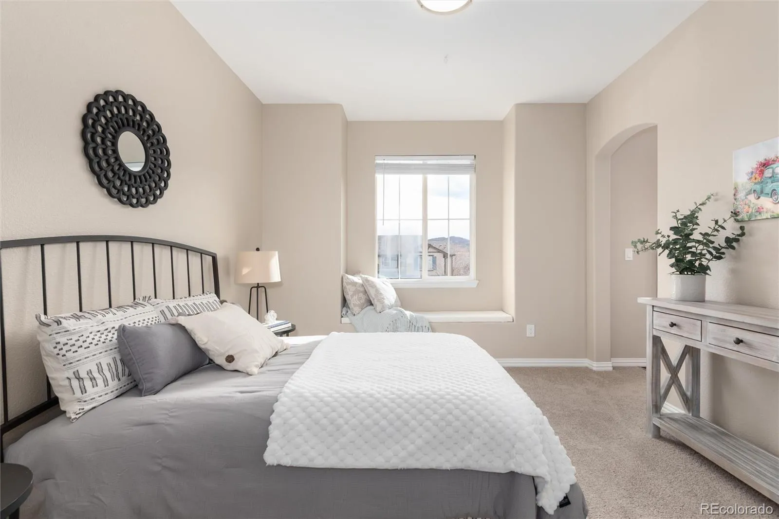 Exceptional home with distinctive enhancements that create a more functional and custom floor plan. Two-story ceilings and expansive picture windows, paired with refinished wood floors, new carpeting and new paint inside & out, give this refreshed home an elevated feel. The kitchen offers both style and function with 42” maple cabinetry for ample storage, a window framed sink, and a gas range perfect for the aspiring chef. Center island has been reconfigured to include a generous workspace, storage, charging station and seating. French-door access from the family room creates a smart modification to the main-floor bedroom, offering an ideal work-from-home space while retaining bedroom status with a walk-in closet. This bedroom pairs well with a full bath, ideal for comfortable stair-free living. The upstairs has a cozy reading nook and striking custom rooms wrapped in oversized windows for exceptional natural light plus bonus features like a charming window bench seat with mountain views and private vanities at the Jack & Jill bathroom delivering a functional layout without sacrificing character. The spacious primary suite offers a sense of privacy and retreat, complemented by a bath updated with quartz counters, new sinks, mirrors, lighting, and new blinds. A finished basement expands the living space, ideal for movie nights or game days and allowing everyone room to spread out comfortably. Outside, the ¼-acre corner cul-de-sac lot provides a peaceful setting away from busy traffic, complemented by an expanded patio with gas hookup and speaker wiring for year-round outdoor living. With all major systems – roof, furnace, A/C, and water heater, sprinkler system – replaced within the last seven years, this home offers complete peace of mind and nothing left to do but move in. TrailMark is a one-of-a-kind community blending natural beauty with neighborhood charm and surrounded by open space and miles of trails, ponds and parks – true Colorado lifestyle at your doorstep