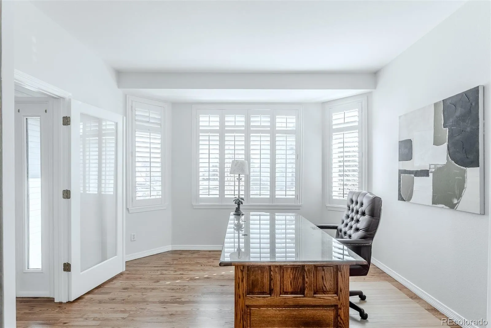 From the moment you arrive, the home’s rare position backing to protected open space sets it apart. With no rear neighbors and expansive natural views, it offers a sense of privacy and calm that is increasingly hard to find. Inside, real hardwood floors span the main level, complemented by fresh paint and updated lighting that create a bright, welcoming atmosphere. The vaulted great room fills with natural light through oversized windows framed by custom shutters, while a gas fireplace anchors the space for cozy evenings and relaxed gatherings. The kitchen is designed to bring people together, with crisp white cabinetry, generous prep space, a peninsula island for casual seating, and a classic brick backsplash that adds warmth and character. French doors in the adjacent eating nook open to the west-facing backyard, where afternoon sunshine extends meals and conversations outdoors. A formal dining room offers space to host holidays or special occasions, while the dedicated main-floor office provides flexibility—whether working from home, studying, or creating. Upstairs, the primary suite serves as a comfortable retreat, complete with an ensuite bath featuring dual vanities, a soaking tub, separate shower, and two walk-in closets. Three additional bedrooms and a thoughtfully arranged shared bath provide room to grow, welcome guests, or adapt as needs change. An unfinished basement is ready for future plans, and a three-car garage adds everyday convenience. Outdoors, the expansive patio invites BBQs, quiet mornings with coffee, and evenings gathered around the fire pit under open skies. The fully fenced yard showcases established perennial and edible landscaping, bringing seasonal color and texture throughout the year. Beyond the fence, open space gently blurs the boundary lines, giving the backyard a rare sense of depth and connection to nature. This is a home designed for both everyday comfort and meaningful moments—private, welcoming, and ready for what comes next.
