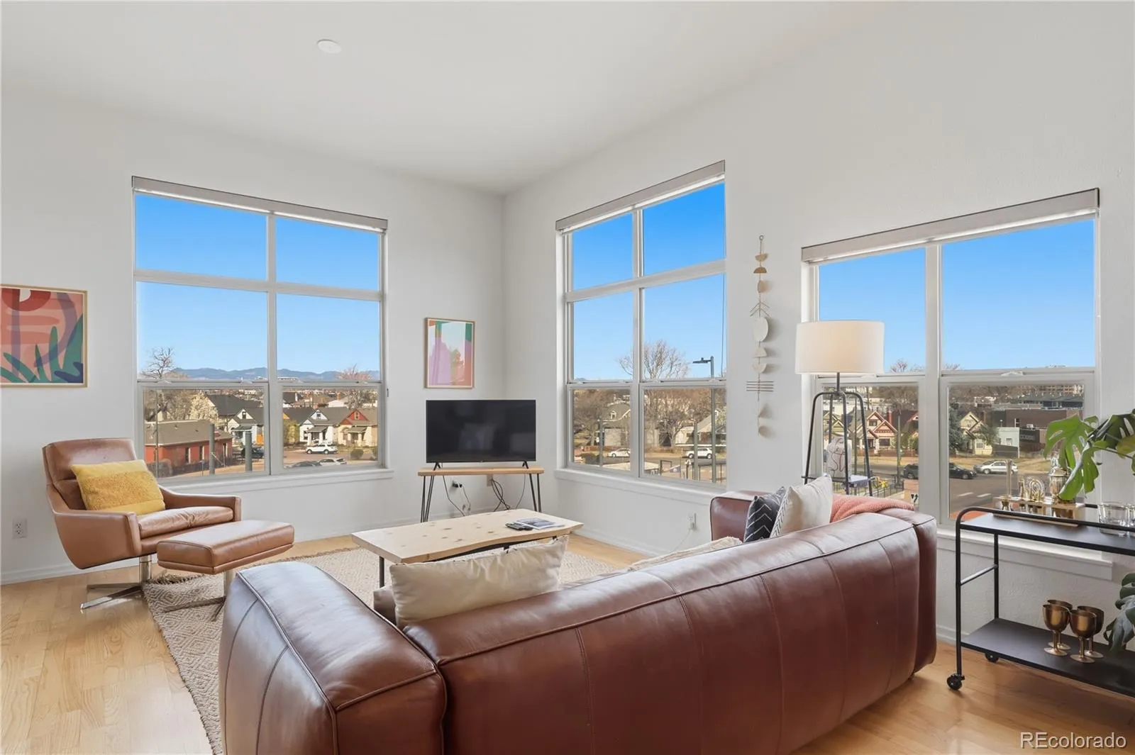 FRESH NEW PRICE!!! Welcome home to your cozy yet sophisticated urban oasis! Situated in the heart of one of the most dynamic and hip neighborhoods in Denver this beautiful and affordable condo is perfect for anyone looking for a great city location and contemporary comfort. Soak in the city and mountain views and enjoy gobs of natural light through the large windows situated throughout the entire unit. The large and spacious living area includes space for a comfortable living room, a dining area, and flows seamlessly into the modern kitchen. This large main living area, includes oak hardwood floors, fifteen-foot ceilings and tasteful industrial accents throughout creating a spacious loft feel but still cozy and comfortable. The kitchen is equipped with stainless steel appliances, a large sink, quartz countertops, along with fashionable white shaker and steel blue cabinets and a stainless bar top. The primary suite features large west-facing windows, Berber carpet, and a spacious walk-in closet with wire shelving. The in-suite bathroom features double sinks, modern cabinetry, stylish deep gray tile flooring, large soaking tub/shower. The roomy guest bedroom/office includes Berber carpet and has a large closet with sliding doors. The second bathroom, which is equipped with a large vanity, tons of counter space, and under-the-sink storage and single shower with glass door. Positioned in the heart of the ever-evolving and beautifully eclectic Whittier/Curtis Park Neighborhoods. Steps away from some of the most popular and creative new shops, restaurants, bars, and art studios not to mention the neighborhood staples, many of which are Denver classics. You are just minutes from some of the hottest neighborhoods in Denver, a short bike ride to both City Park and Cheeseman Park and finally, a short commute to the airport, many of the sporting & music venues, along with convenient Lightrail access to many of these destinations.
