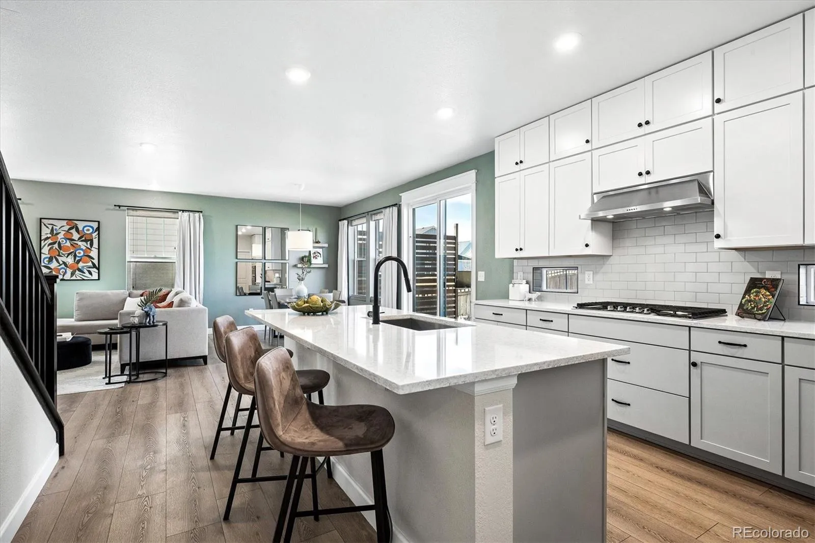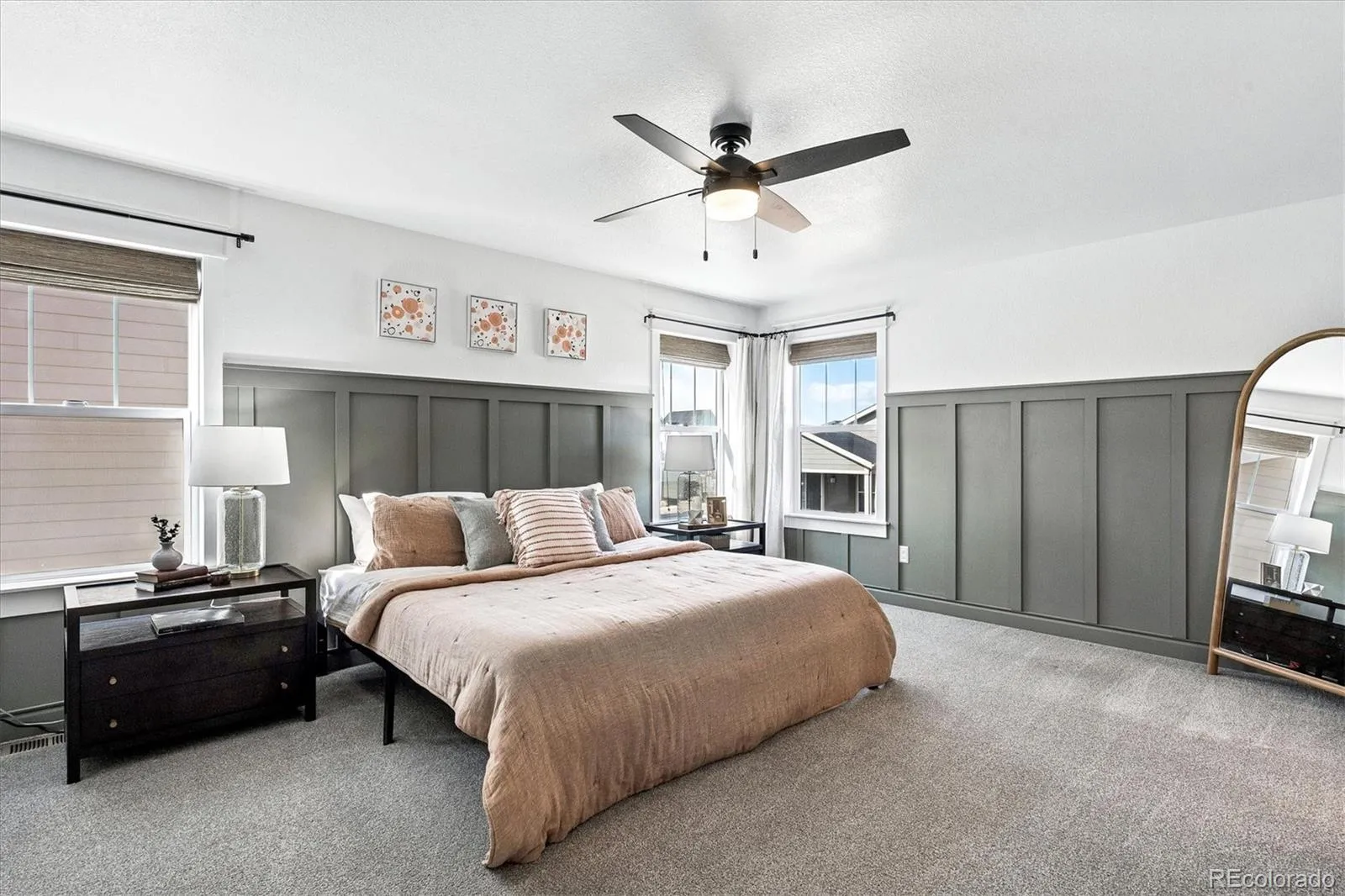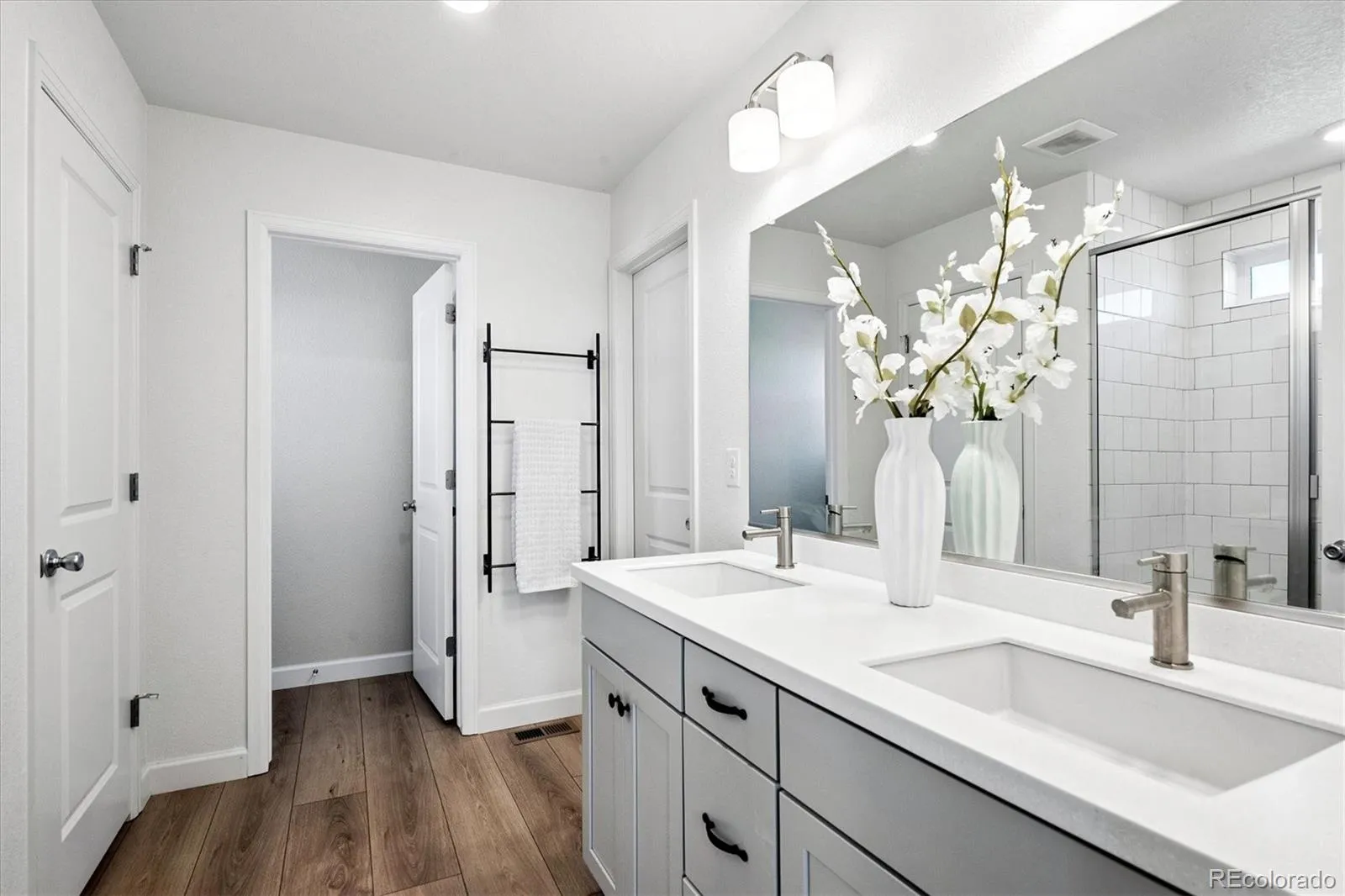 Welcome to this beautifully designed south-facing home in the vibrant Painted Prairie community, where modern style and thoughtful details come together splendidly. With 3 bedrooms, a spacious loft, & a private enclosed main-floor office, this home offers flexibility for the way you live, work, & gather. From the moment you step inside, the warmth of hardwood floors and the open, airy layout invite you in. The bright great room flows seamlessly into the kitchen, creating a natural gathering space filled with light & connection, perfect for quiet mornings, lively dinners, or entertaining. The custom kitchen serves as the heart of the home, featuring quartz countertops, a chic tile backsplash, extended cabinetry, & a generous walk-in pantry designed for both beauty and function. Upstairs, the loft offers a additional living space ideal for relaxing, working, or play, complete with custom cabinetry for added storage & a gorgeous wood detailed wall. Down the hall you’ll find two sunny secondary bedrooms, a full bath, and the convenient 2nd floor laundry room that adds ease to daily routines. The primary suite is a true retreat, highlighted by custom woodwork paneling, a spa-inspired bathroom, and a beautifully finished custom closet designed to simplify & elevate. The full unfinished basement with 9-foot ceilings presents endless possibilities. Outdoor living is just as inviting, with full professional landscaping, raised garden beds w/irrigation system, stamped concrete patio & wraparound walkway, pergola, sun shade, TV & outdoor kitchen complete with smoker and grill, ideal for enjoying Colorado evenings and gathering under the open sky. A new roof installed in 2024 and owned solar panels (to be paid off with an acceptable offer) provide both peace of mind and long-term efficiency. Addt’l features include fiber internet wiring, scuff-defense paint, custom window coverings throughout, ceiling fans in all bedrooms, keyless entry, added garage storage & bike hangars.