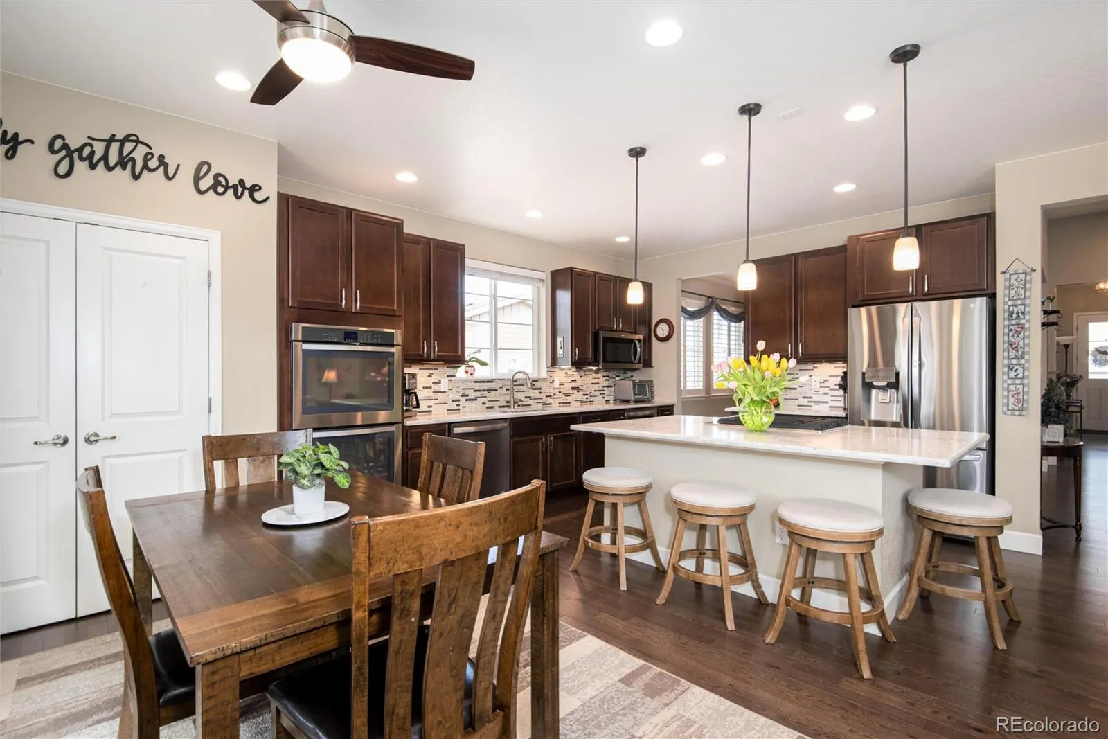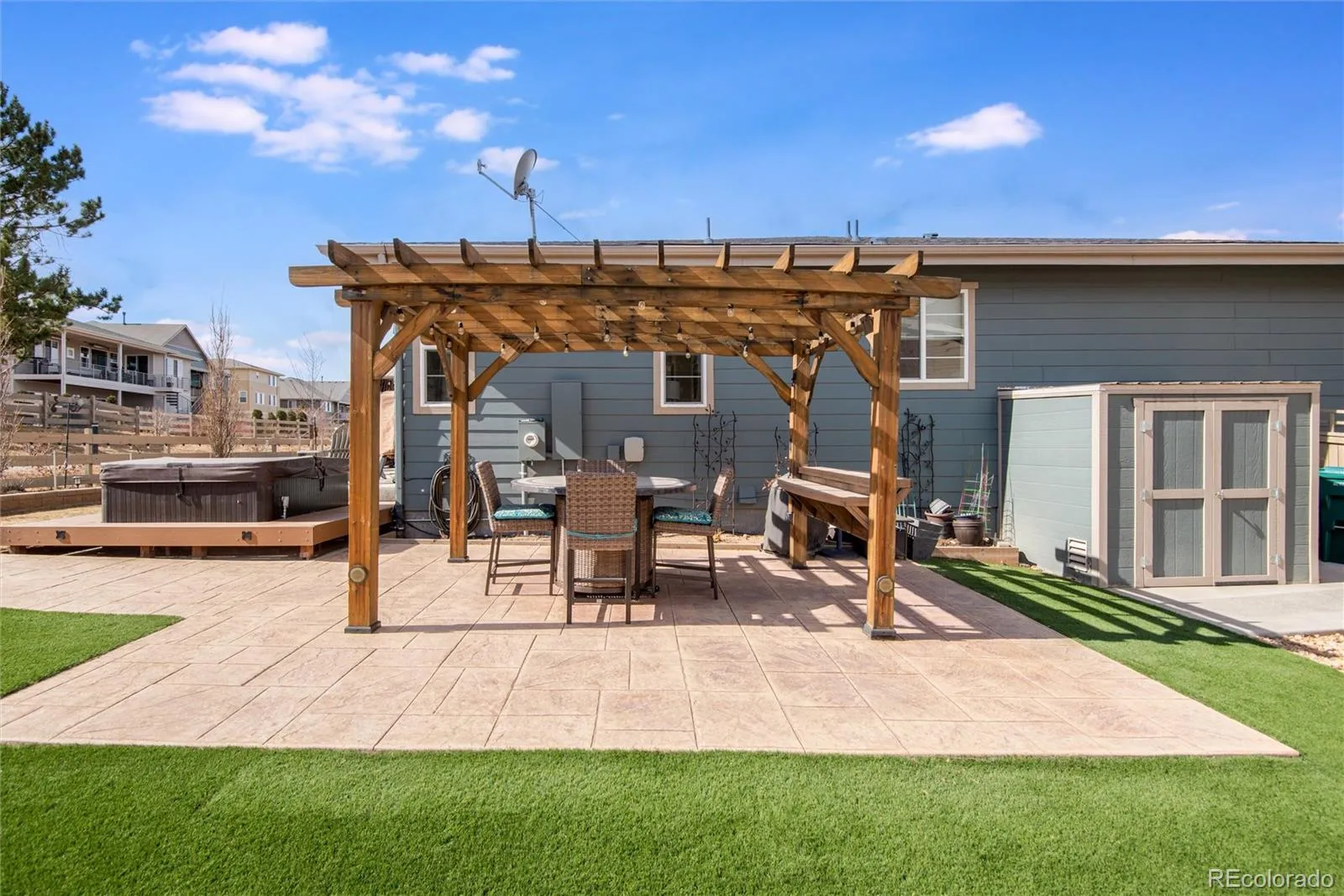 This stunning open-floor-plan ranch offers effortless main-level living with a spacious primary suite and en-suite bath, home office, laundry room, and bedrooms 2 and 3 all on the main floor. Enjoy custom window treatments on the main floor. The kitchen is truly the heart of the home, featuring a large island, ample dining space, and seamless flow into the living room—perfect for everyday living and entertaining. Step out from the gorgeous kitchen to a backyard patio oasis designed for relaxation and gatherings, with two separate entertaining areas, each with its own pergola, plus a hot tub. The finished basement expands the living space with a 4th bedroom and ¾ en-suite bath, an impressive open entertainment area, a cozy sitting space with built-in wall fireplace, a craft room or home office, and a custom butcher-block bar complete with quartz counters, beautiful cabinetry, a built-in wine fridge, and ice maker. Abundant storage and closet space throughout add to the home’s functionality. The 3-car tandem garage includes a dedicated workshop area. Ideally located on a cul-de-sac in the Green Gables neighborhood, with convenient access to everything Lakewood has to offer.