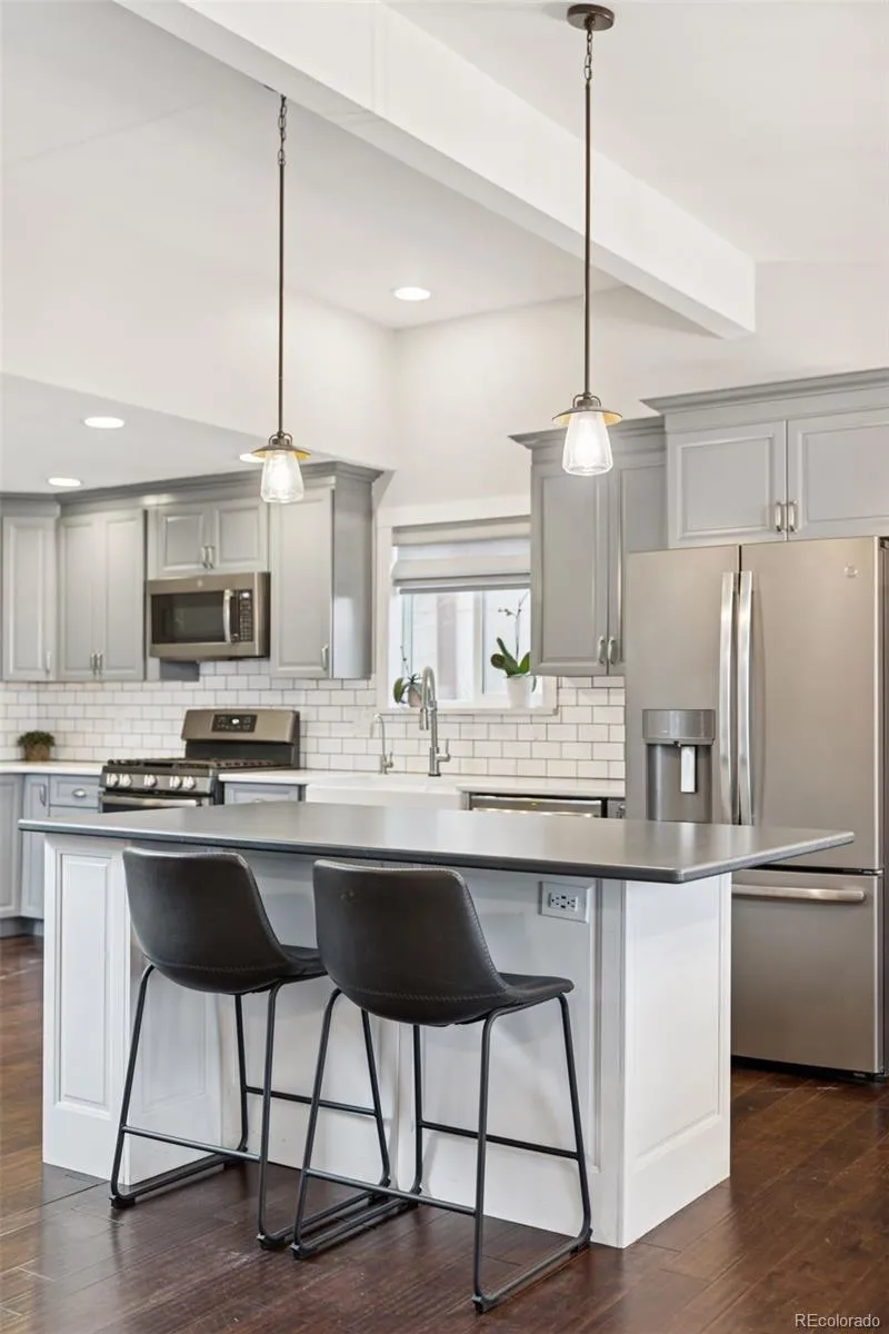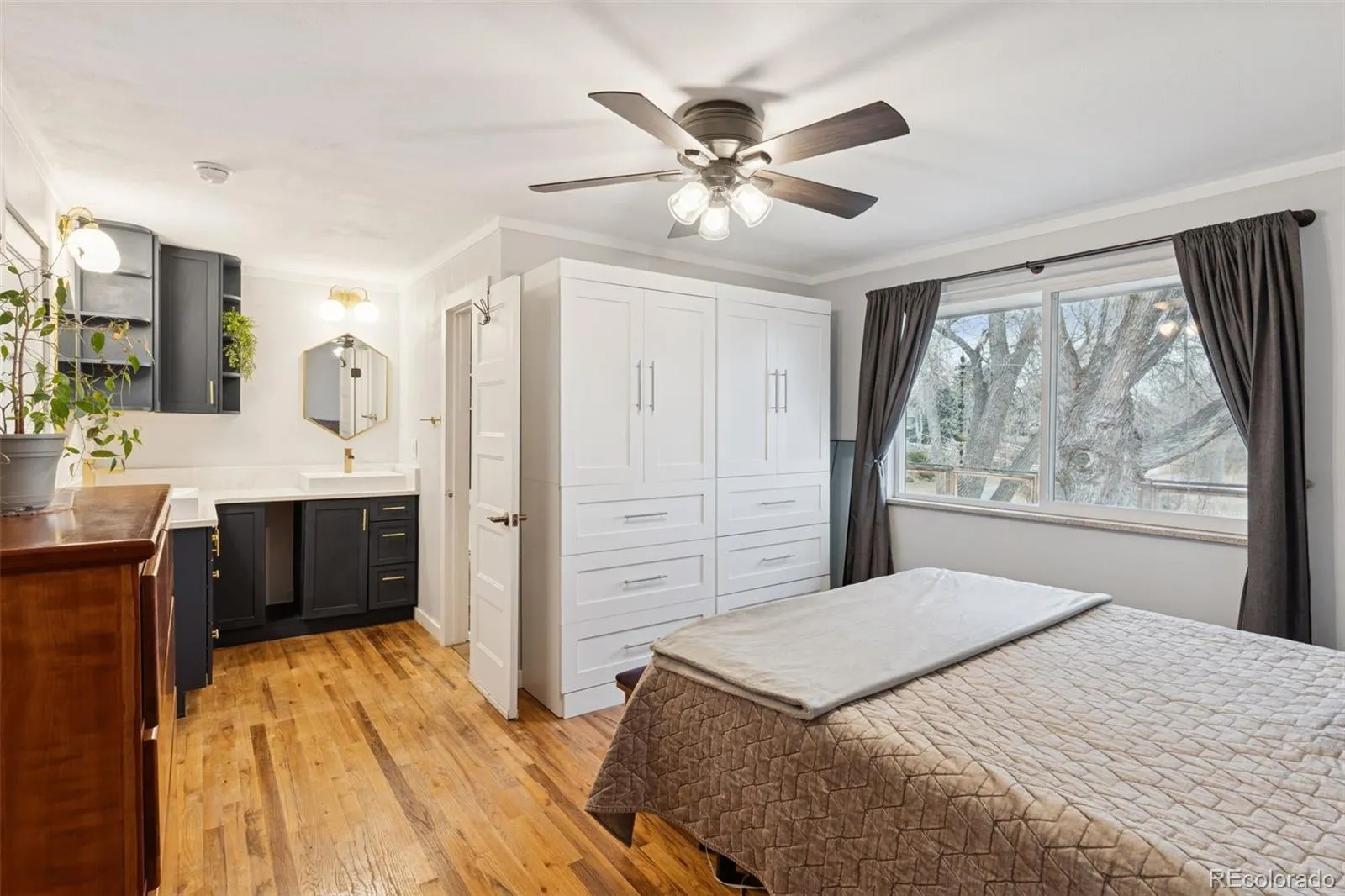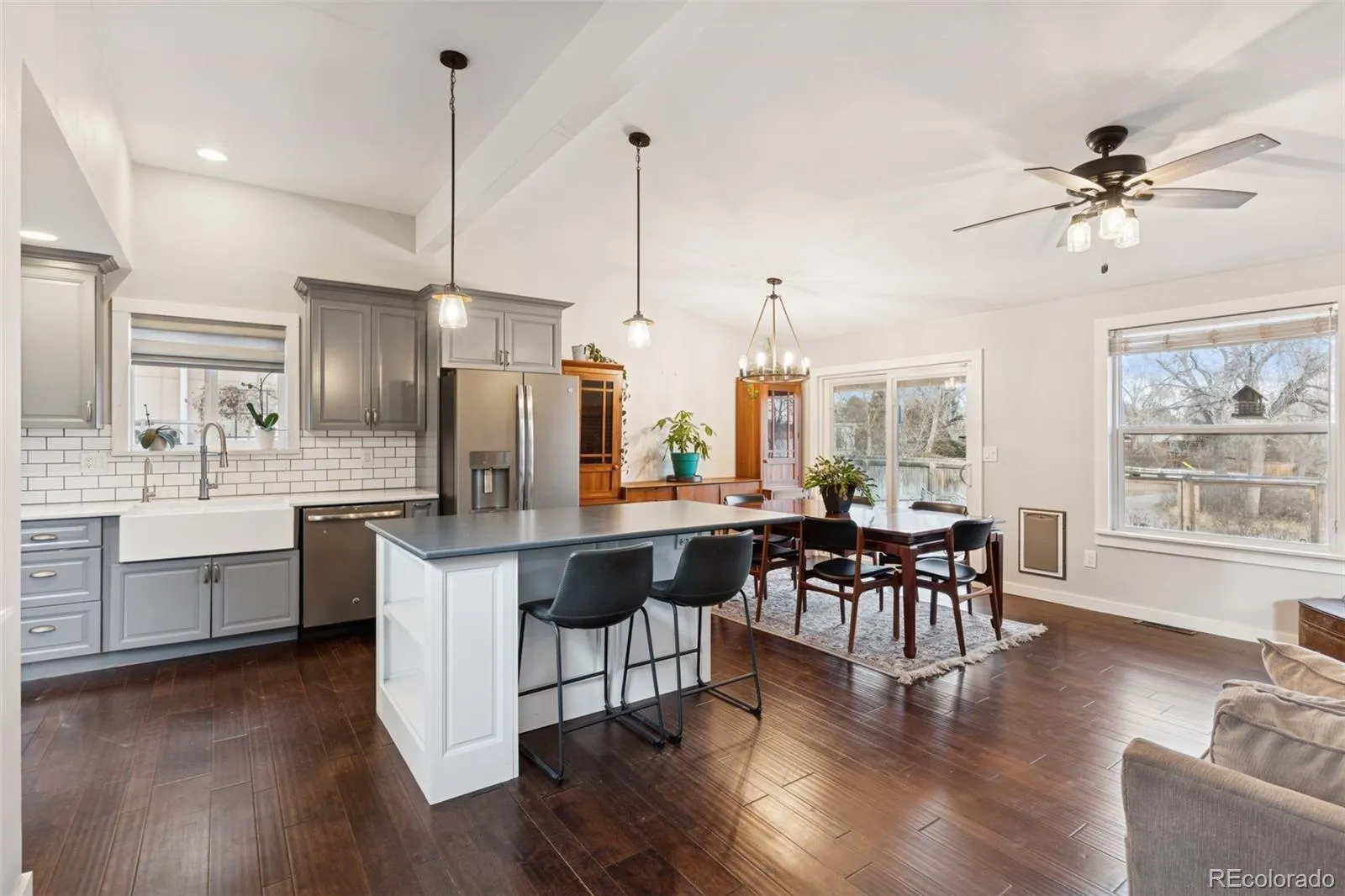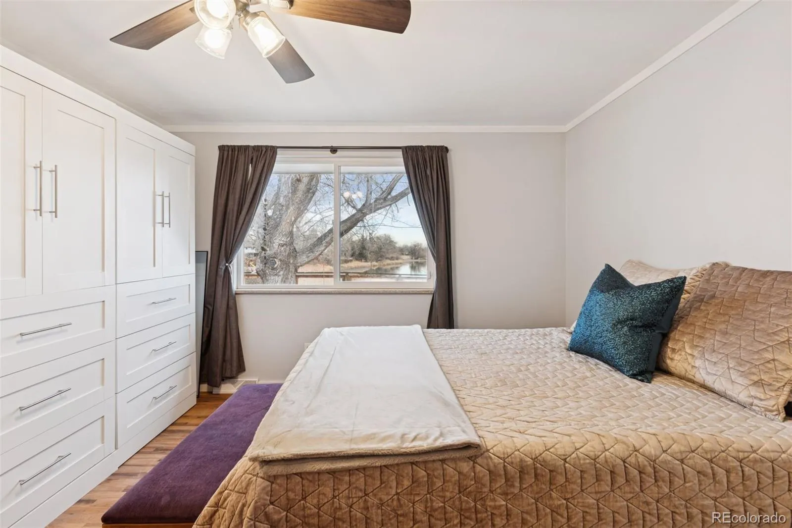 A rare opportunity to own true lakefront property, this exceptional Kendrick Lake residence offers direct access to the lake and one-mile path surrounding with sweeping water views. Enjoy fishing, walking, running, or biking year round directly out your back door. Inside, hardwood floors lead to a fully remodeled kitchen appointed with sueded quartz countertops, stainless steel appliances and custom, soft-close cabinetry, thoughtfully designed to maximize storage and functionality. Counter seating invites connection, while a cozy wood-burning fireplace anchors the living space. Wake up to unobstructed lake views from the primary suite which also features a beautifully renovated bathroom with a large, step-in Roman style double shower and dual vanities. The main level is complemented by two additional bedrooms both with oversized windows and updated full bathroom. The versatile basement includes another wood-burning fireplace, an egress window and private full bath, ideal as a guest suite, secondary primary bedroom or expansive recreation room. Outdoors, a fully fenced backyard with a custom see-through fence preserves uninterrupted lake views for truly spectacular sunsets, alongside a patio and sprinkler system. Homes in this prime waterfront position seldom become available, making this offering especially distinctive within the Denver metro area with no community HOA. Conveniently located within minutes of plentiful shopping and dining options at Belmar along with quick access to 6th Avenue for direct access to Denver within 15 minutes.