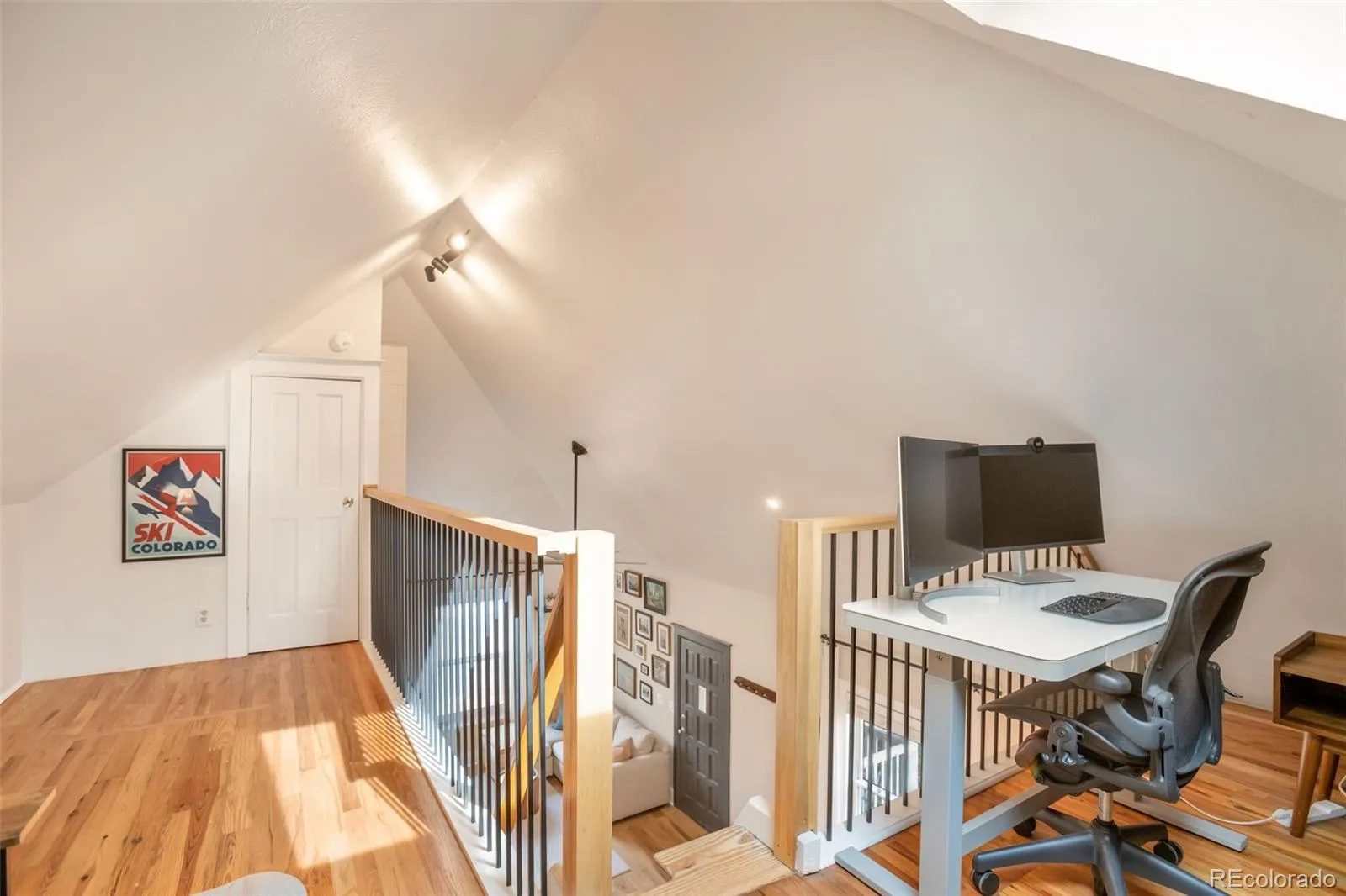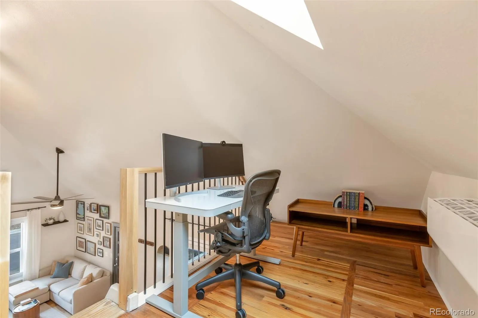 In the desirable Sunnyside neighborhood, this light-filled home features vaulted ceilings and a lush, private backyard. This two-bedroom layout includes a bonus loft—perfect for a home office and guest space—plus an oversized storage closet. Cozy up by the gas fireplace on chilly evenings.