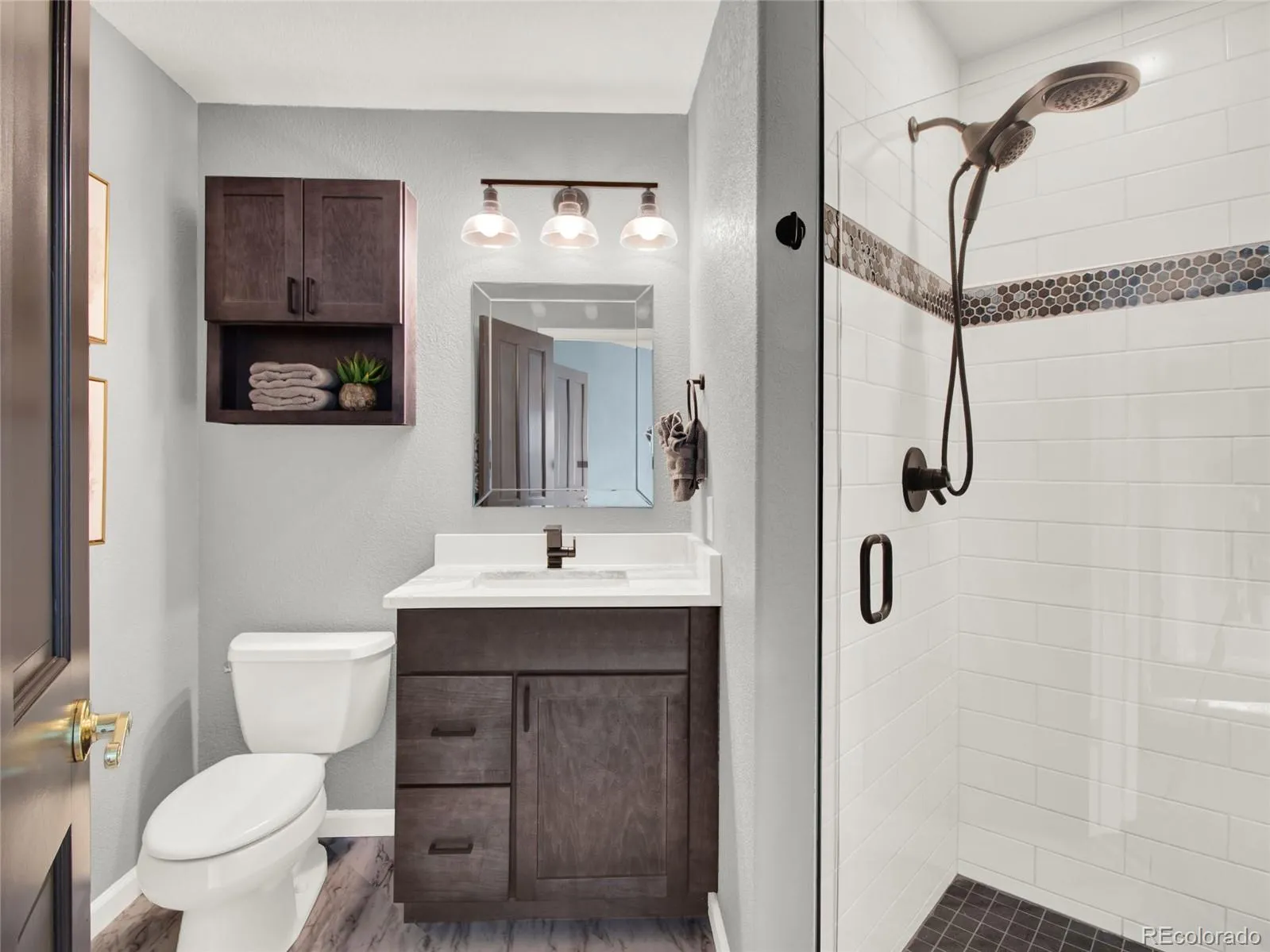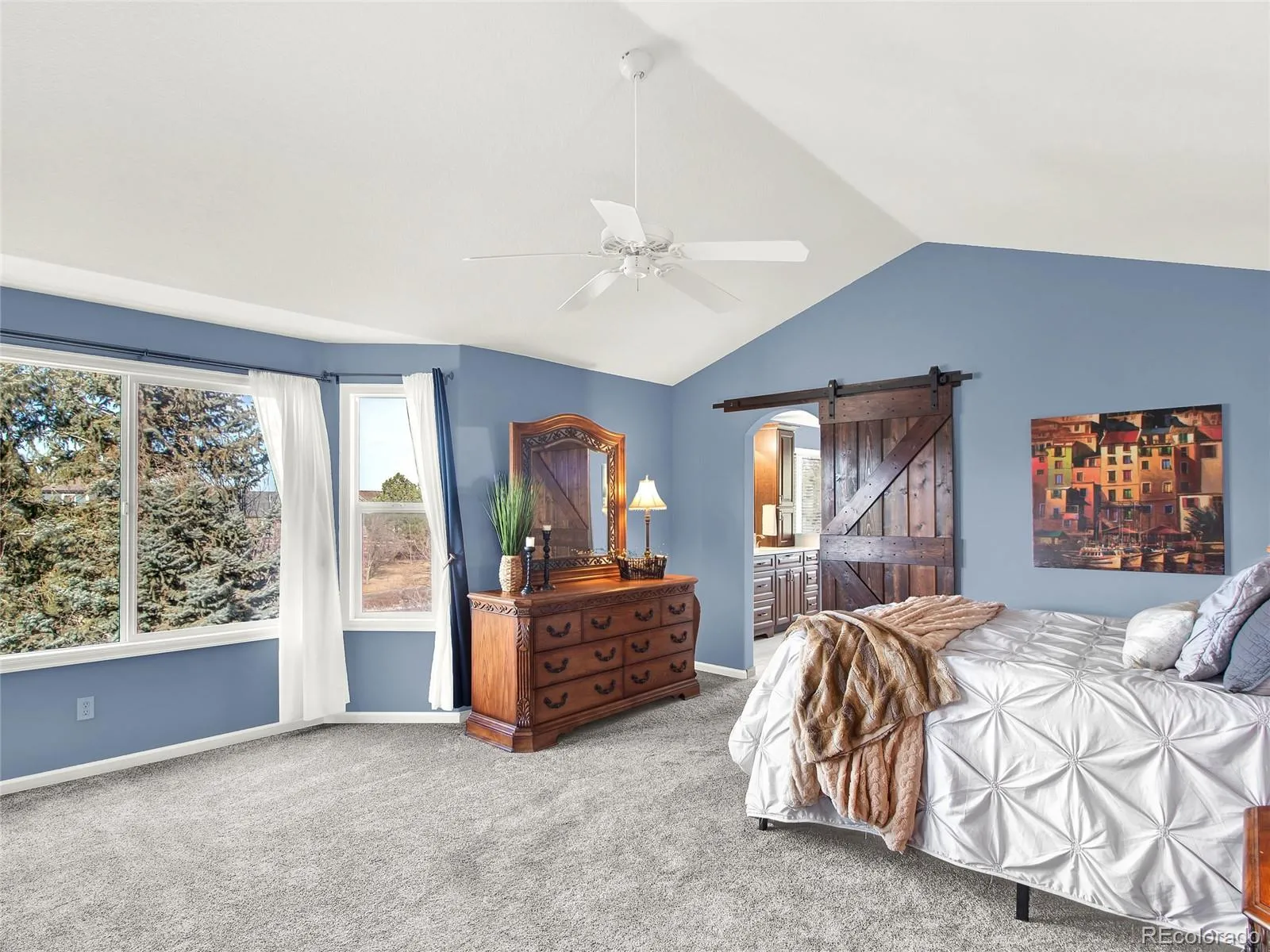 The voluminous main floor has a family room with 2-story windows that looks into the private backyard. The kitchen has an amazing amount of counter and cabinet space and a walk in pantry. From the kitchen walk out to the full length, Trex deck, and enjoy the sunset over Sleeping Indian. All three bedrooms upstairs have its own bathroom. The primary bedroom is an amazing retreat, again with fabulous views. A barn door gives privacy going into the updated bathroom that includes a large double vanity, heated floors, a soaker tub and separate double head shower. You’ll love the walk-in closet which was custom designed with a built in dresser and shoe racks. The laundry room is conveniently located upstairs. The basement includes two additional bedrooms and another full bathroom, along with a large rec room, a craft room (flex space), and extra storage. The furnace and A/C were replaced in the last 5 years, along with carpet upstairs and most of the main floor. The house includes a water softener. Every detail has been thought out for your comfort so you can move in and enjoy fantastic views, nearby golf at Westwoods, hiking, kayaking and fishing on Arvada Reservoir, shopping, dining, and nice strolls on the walking paths around the community and in the park.