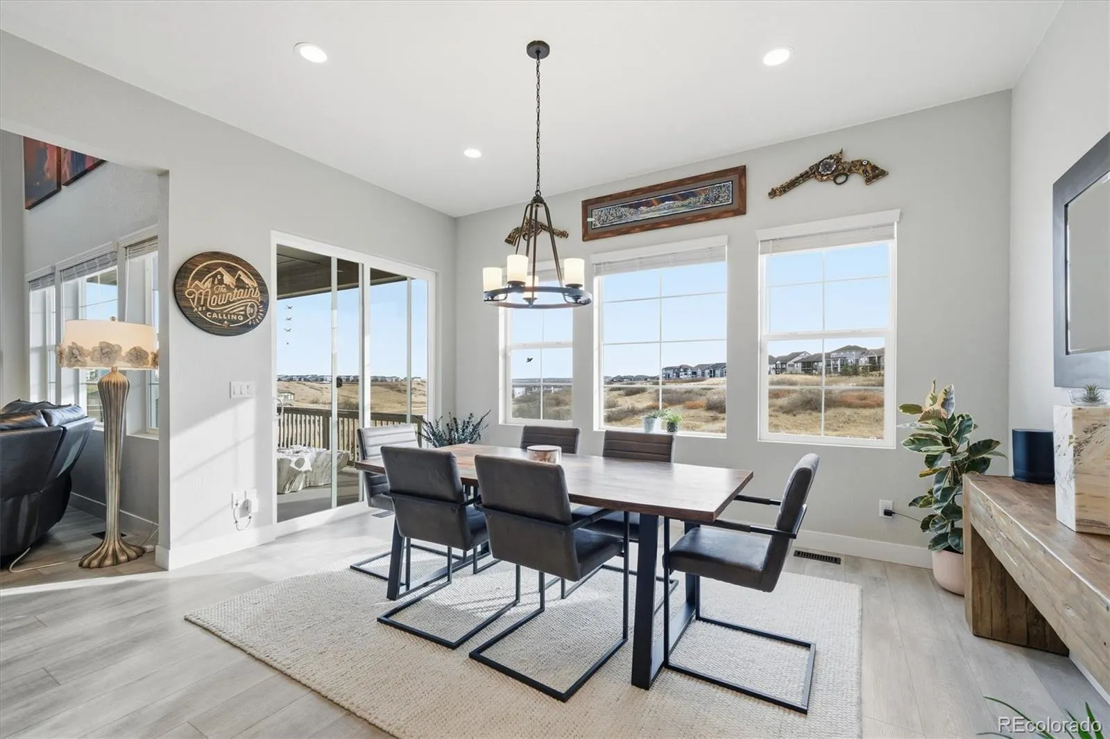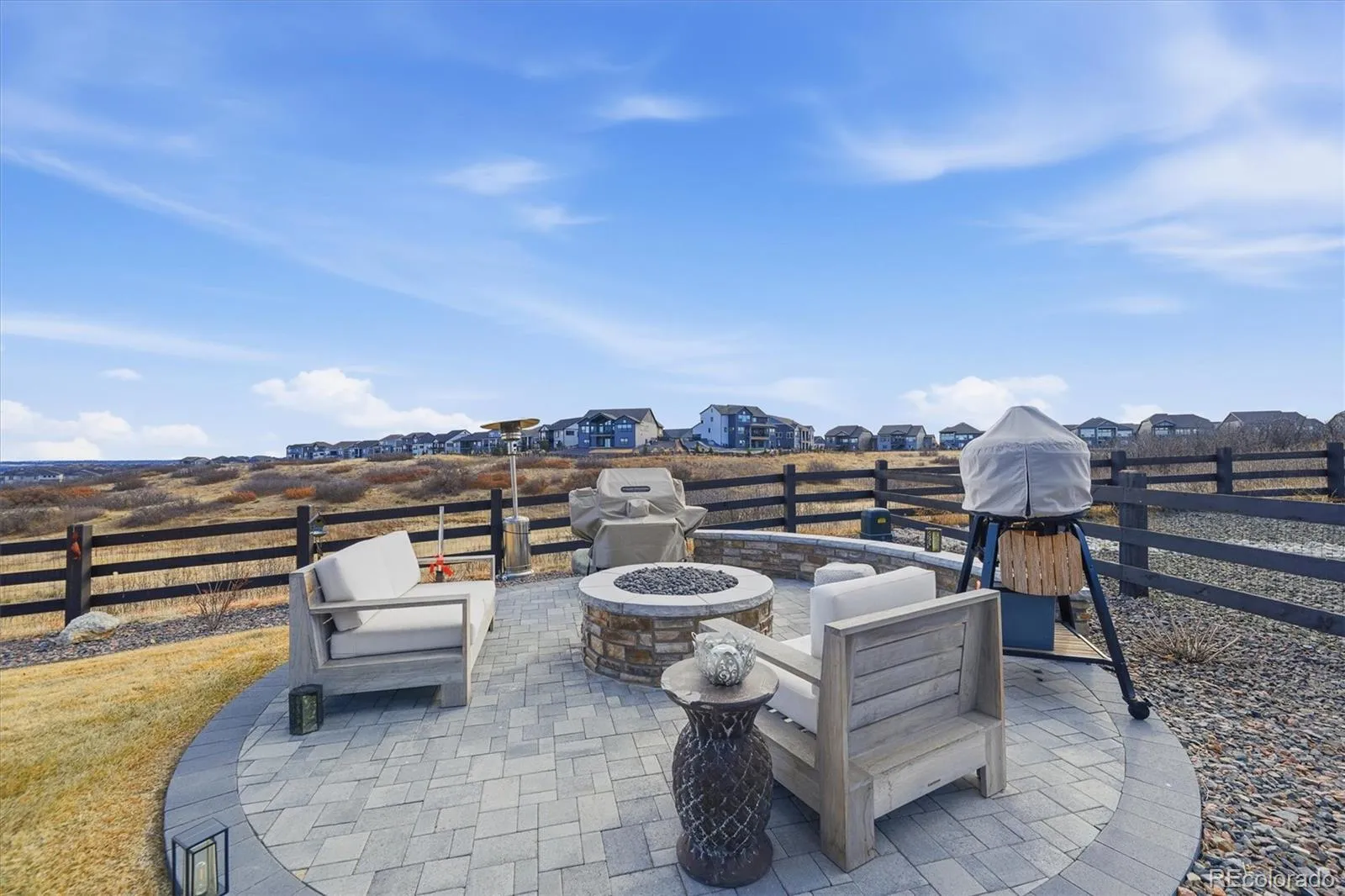 Step outside to your professionally landscaped backyard backing to breathtaking open space. Enjoy Colorado sunsets from the beautiful deck or gather around the built-in fire pit for cozy evenings year-round.