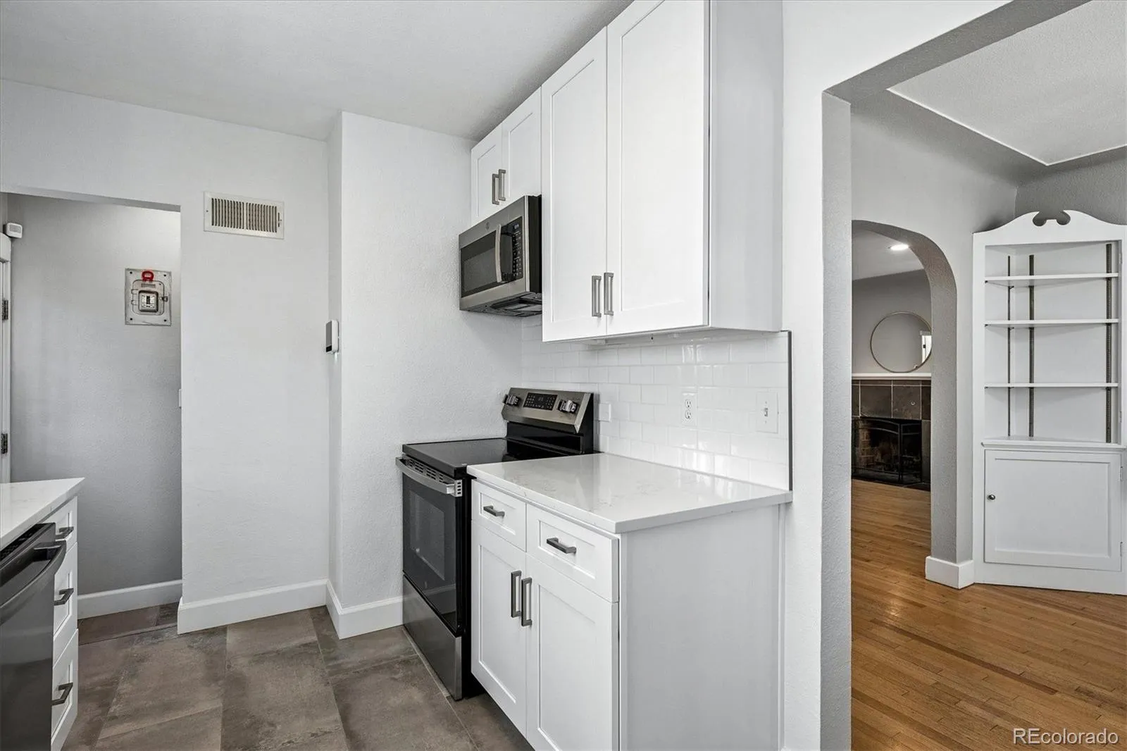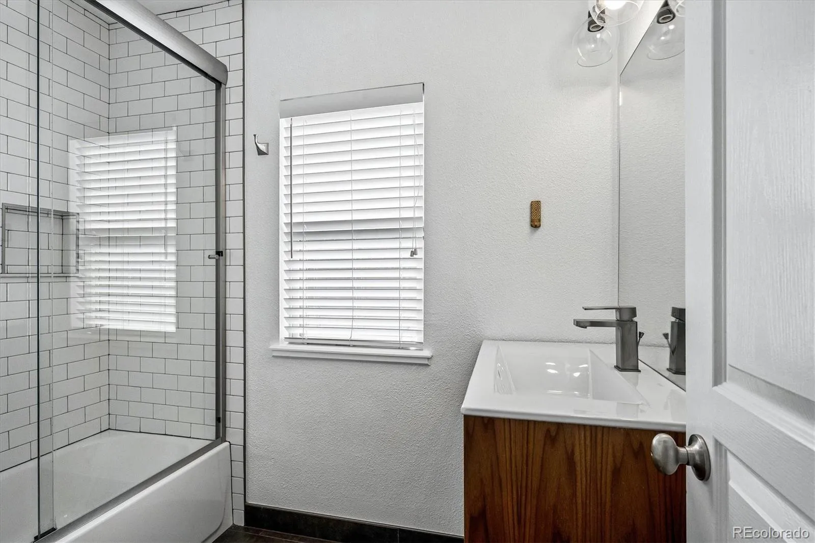 Completely remodeled well cared for ranch style home in Park Hill. Open floor plan, light and bright throughout. Enter up to the home through the brand new concrete front sidewalk and covered patio with new custom fortress railing and into a comfortable sized family room with new can lighting, beautiful fireplace with one of a kind brick surround and mantel. Private dining, breakfast nook area with bay window & custom built-ins. Brand new kitchen remodel including soft close 42 inch upper cabinets, custom pantry, slab quartz countertops, subway tiled back splash, new stainless steel appliances & modern tiled floor. Large secondary bedroom, updated full main bathroom, oversized primary bedroom complete the main level. All refinished hardwood floors on the main level and tile in bathroom/kitchen. Access the finished basment thru the main level or through a private outside side door. High ceilings throughout the entire basment. Newly remodeld 3/4 bathroom with custom tiled shower surround & pan. Euro-glass shower barn door. Large bedroom with eggress window. Huge great room that could easily be retrofittted to add an additional bedroom & still have a large great room area. Updated carpet in the basement. Laundry room includes washer, dryer, utility sink & ample built-in storage. All custom designer, lighting, plumbing & hardware fixtures througout. Includes electric car charger. Forced air with central A/C. Updated electrical & plumbing. oversized one car brick detached garage with a brand new front concrete driveway allowing for plenty of off street parking, plus alley access as well. Professionally landscaped with mature trees & plants, fully fenced in back yard. Storage Shed, Brand new interior/exterior paint. Close to everything including shops, restaurants, parks, schoools, golf courses, DIA, Downtown, Denver Zoo, City & Central Parks,, Museum of Nature & Science, Stapleton & Northfield Shopping Districts, major highyways and throughfares plus much more