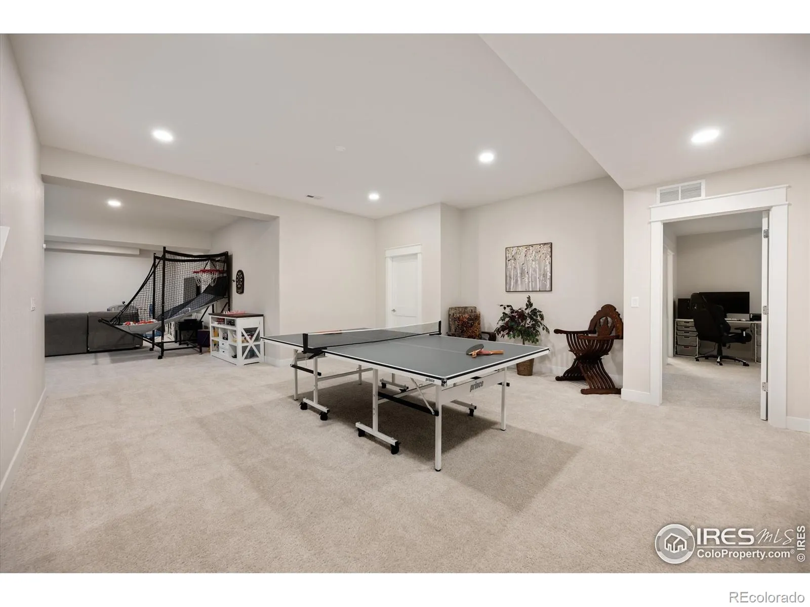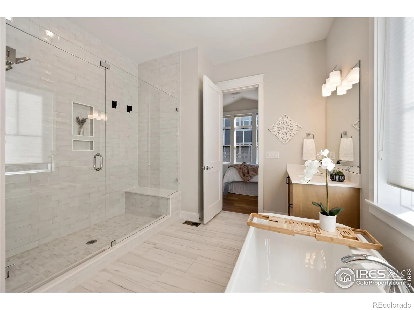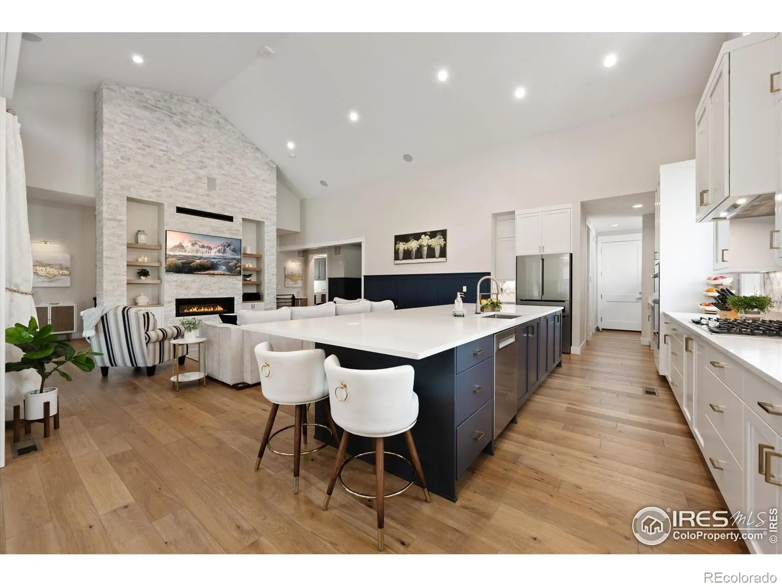 Ranch-style single-story home with finished basement in Westerly, a master-planned community in Erie, Colorado. This semi-custom floor plan was one of only four built. The home offers approximately 5,001 square feet of living space with an open-concept layout, cathedral ceilings, custom wainscoting, and a stone fireplace in the great room. The kitchen features extensive cabinetry, high-end appliances, and a large center island ideal for entertaining and everyday living. Sliding doors lead to a covered outdoor living area and low-maintenance backyard for easy indoor-outdoor use. The main-level primary suite includes vaulted ceilings and a spacious bath. A main-floor office or study provides flexible work-from-home or hobby space. The finished basement includes a large family room, guest suite, additional bedroom, full bathroom, and generous storage. Westerly is known for trails, open space, mountain views, and neighborhood amenities including a pool, spa, fitness center, pickleball courts, dog park, and gathering areas. A future village center with shops and dining is planned within the community. Additional features include owned solar panels, Tesla EV charger with dual battery backup, whole-home water purification system, high-efficiency furnace and central air conditioning, and a three-car tandem garage. Located near parks, trails, and commuter routes with convenient access to Boulder, Denver, and surrounding Front Range areas.