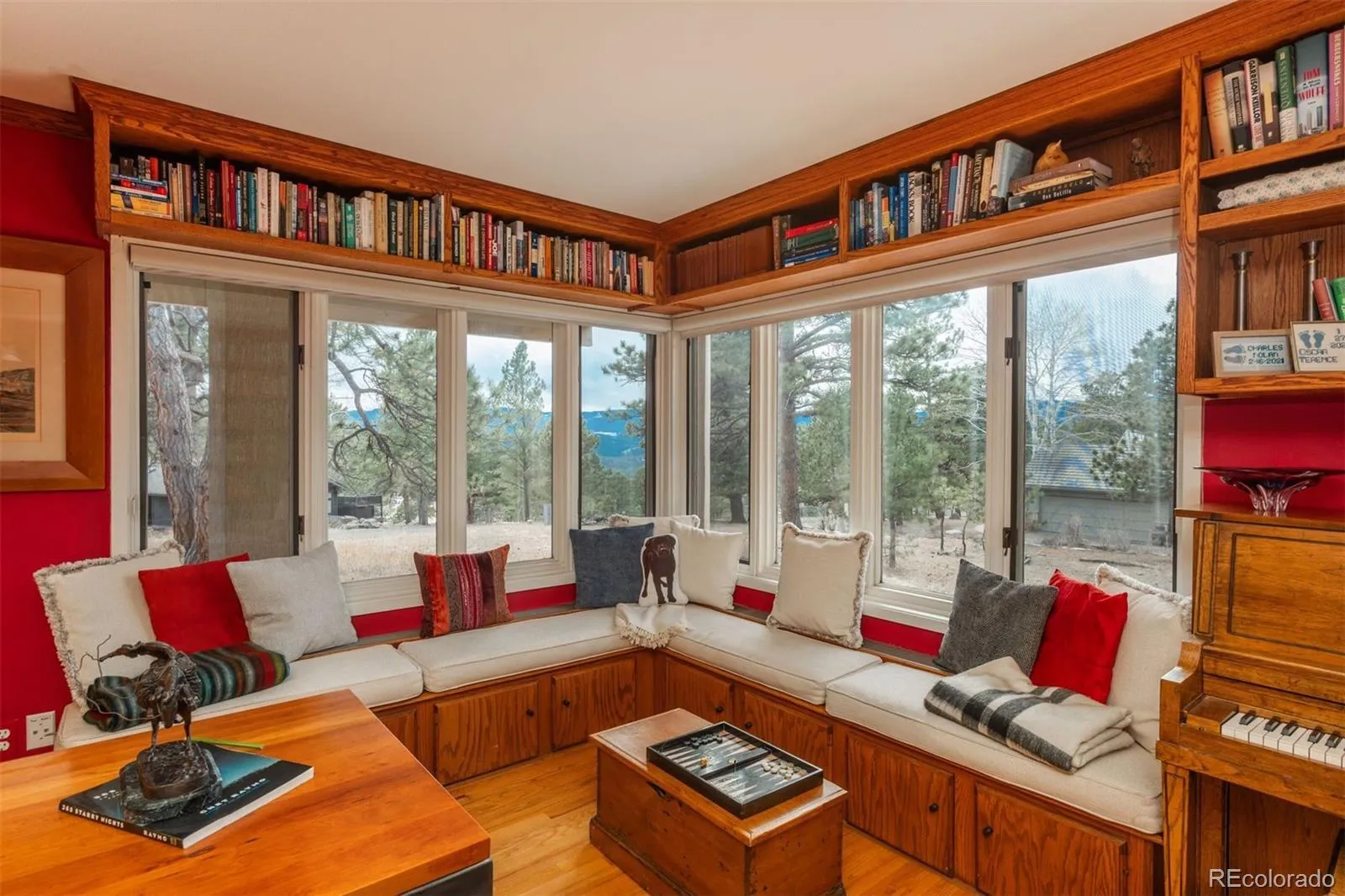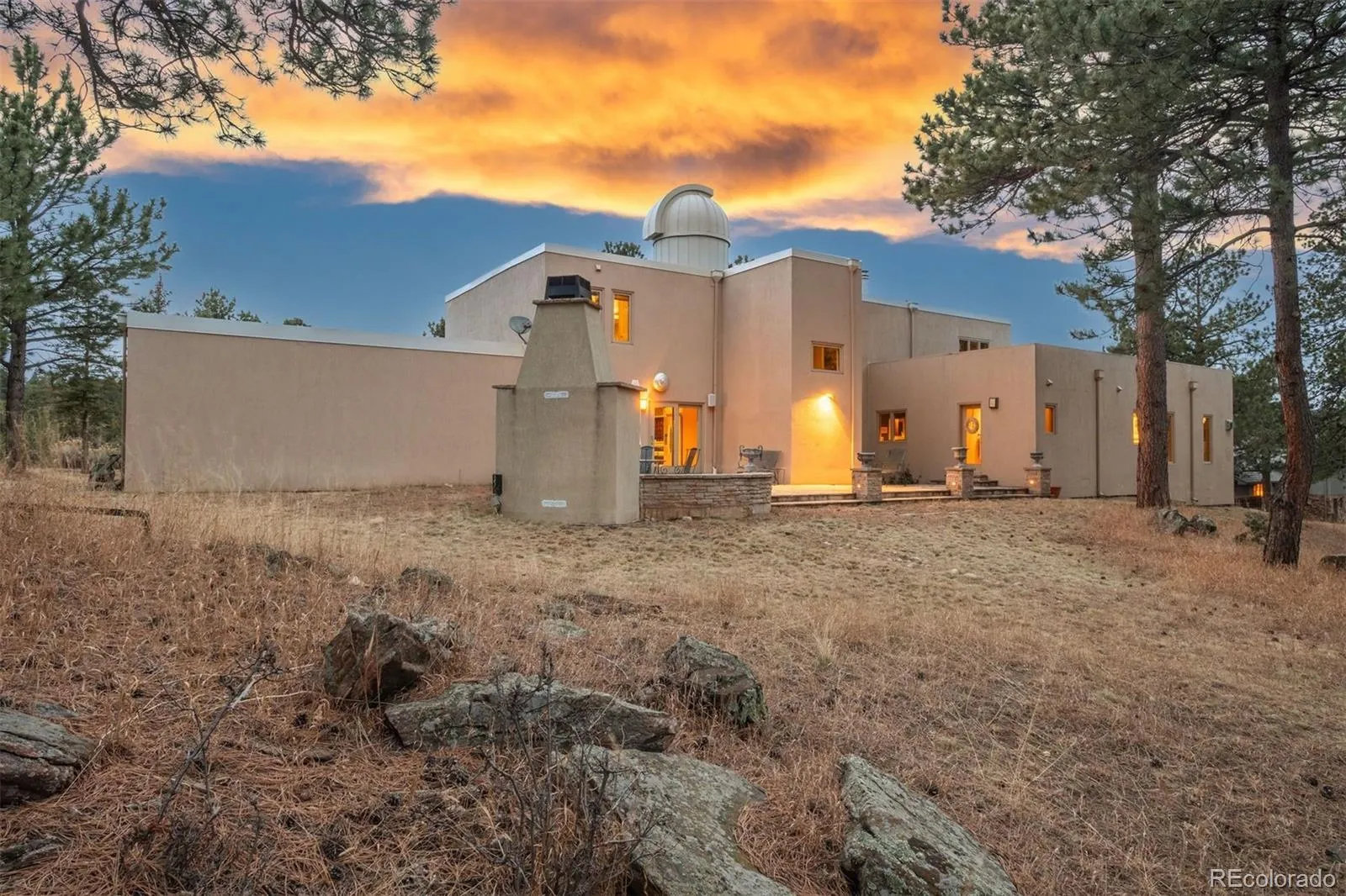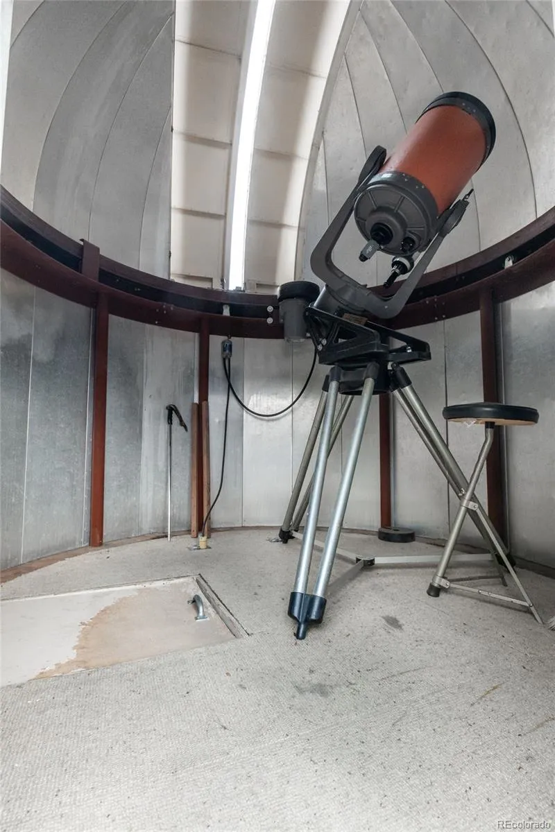 The Observatory House is a true Genesee landmark, offered for the first time in 33 years. Lovingly maintained and extensively remodeled, the home includes a thoughtfully designed 800 sf main-level primary suite addition. Dramatic 2-story great room sets the tone upon entry with gas fireplace flanked by custom ironwork panels. Above, a handcrafted iron balcony serves as both architectural feature and functional art. Expansive walls of glass flood the home with natural light and open to flagstone patios nestled among peaceful woods and acres of open space. Chef’s kitchen is beautifully appointed with double convection ovens, induction cooktop, solid red birch cabinetry and generous pantry. Enjoy casual dining just off the kitchen or entertain under the stars on the grand flagstone patio with glass-front gas fireplace and Viking range — both plumbed with natural gas. Main-level den/library offers built-in bookshelves, a 2-sided window seat and charming black metal surround gas fireplace. Office niche with built-in desk adds convenience. Primary suite is a retreat of its own complete with Kiva gas fireplace, private patio, travertine marble floor with radiant heat and dual walk-in closets. Spa-inspired 5-piece bath includes slab marble countertops, a frameless shower and jetted soak tub. Creative concrete stairs lead to a 2nd primary suite with hardwood floors, walk-in closet & a luxurious ensuite bath with oversized jetted tub, dry sauna and double vanity. Two additional upper bedrooms share a full bath. Extraordinary Observatory awaits to provide hours of dark sky entertainment. Flexible lower level offers a spacious room ideal for a home theater, gym or playroom. An adjoining kitchenette, large bedroom and full bath create perfect accommodations for a live-in parent or au pair. Located a short walk to the Vista clubhouse with 2 pools, tennis courts and tot lot this home enjoys easy access to 12+ miles of scenic trails. Underground power lines are throughout Genesee.