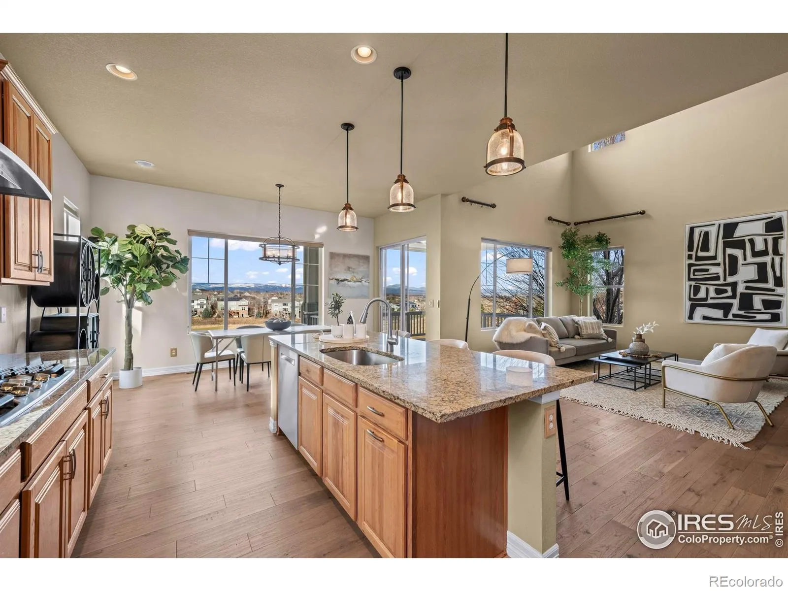 BREATHTAKING home with STUNNING golf course/mountain VIEWS! This LOW MAINTENANCE gem boasts views of the MOUNTAIN RANGE plus holes 1 and 18 of the award winning Colorado National golf course. This LOCK AND LEAVE home features a MAIN LEVEL PRIMARY SUITE with retreat area, and luxury 5 piece bath with custom organization walk in closet. Sit back and enjoy a glass of wine while sitting on your spacious covered deck as the sun sets over the golf course and mountain range. HOA covers lawn maintenance and snow removal so you can enjoy your summers. ENTERTAINERS DREAM with the two story great room and golf course views from every single window. GOURMET kitchen featuring granite, gas cooktop, double ovens, vented hood, walk in pantry and large center island flows nicely to the semi formal dining space. Desirable and FUNCTIONAL DESIGN meet an open concept floorplan flooded with natural light and HIGH CEILINGS and open railing. Upper level features 2 bedrooms, full bath and airy oversized loft. Bonus living area in the walk-out FINISHED BASEMENT adds plenty of space for all your needs with a full kitchenette, rec area, bedroom and 3/4 bath plus tons of storage and work shop. Walk right out of the basement to a second outdoor covered space where you can watch golfers tee off on the 18th hole from your fully landscaped area all maintained by the HOA including snow removal! This lock and leave home features a 3 car garage plus with the unparalleled location this one of a kind GEM is better than a hole in one!
