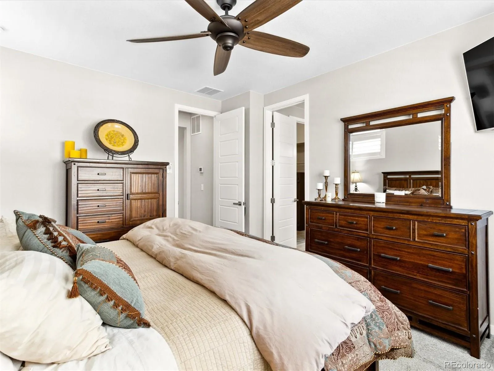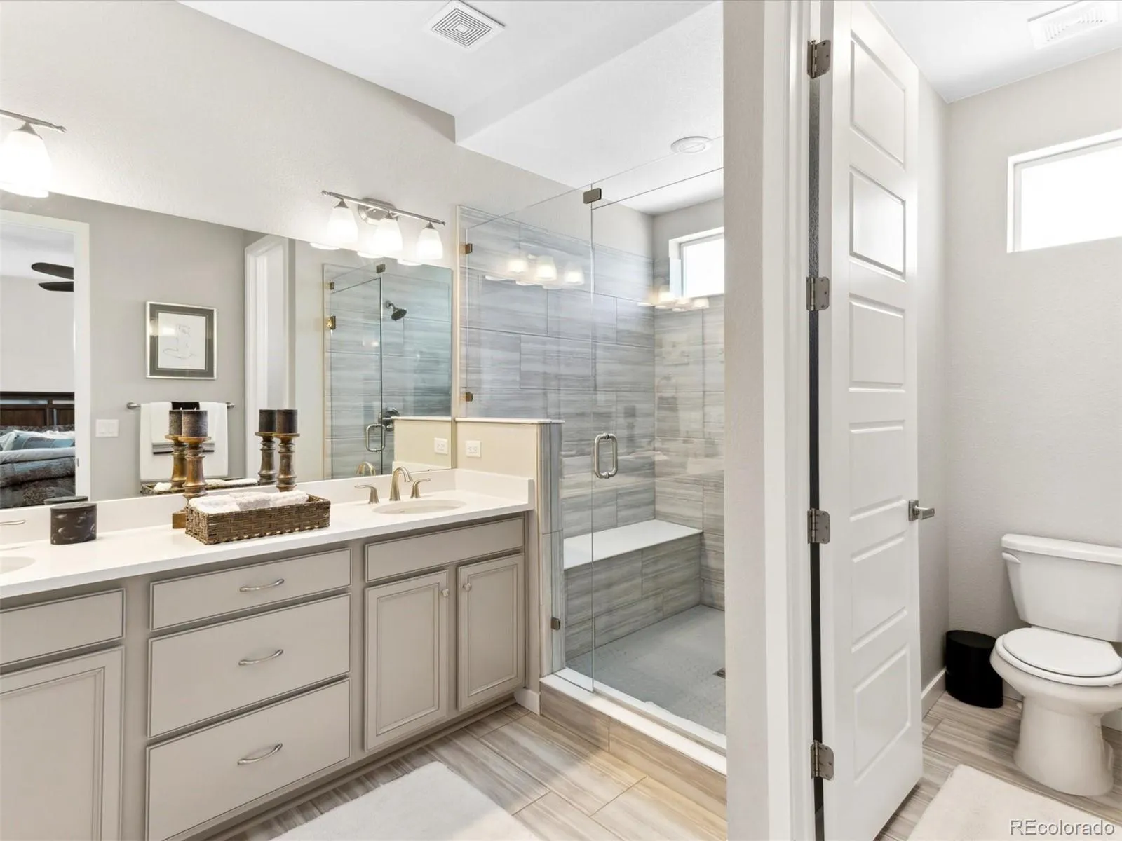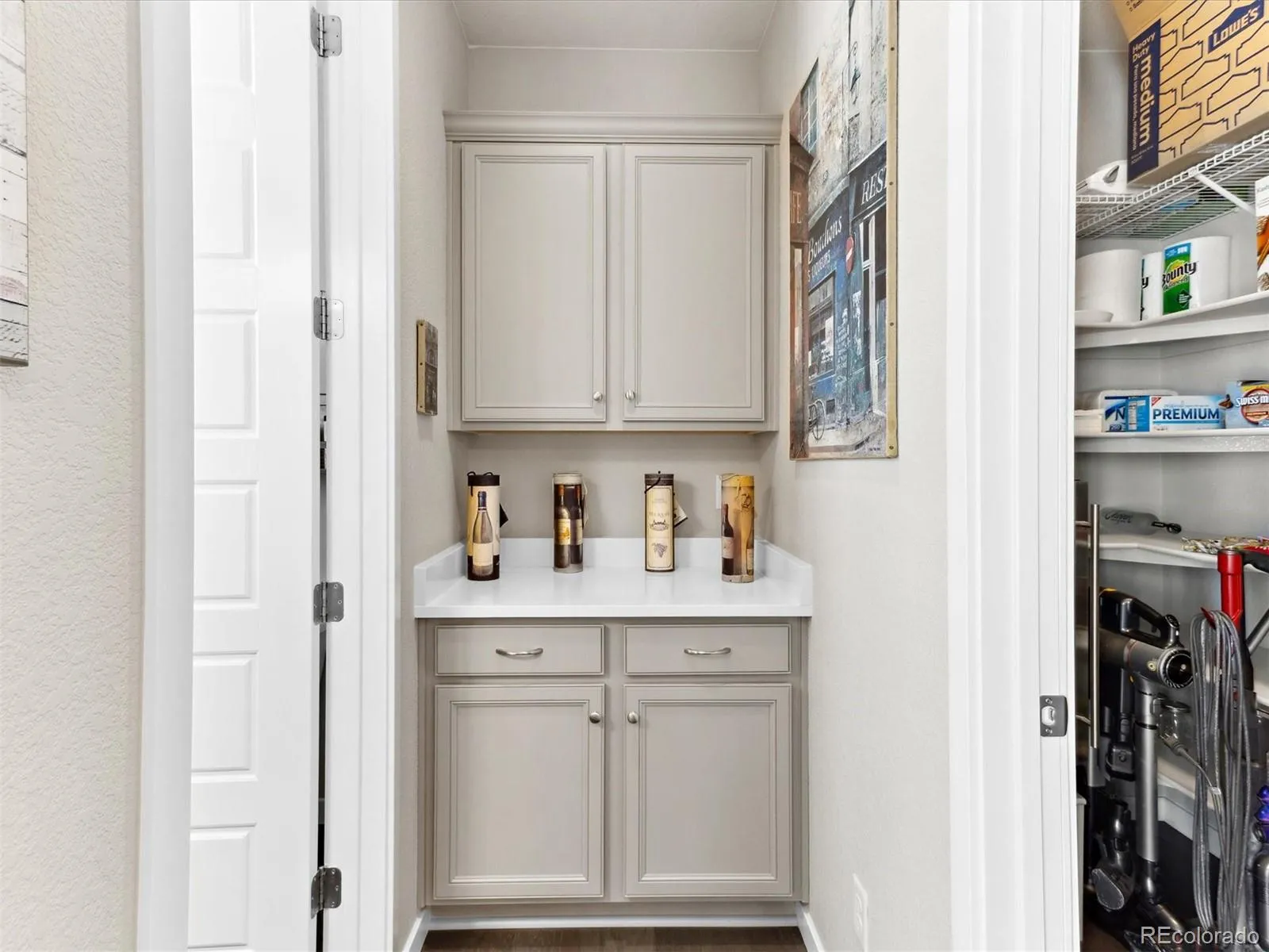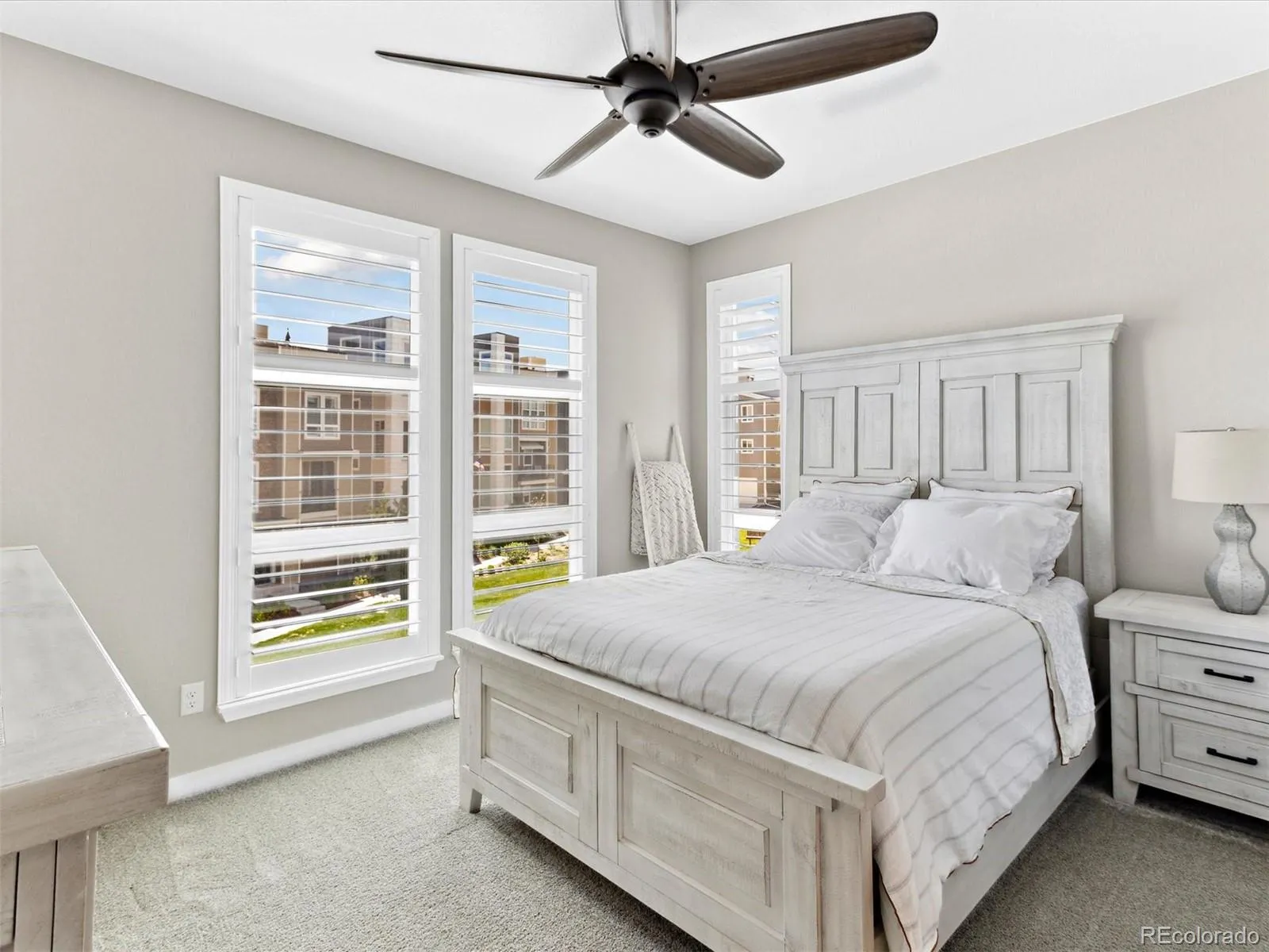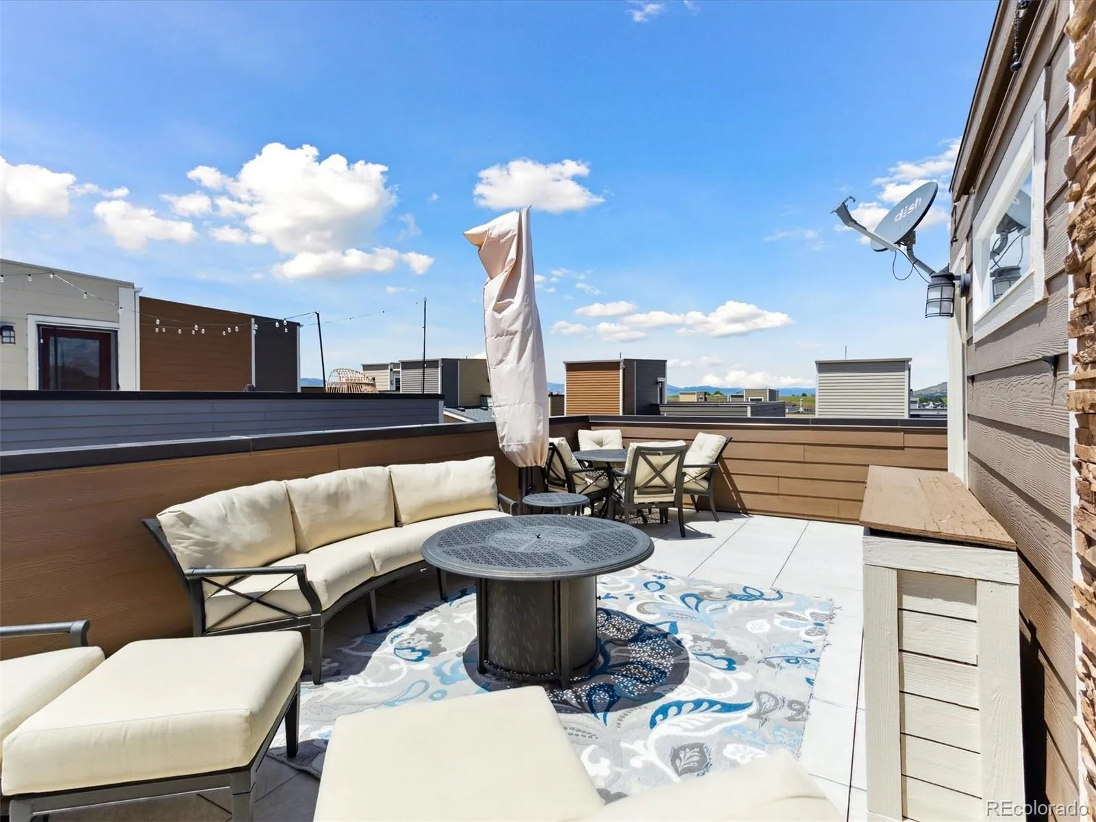 Enjoy low-maintenance living in this contemporary, well maintained home in The Meadows community in Castle Rock. Ideally located on a wide greenbelt ($25K builder upgrade), this SoHo plan offers exquisite finishes. Garage or front door entry on the ground floor with bonus room for a small office or extra storage. The 2nd floor features an open floor plan with a large gourmet kitchen with white quartz countertops, a massive entertaining island, custom cabinets, stainless steel appliances, dry bar and a large walk-in pantry. There are hickory hardwood floors throughout the main level with floor-to-ceiling windows and a covered balcony off the living room overlooking the landscaped greenbelt. Upstairs, the spacious primary suite features a deluxe master bath with double depth shower, double vanity and a large walk-in closet. The secondary bedroom boasts tons of natural light and its own en-suite full bathroom. The laundry closet is conveniently located near the bedrooms on the 3rd floor. This home features a two car garage with 9′ ceilings and 8′ doors and plentiful storage. Enjoy beautiful mountain and city views from the 400 square foot paver-topped terrace perfect for entertaining. The Meadows is centrally located, providing easy access to shopping, dining, and entertainment. Positioned between Denver and Colorado Springs, the community offers a prime location for commuters. The nearby I-25 highway connects you to both cities within 30-45 minutes, allowing you to enjoy urban amenities while living in a peaceful suburban setting.