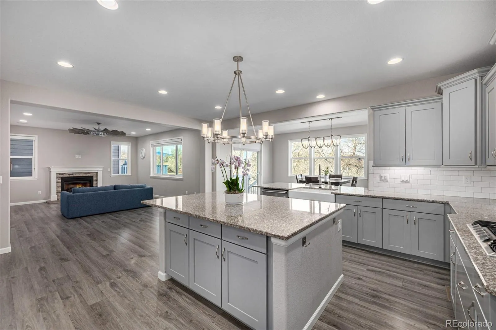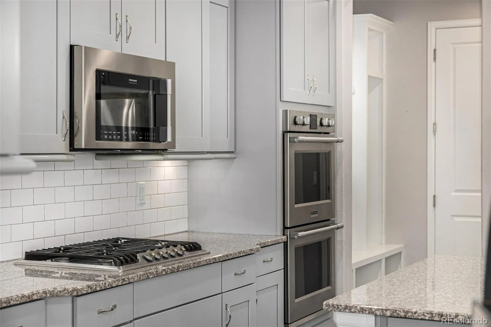 At the heart of the home, the chef-inspired kitchen blends style and function with granite countertops, stainless steel appliances, double ovens, gas cooktop, farmhouse sink, and generous prep space — perfect for intimate dinners or larger gatherings.