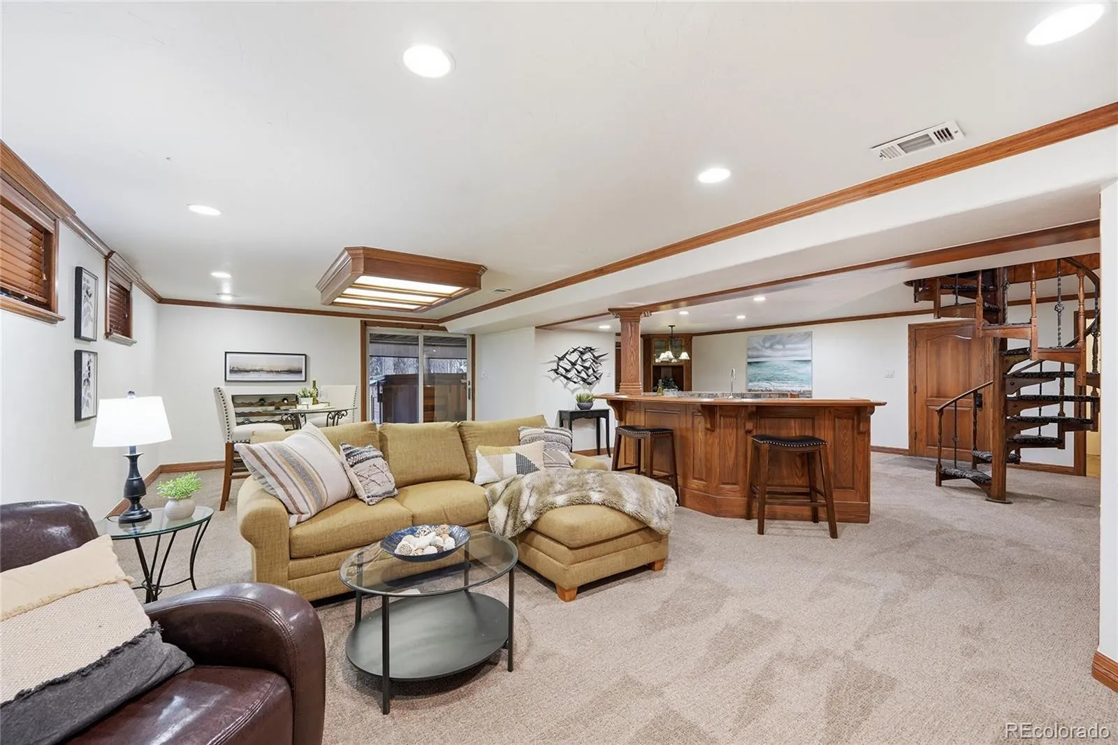 Set on a .77-acre lot nestled in mature greenery with a seasonal creek, this custom 4-bed, 4-bath dream home with garage space for 4 cars offers peaceful privacy steps from Lakewood Country Club. A circular drive and stacked-stone exterior crowned with a Mansard roof create a striking arrival. Inside, a grand foyer with soaring ceilings, a dramatic chandelier, rich wood accents, and a whimsical spiral staircase set the tone for the home’s joyful yet refined character. The formal dining room with statement lighting sits just steps from the kitchen for seamless service. The chef’s kitchen features natural stone counters, stainless steel appliances, double ovens, a spacious pantry, abundant storage, and peninsula seating. Glass doors open to a covered 800 sq ft patio with an outdoor kitchen for effortless indoor–outdoor flow. The generous breakfast nook leads to the family room, where a bay window frames picturesque views of mature trees in the front yard. In the living room, a striking fireplace anchors the space, while French doors open to a private office with custom cabinetry and backyard views. Upstairs, the primary suite features a stacked-stone fireplace, sunlit window nook, a five-piece bath with deep soaking tub, and a custom walk-in closet. Three additional bedrooms, a full bath, and a finished laundry room provide comfort without compromise on the upper level. A spiral staircase descends to the walk-out lower level, where you’ll find a sprawling rec room, custom-built-ins, stained-glass accents, a dining area, and impressive wet bar. Beyond the back deck, you’ll find a stamped-concrete patio, a manicured lawn, garden beds, a private gazebo, and an oversized detached two-car garage/workshop. Minutes from Belmar, Sloan’s Lake, Edgewater Public Market, and Tennyson Street, only 20 minutes from Downtown Denver or your next mountain escape.