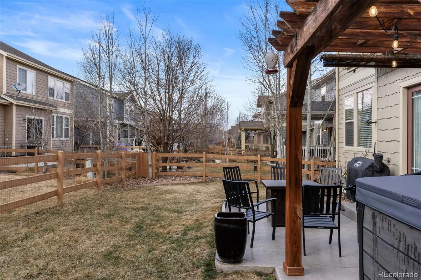 Welcome home to the Village at Five Parks! This quiet street is the perfect place to relax, entertain + enjoy everything you love about living in Colorado! Sit on your front porch and enjoy a cup of coffee, or head inside this beautifully updated two-story home and cozy up next to the fireplace. You and your guests can enjoy a formal dinner in the full dining room, or gather in your large, gourmet kitchen around the island for happy hour while you whip up appetizers in your double ovens. There’s plenty of space in this 4 bedroom home to even set up your perfect WFH office, and on those sunny Colorado days head outside with your laptop to the outdoor patio. After throwing in a load of laundry in your included washer and dryer, finish off the day with a nice soak in the hot tub, a true retreat! Or find yourself in the primary bedroom with the dreamiest en suite bathroom and closet combo that will let you rest easy every night. This finished basement is the one you’ve been waiting for, with a bar and flex space ready for winding down in the comfort of your home! With multiple parks, a depot of shops, a community pool, fitness center + clubhouse this neighborhood has it all! This is Five Parks…and you’re going to LOVE living here!